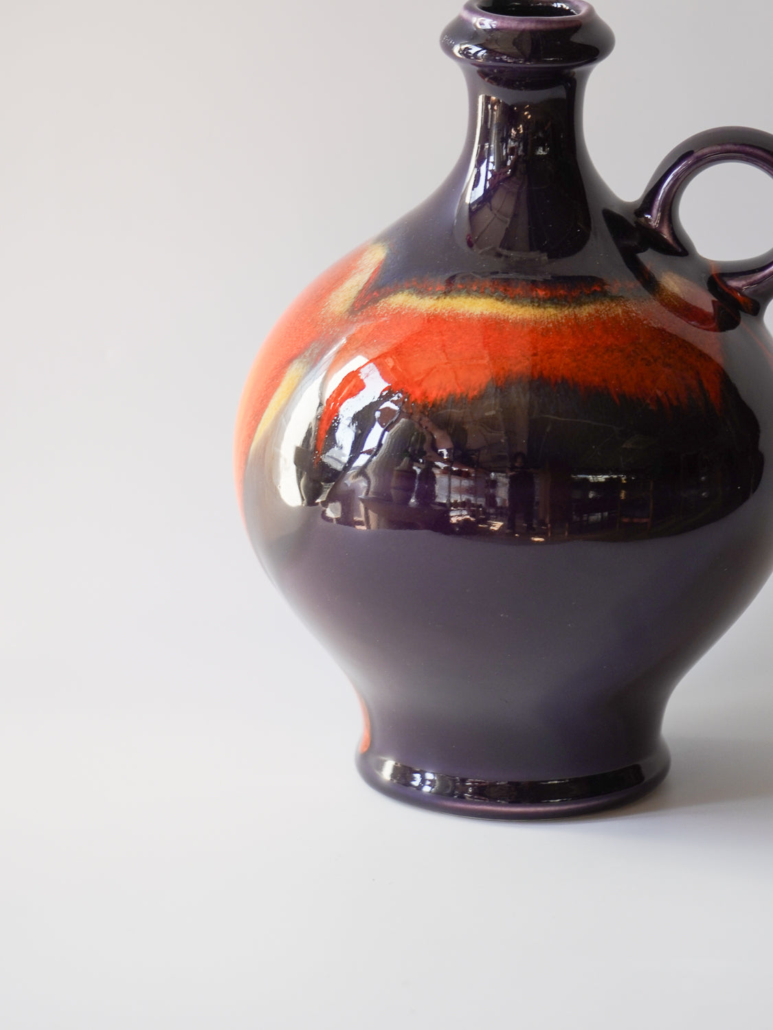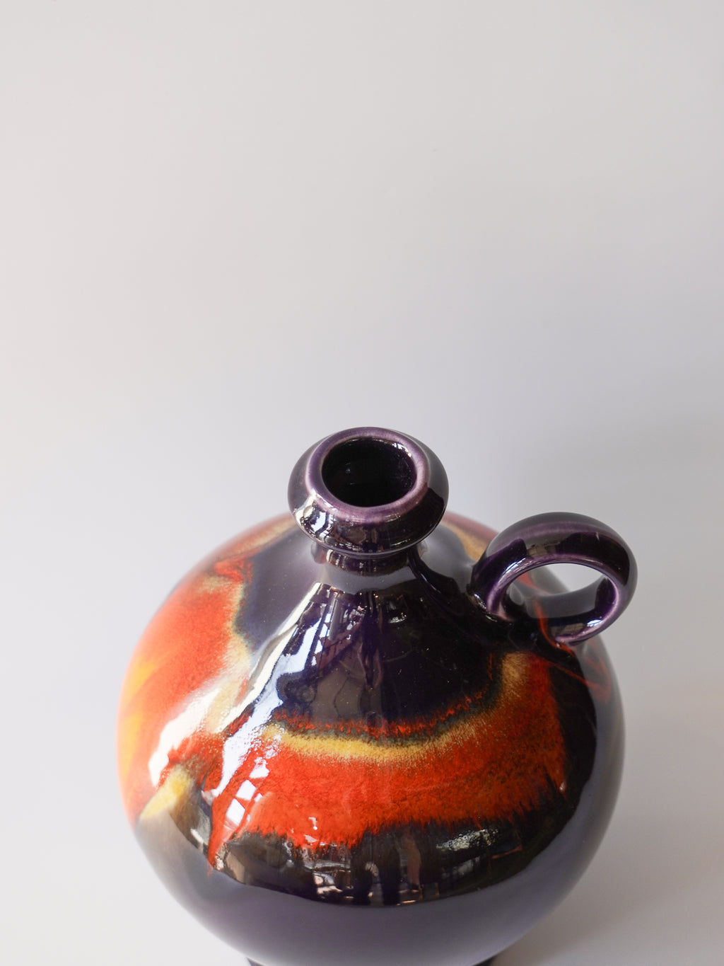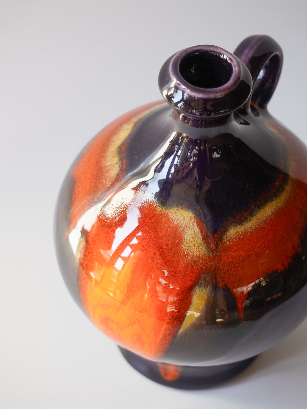 This vintage vase features modern aesthetics. The glossy blue-gray base features a three-dimensional, organic texture, creating a unique finish that changes appearance depending on the angle of the light. The flowing glaze pattern is distinctive, making it a recommended one-of-a-kind art piece.