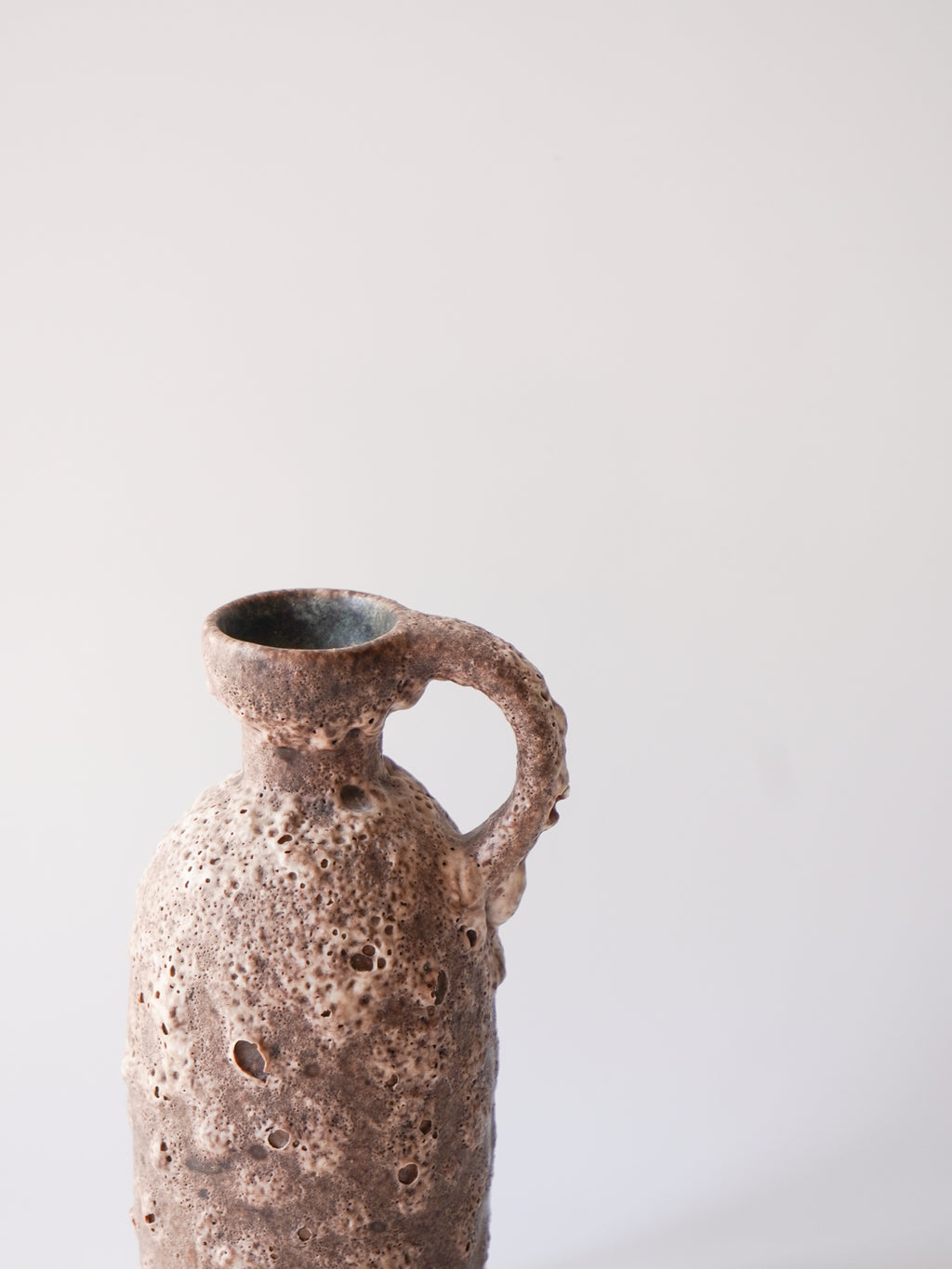 This vintage vase features modern aesthetics. The glossy blue-gray base features a three-dimensional, organic texture, creating a unique finish that changes appearance depending on the angle of the light. The flowing glaze pattern is distinctive, making it a recommended one-of-a-kind art piece.