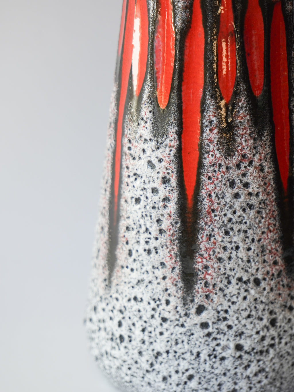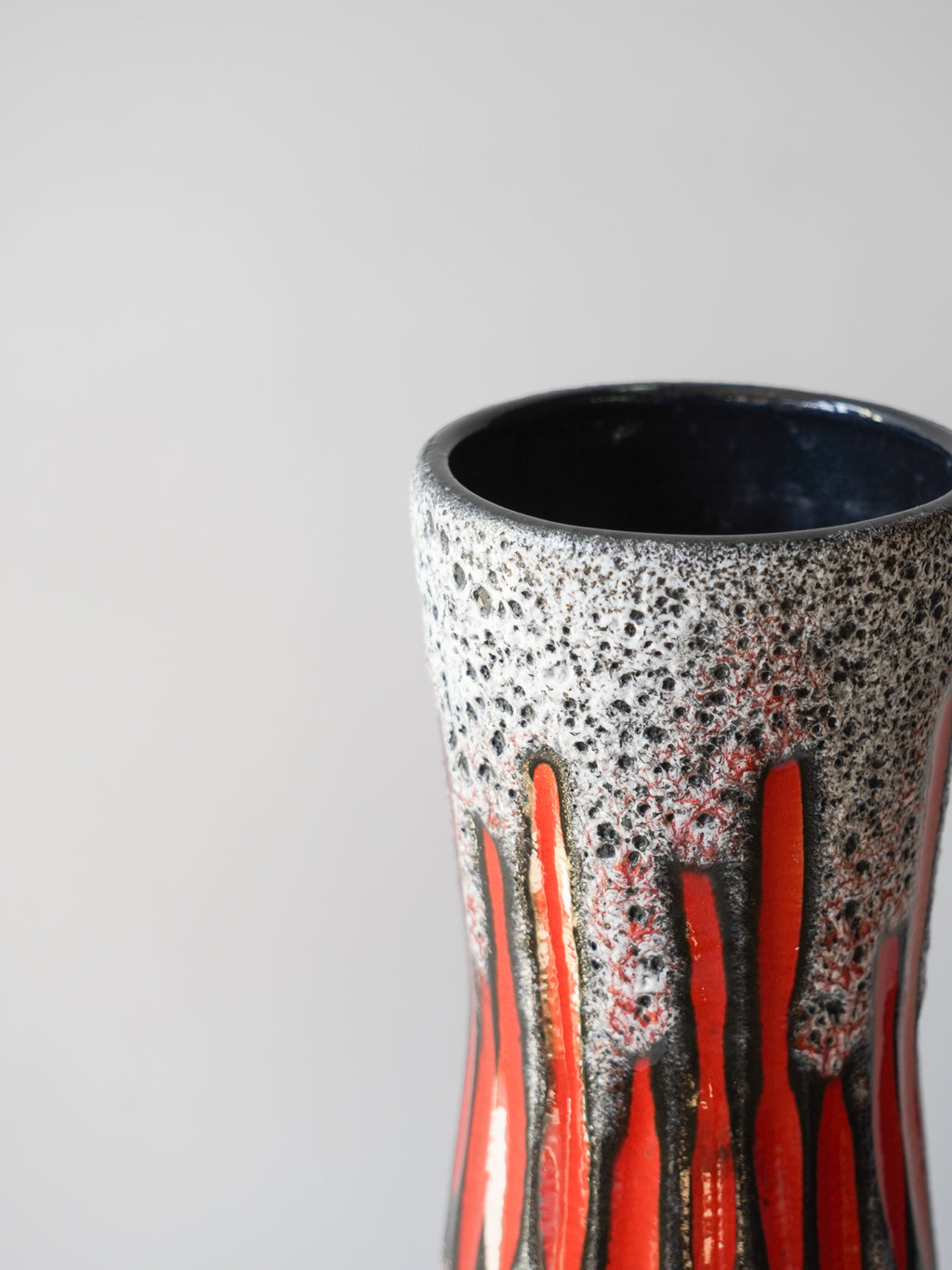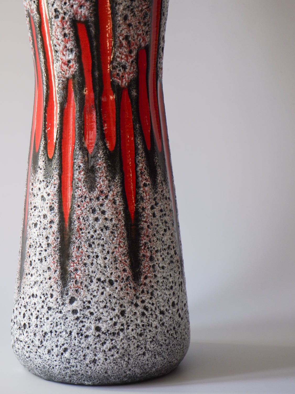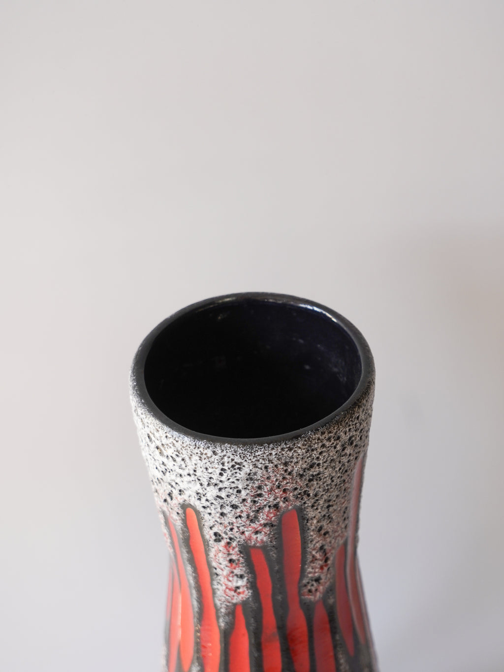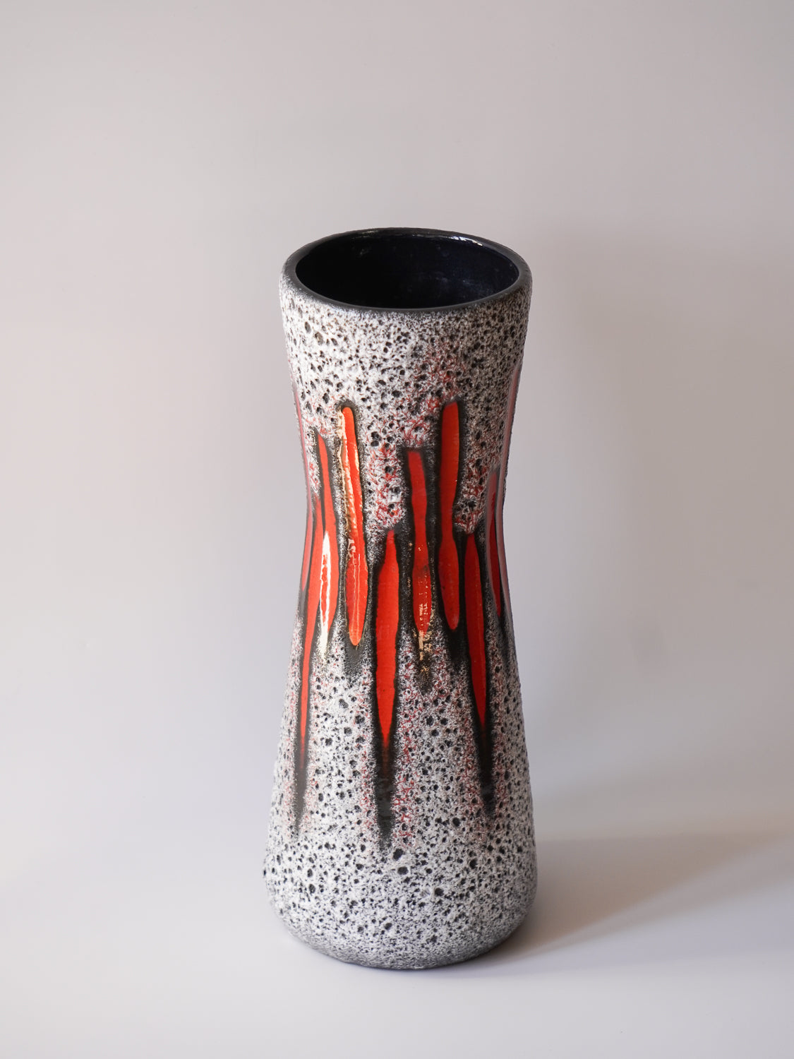 This vintage vase features modern aesthetics. The glossy blue-gray base features a three-dimensional, organic texture, creating a unique finish that changes appearance depending on the angle of the light. The flowing glaze pattern is distinctive, making it a recommended one-of-a-kind art piece.