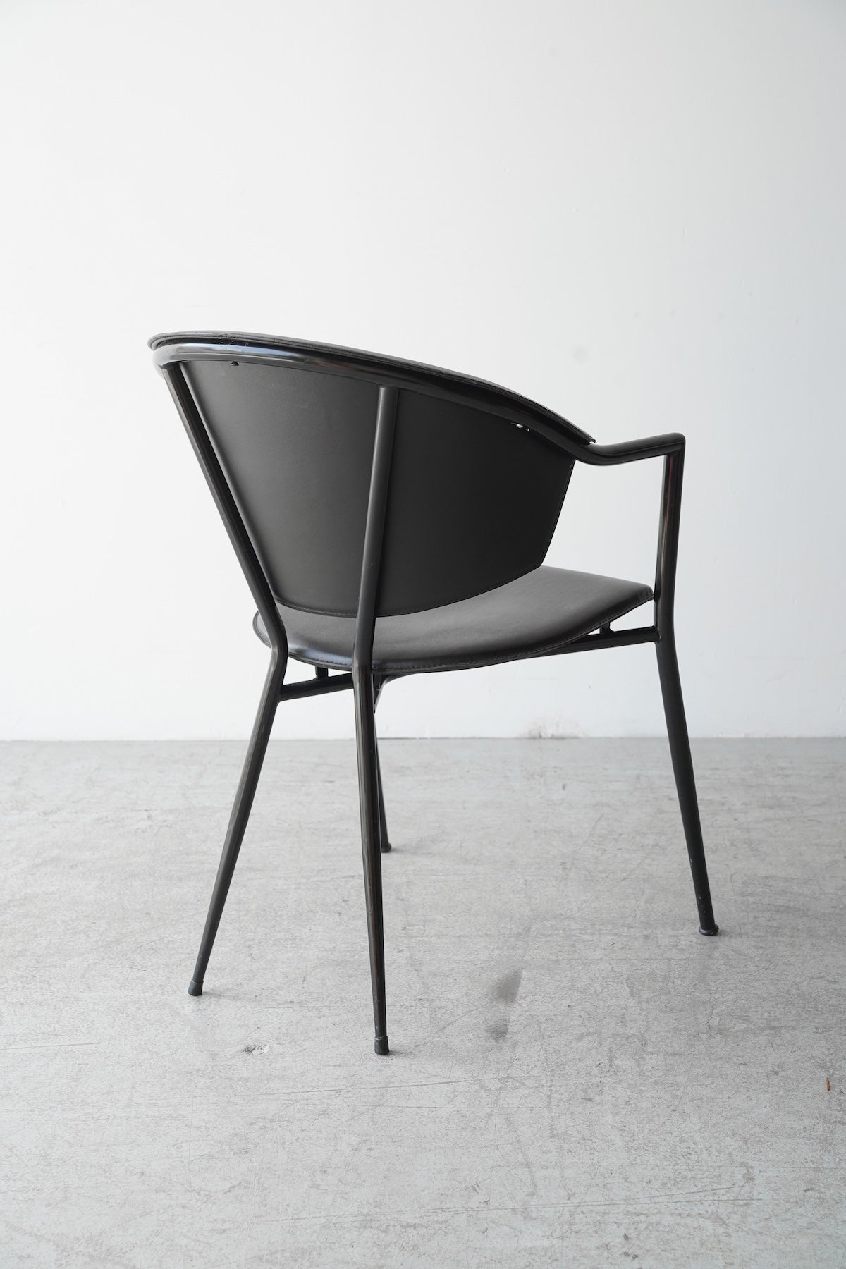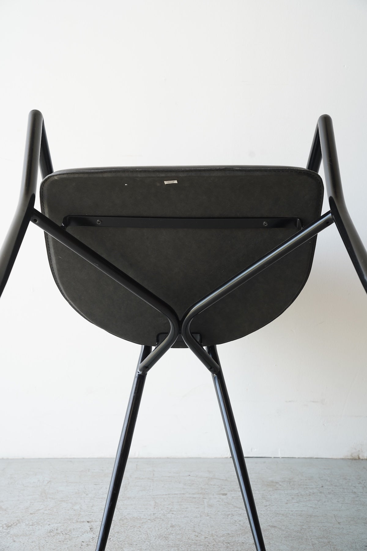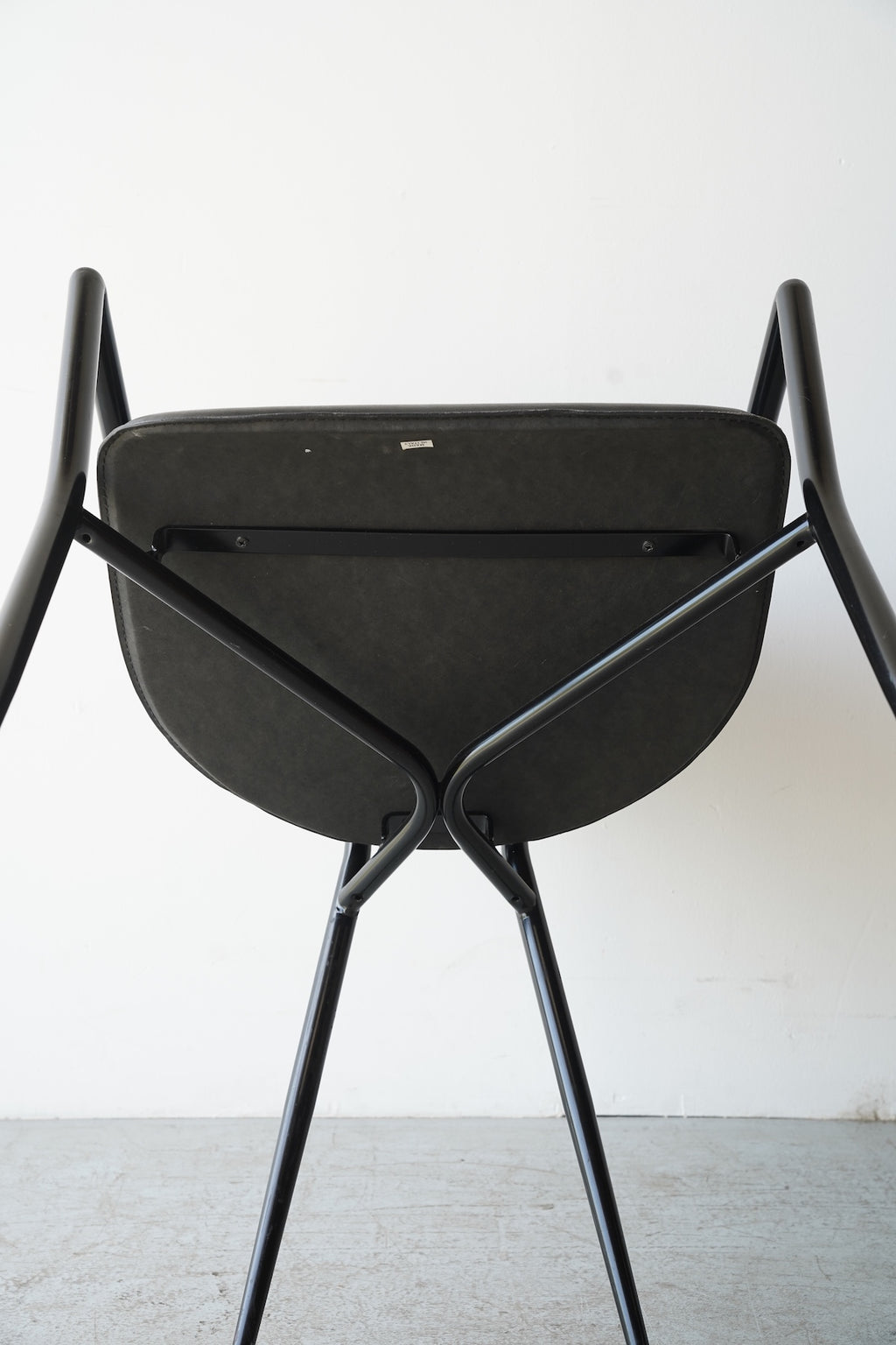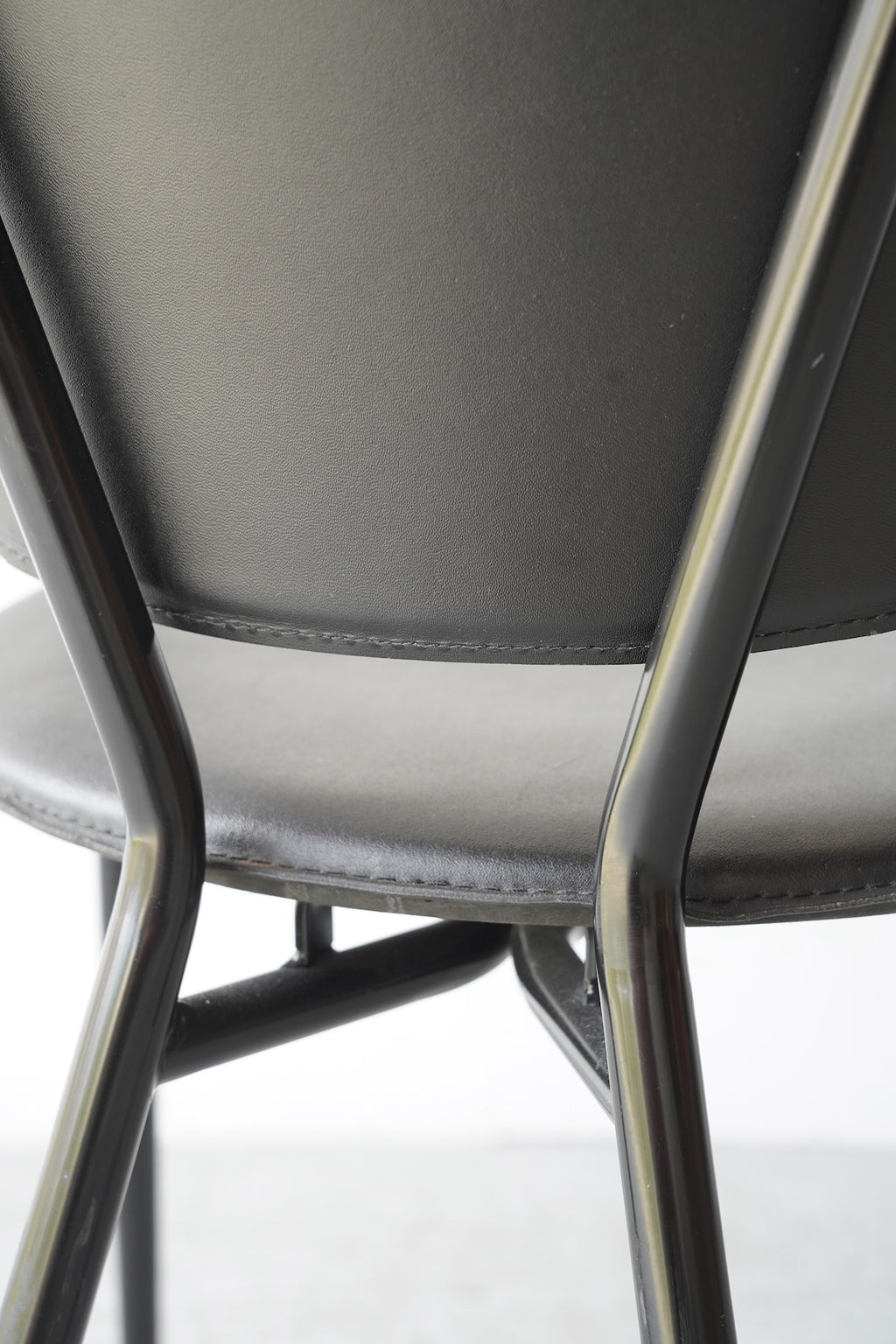 The seat and back are upholstered in black, creating a calming atmosphere with a modern, tense feel. While providing a comfortable seating experience, the clean silhouette makes this chair suitable for a wide range of uses, including as a dining chair, in the office, or in shop displays.