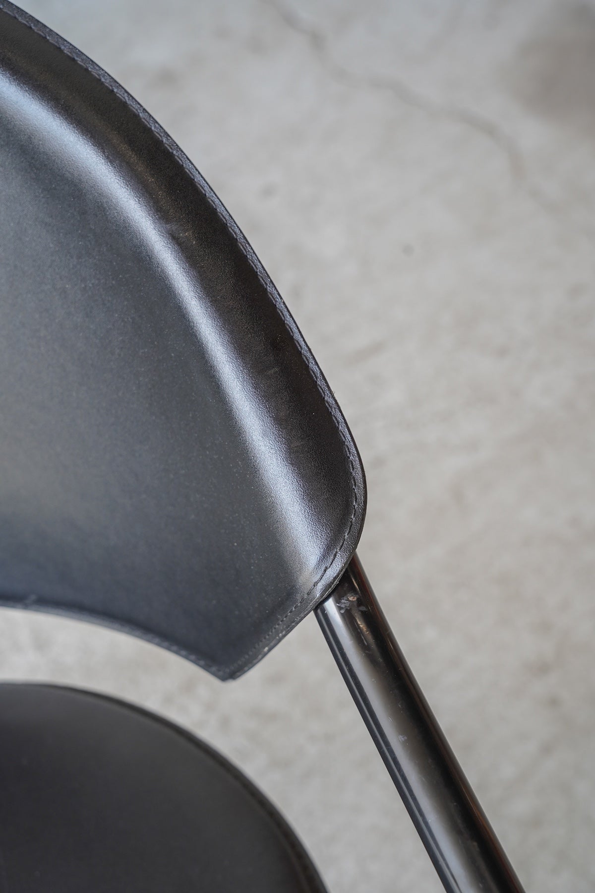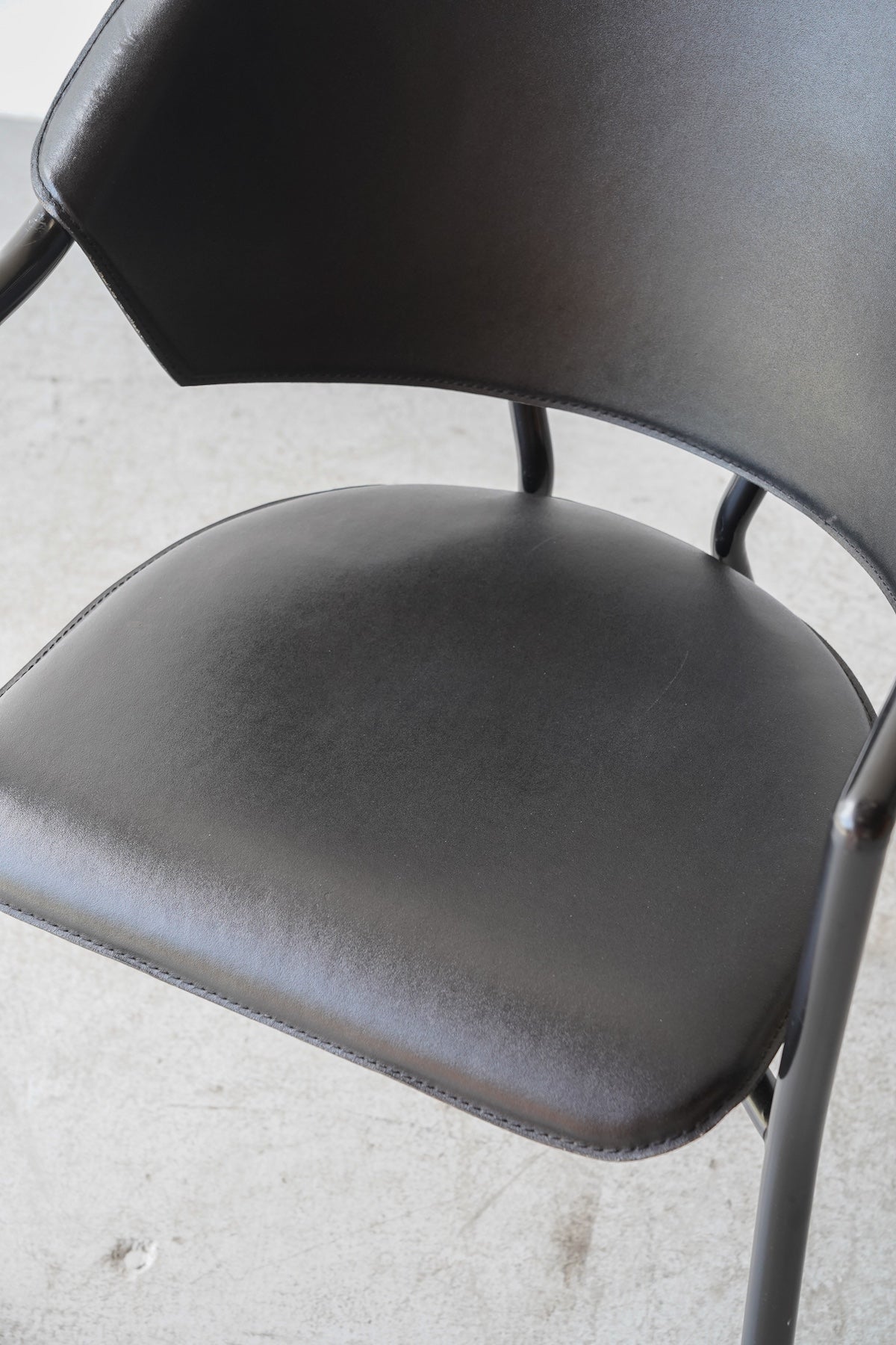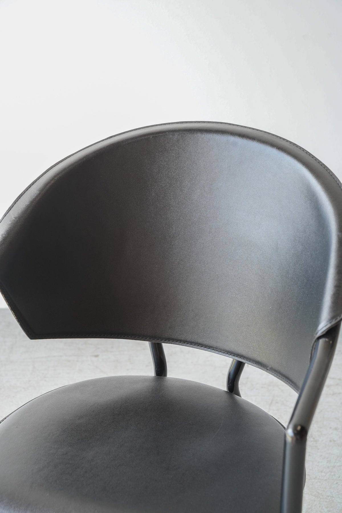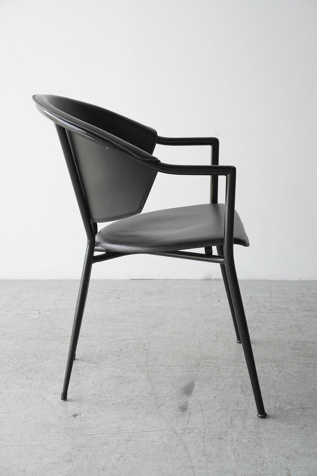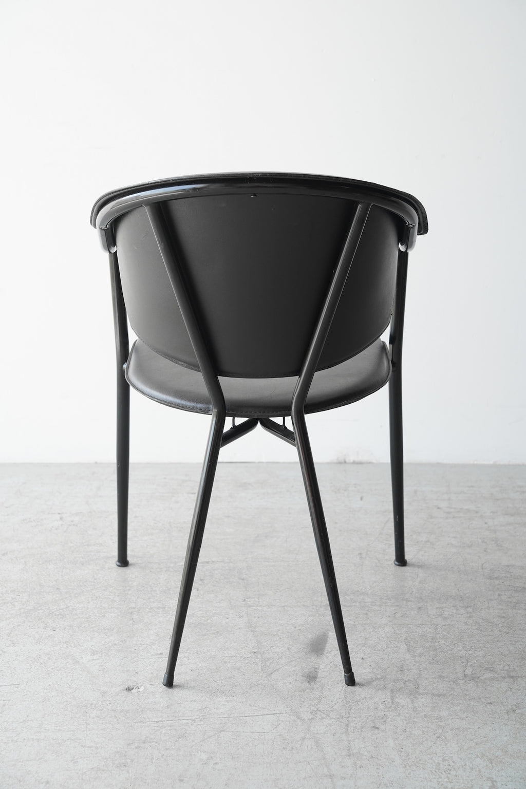 The seat and back are upholstered in black, creating a calming atmosphere with a modern, tense feel. While providing a comfortable seating experience, the clean silhouette makes this chair suitable for a wide range of uses, including as a dining chair, in the office, or in shop displays.