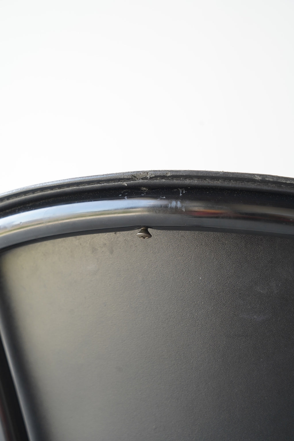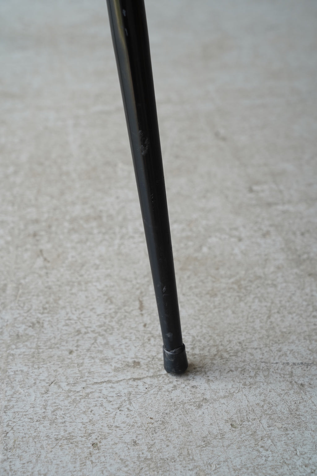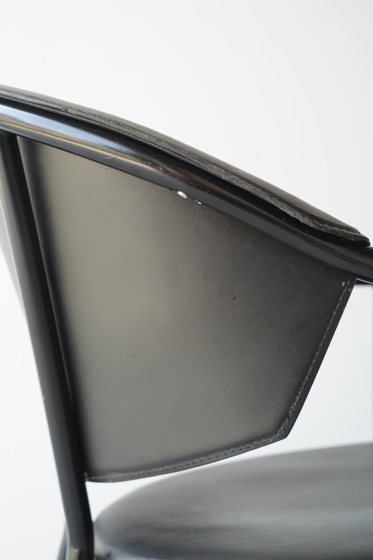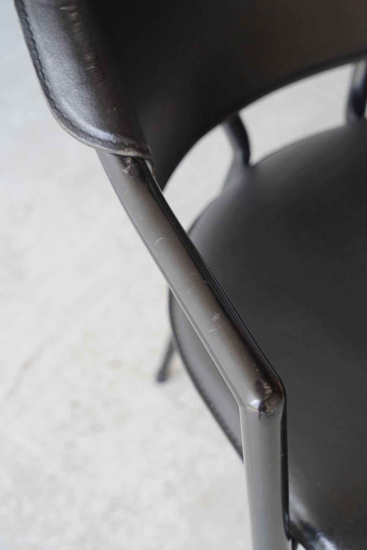 The seat and back are upholstered in black, creating a calming atmosphere with a modern, tense feel. While providing a comfortable seating experience, the clean silhouette makes this chair suitable for a wide range of uses, including as a dining chair, in the office, or in shop displays.