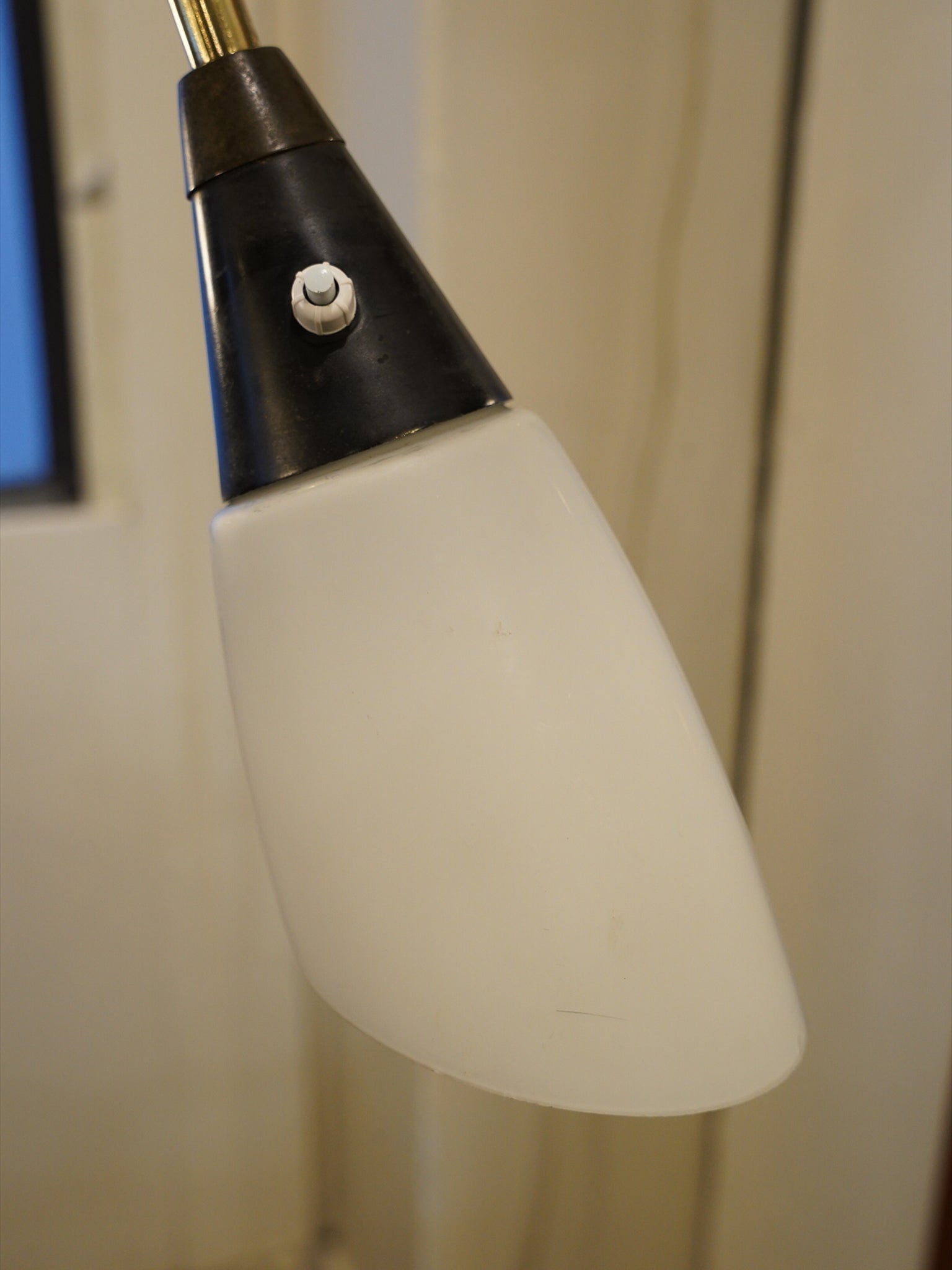 リビングのソファ横や、寝室のコーナーに置くことで、柔らかな間接照明として活躍します。デザイン性の高い照明をお探しの方に最適な、希少なヴィンテージアイテムです。