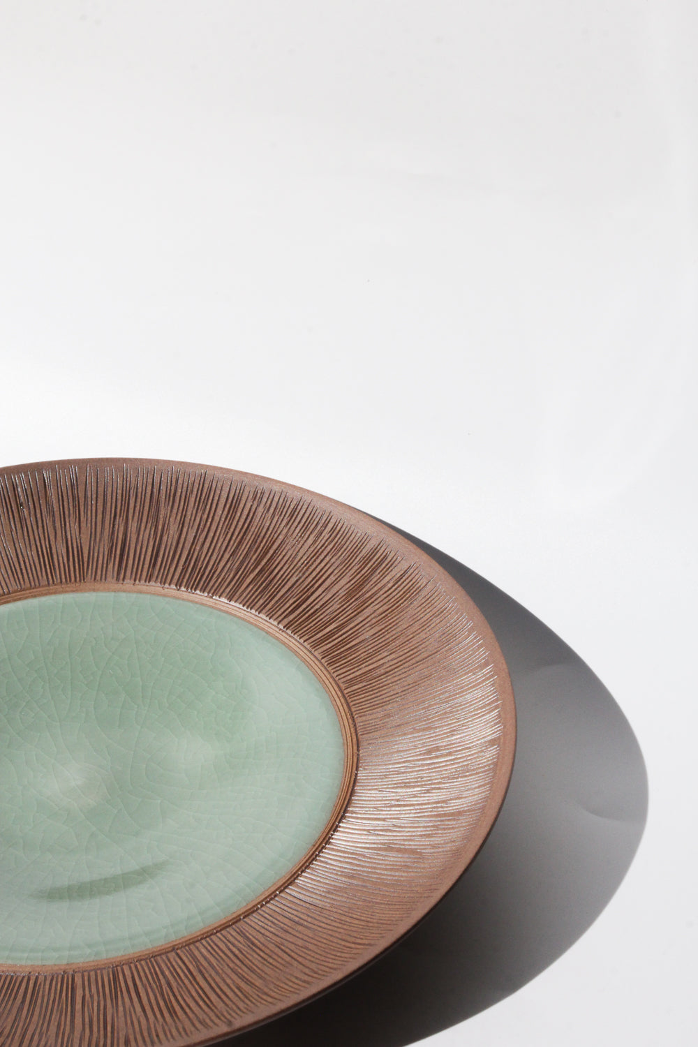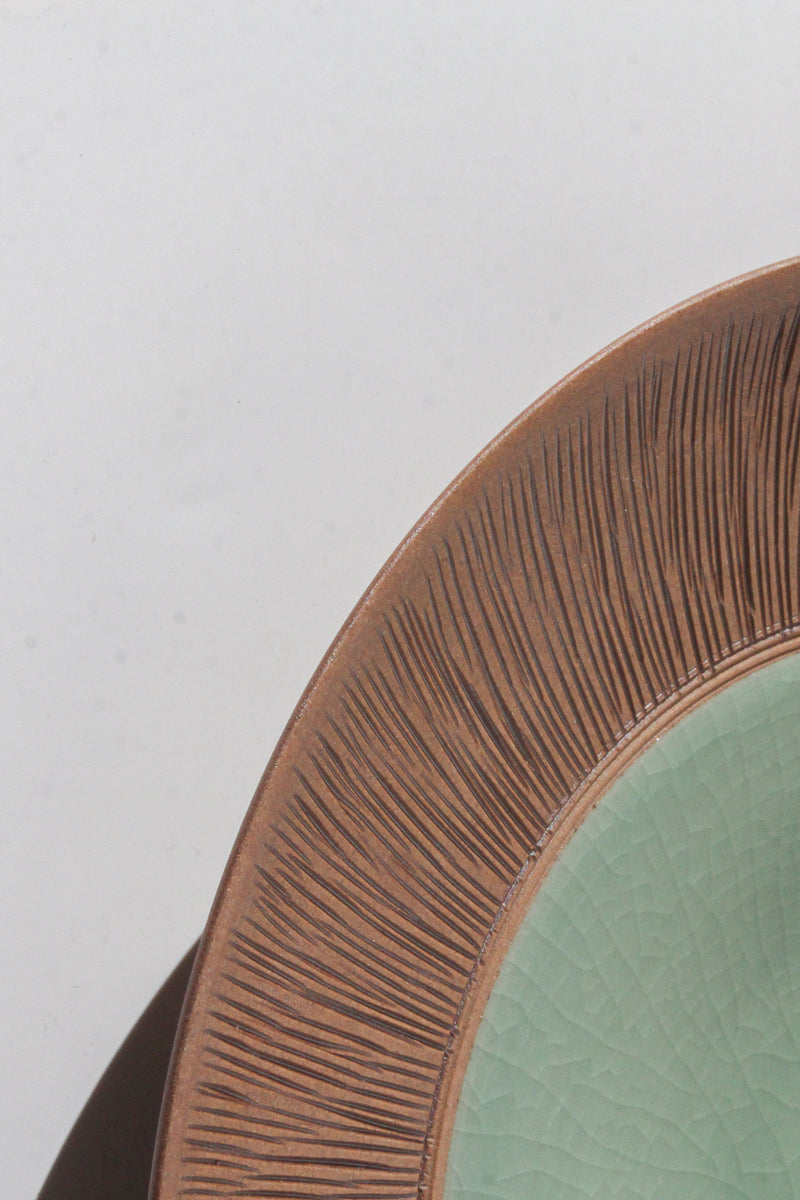The comb-patterned celadon ware is a delicate design inspired by ancient comb-patterned pottery.