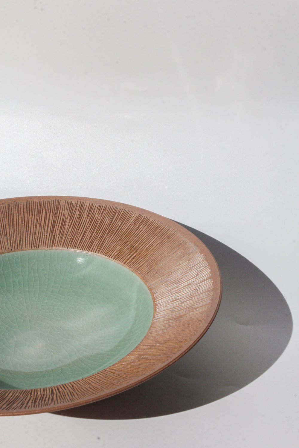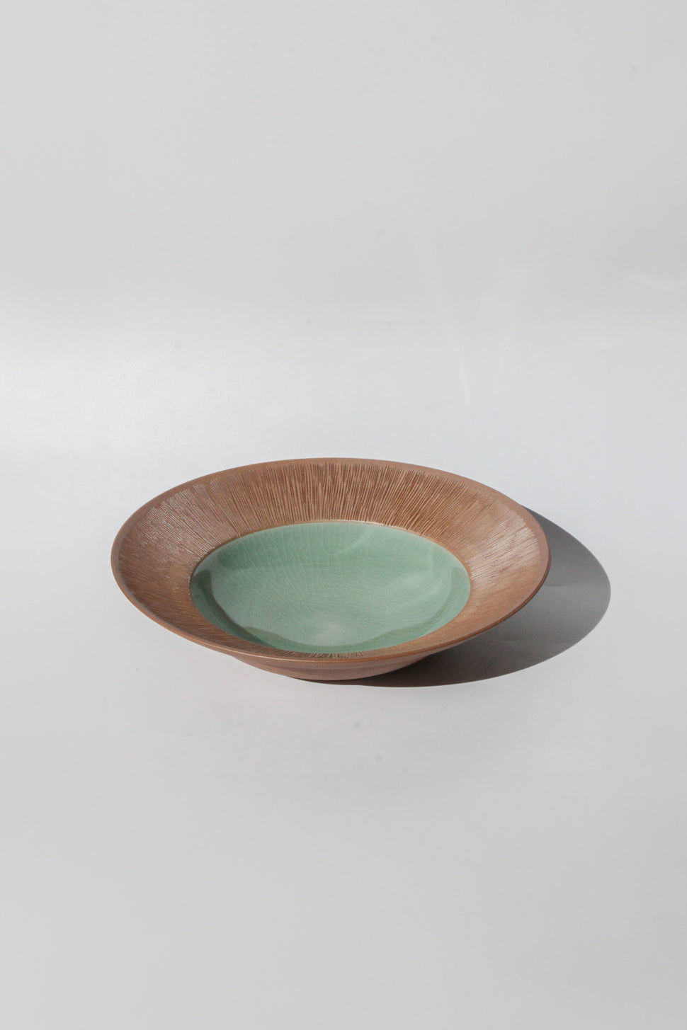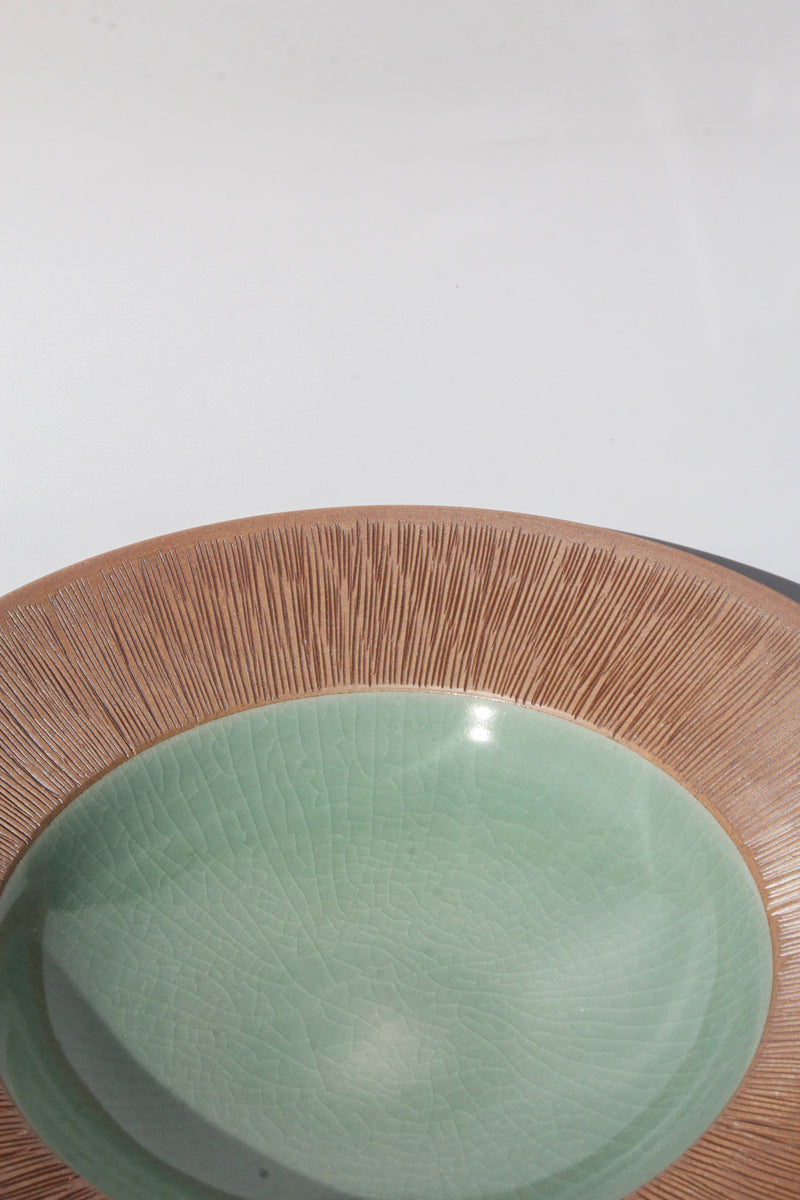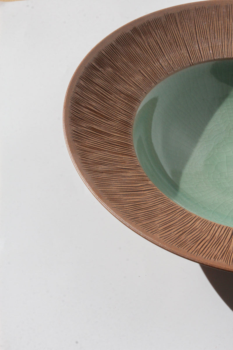 The comb-patterned celadon ware is a delicate design inspired by ancient comb-patterned pottery.