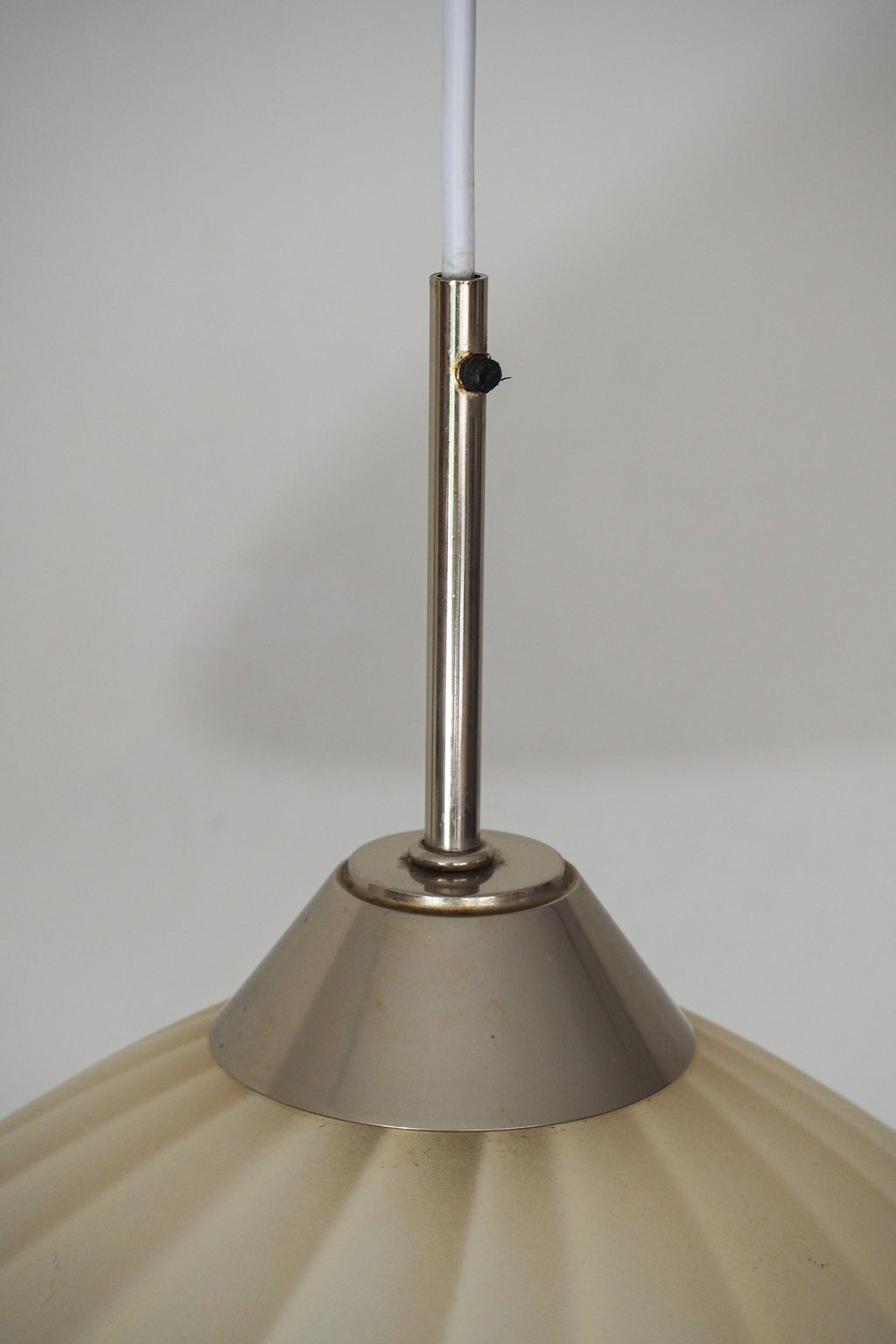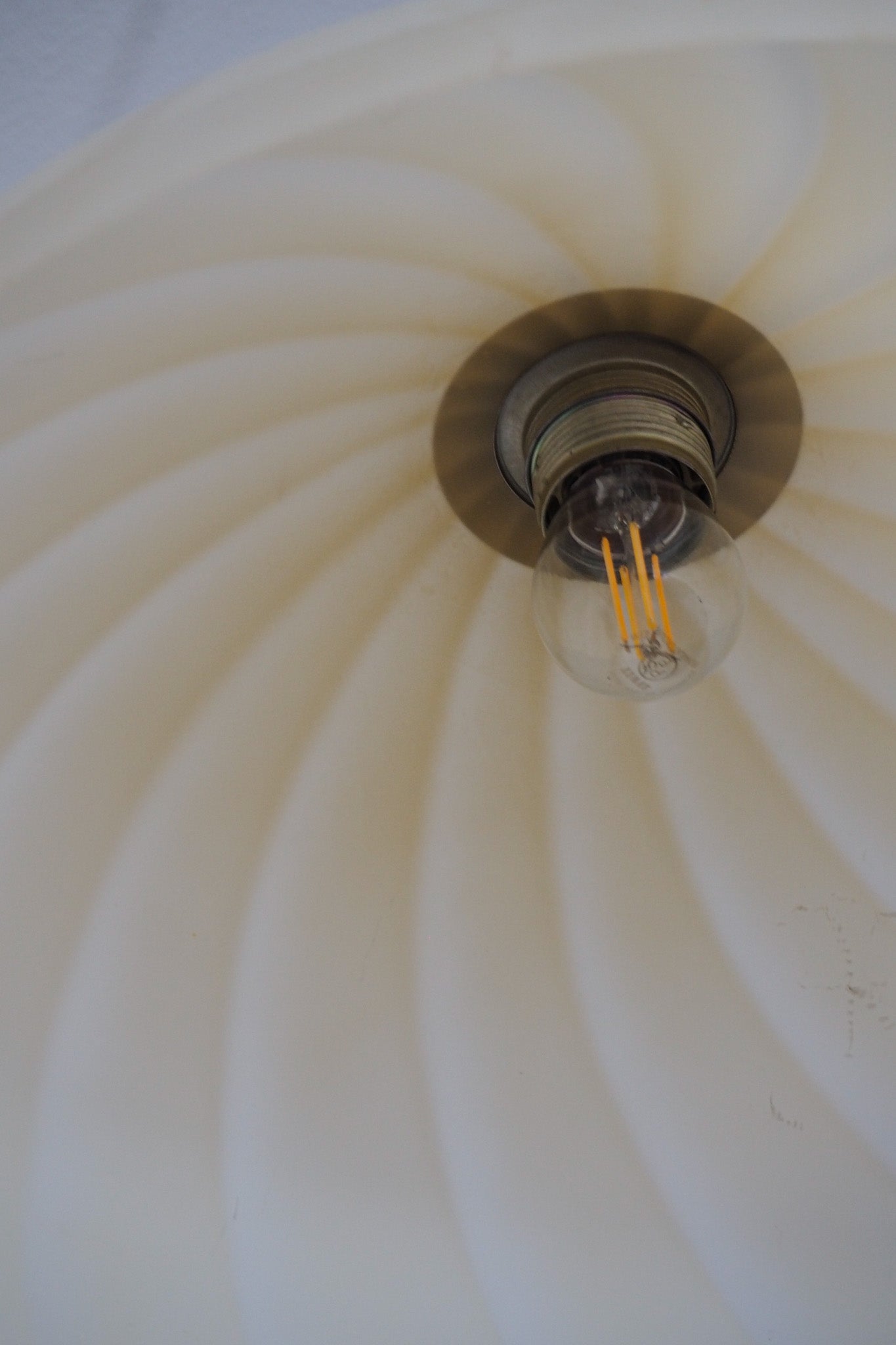 From Belgium Material Glass Size 直径/40cm 高さ/30cm 電球口径/E26 重量/2.2kg Condition Vintage 当店の商品はヴィンテージ・USED品の為、経年による使用感、劣化、小傷などはございます。気になる点や不明点などはお気軽にお問合せ下さい。 配送 佐川急便(140サイズ) 商品詳細欄にて出来る限りの商品説明はいたしておりますが、説明しきれない多少の傷、汚れ、経年に伴う変色などがある事をご理解願います。