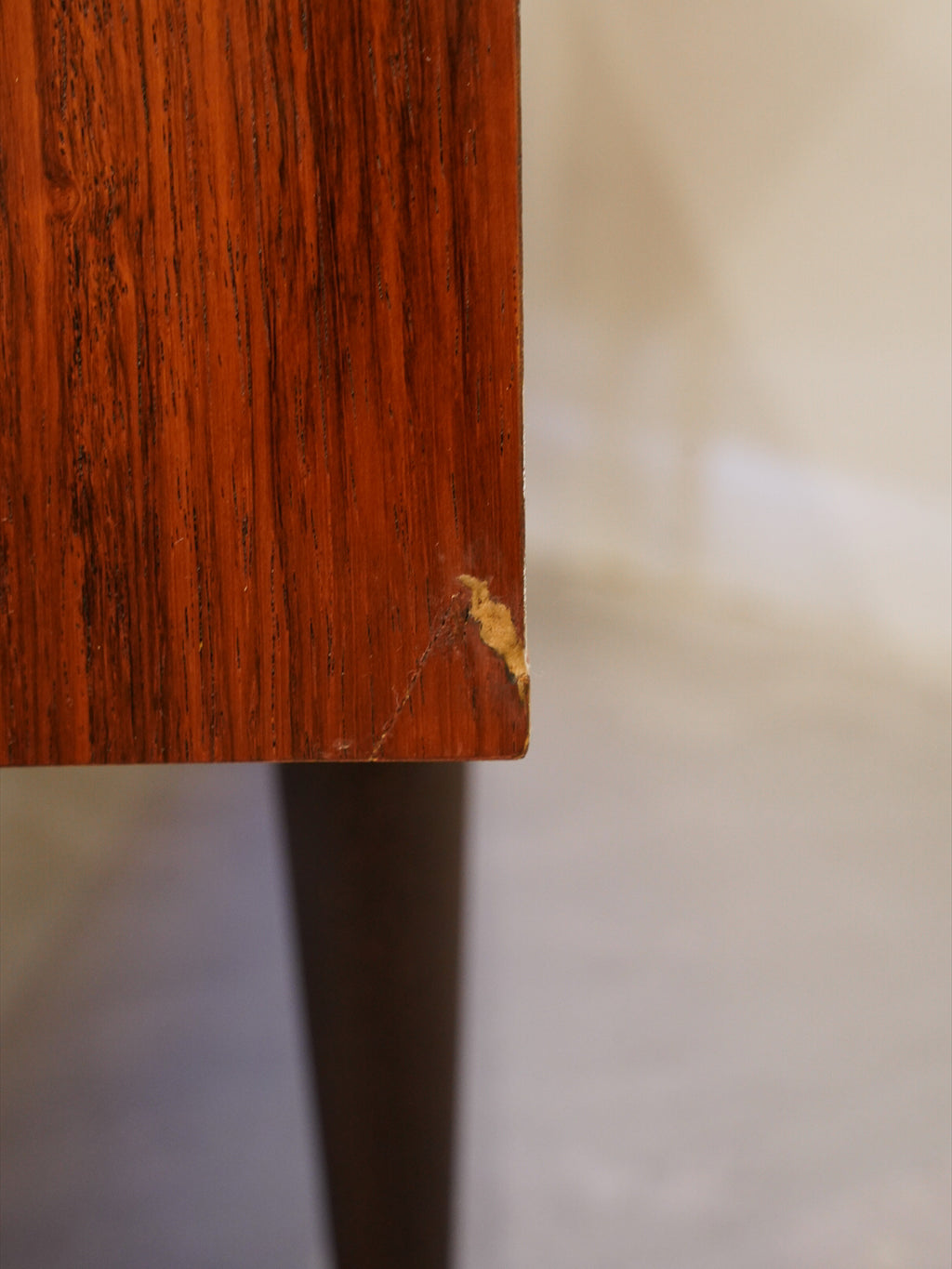 北欧ミッドセンチュリー期らしい装飾を抑えたシンプルなデザインで、美しい木目を最大限に引き立てています。深みのある色合いとダイナミックな木理が空間に格調高い雰囲気をもたらしています。