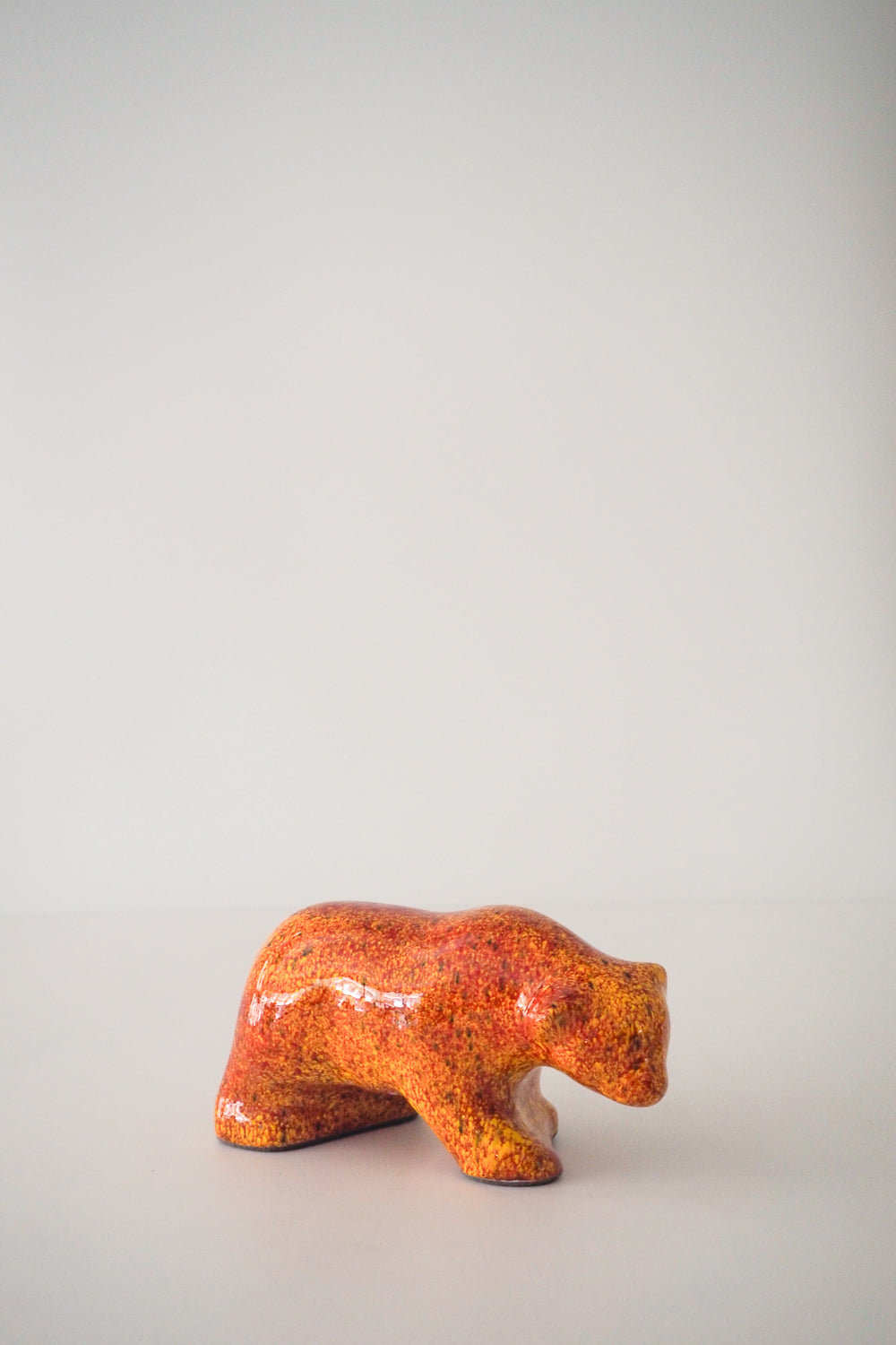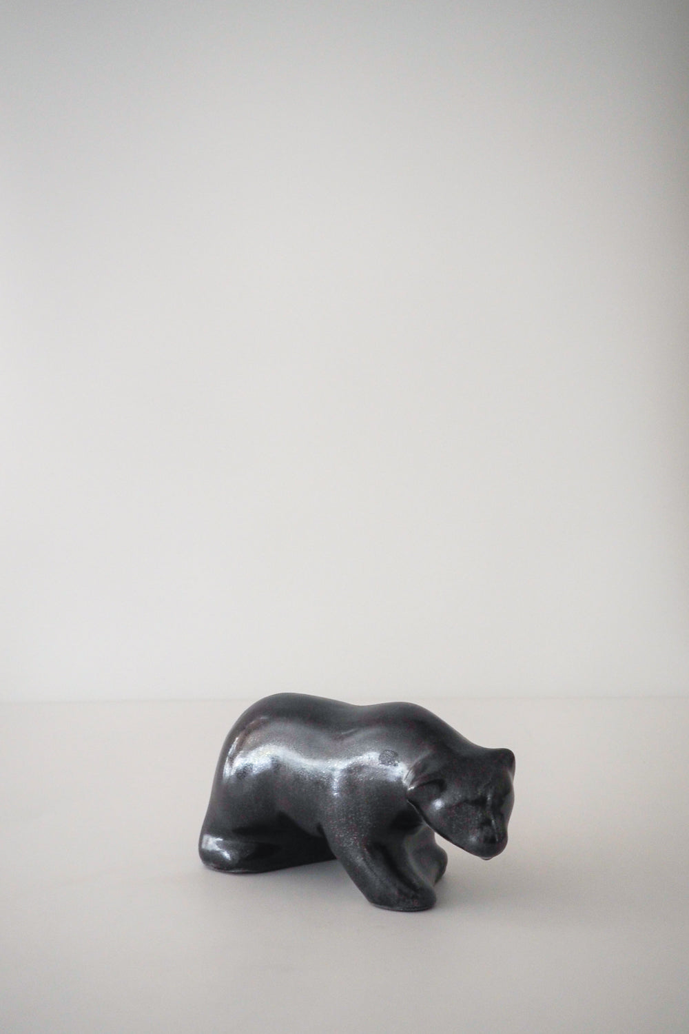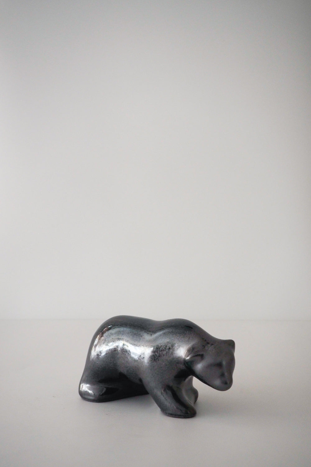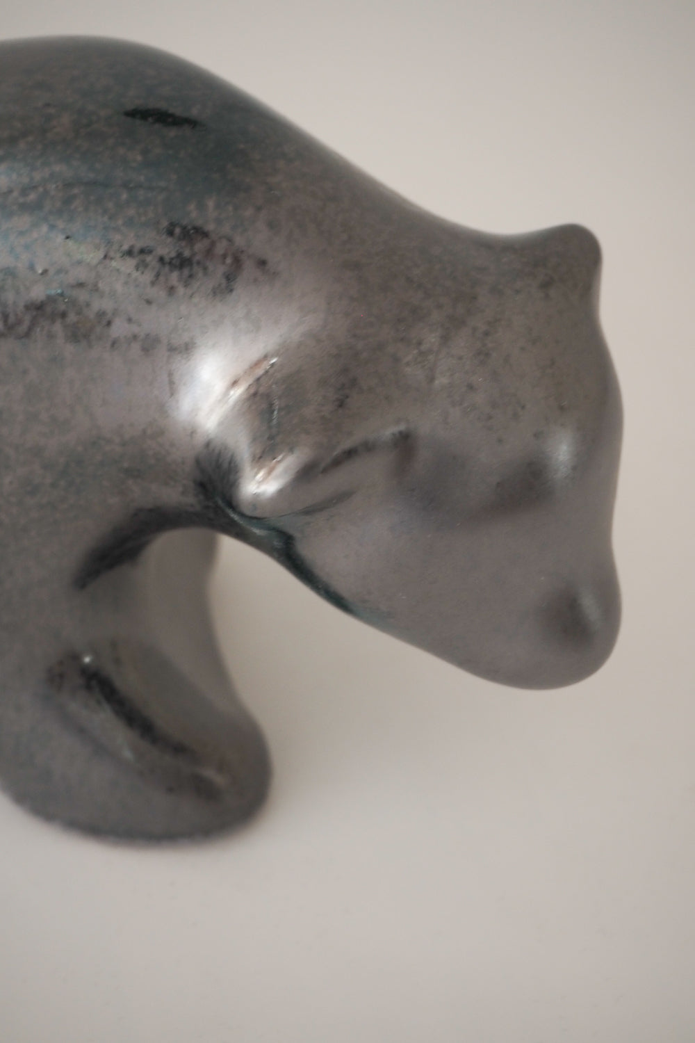 The flowing glaze creates a random speckled pattern on the surface, evoking a unique sense of depth reminiscent of a starry sky or natural stone. The image of a bear crawling powerfully forward on all fours is a simple yet dynamic design.