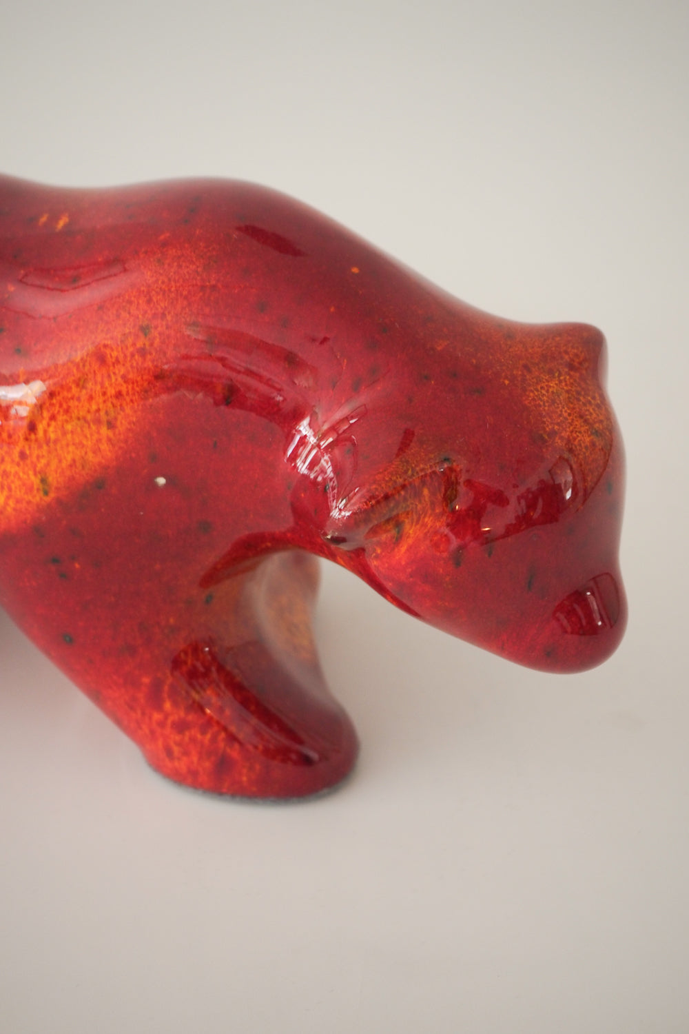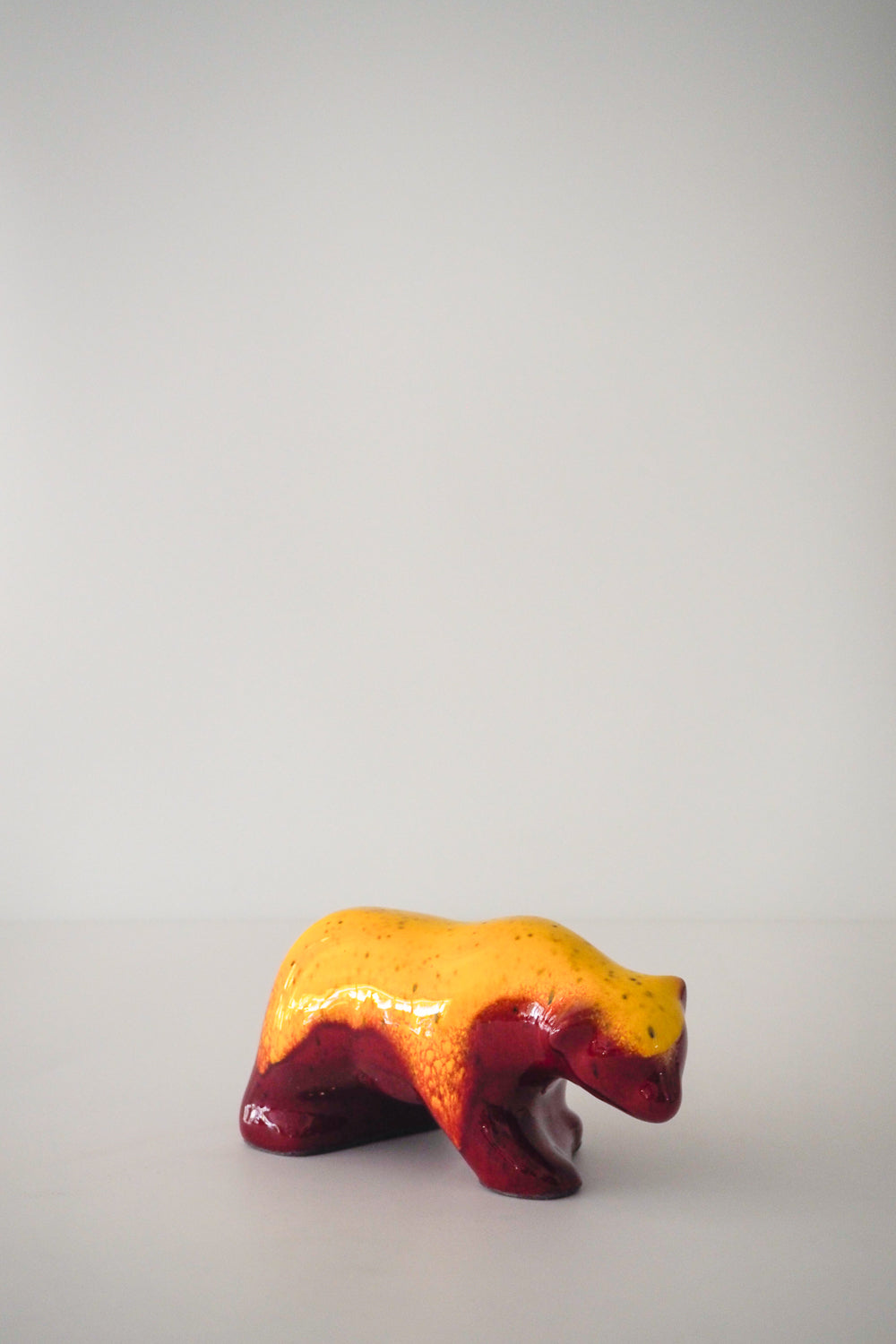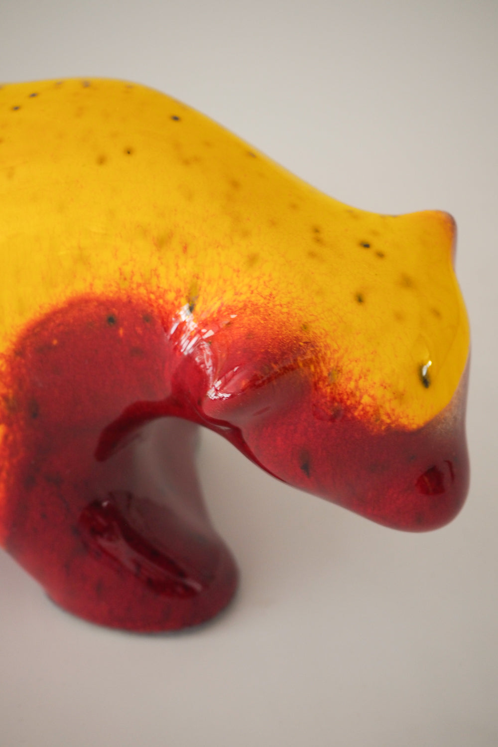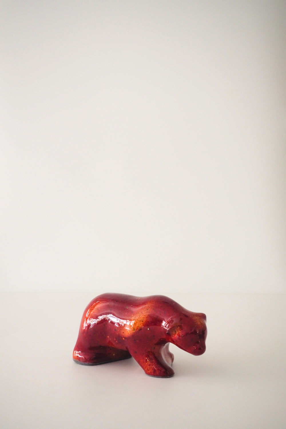 The flowing glaze creates a random speckled pattern on the surface, evoking a unique sense of depth reminiscent of a starry sky or natural stone. The image of a bear crawling powerfully forward on all fours is a simple yet dynamic design.