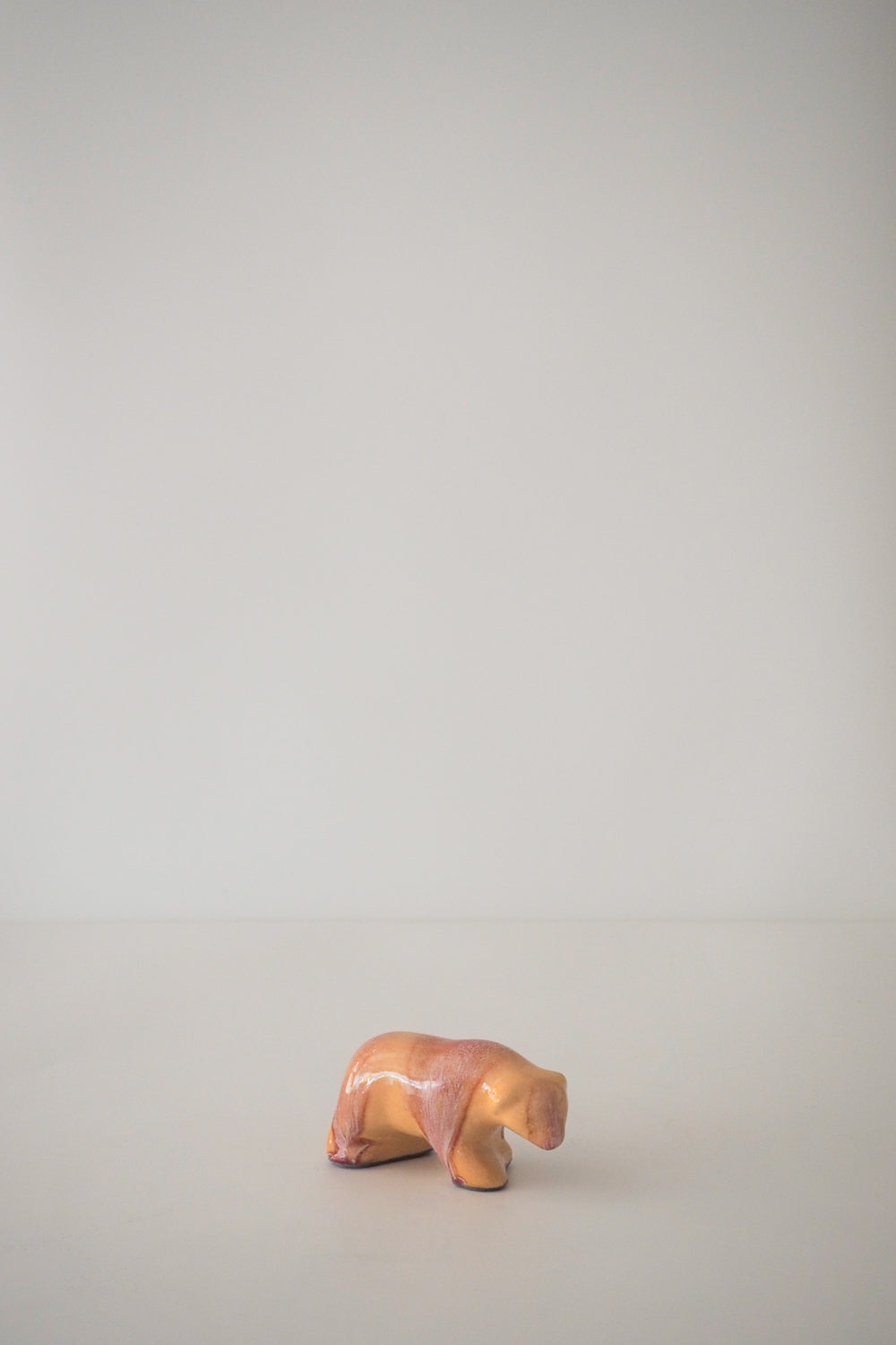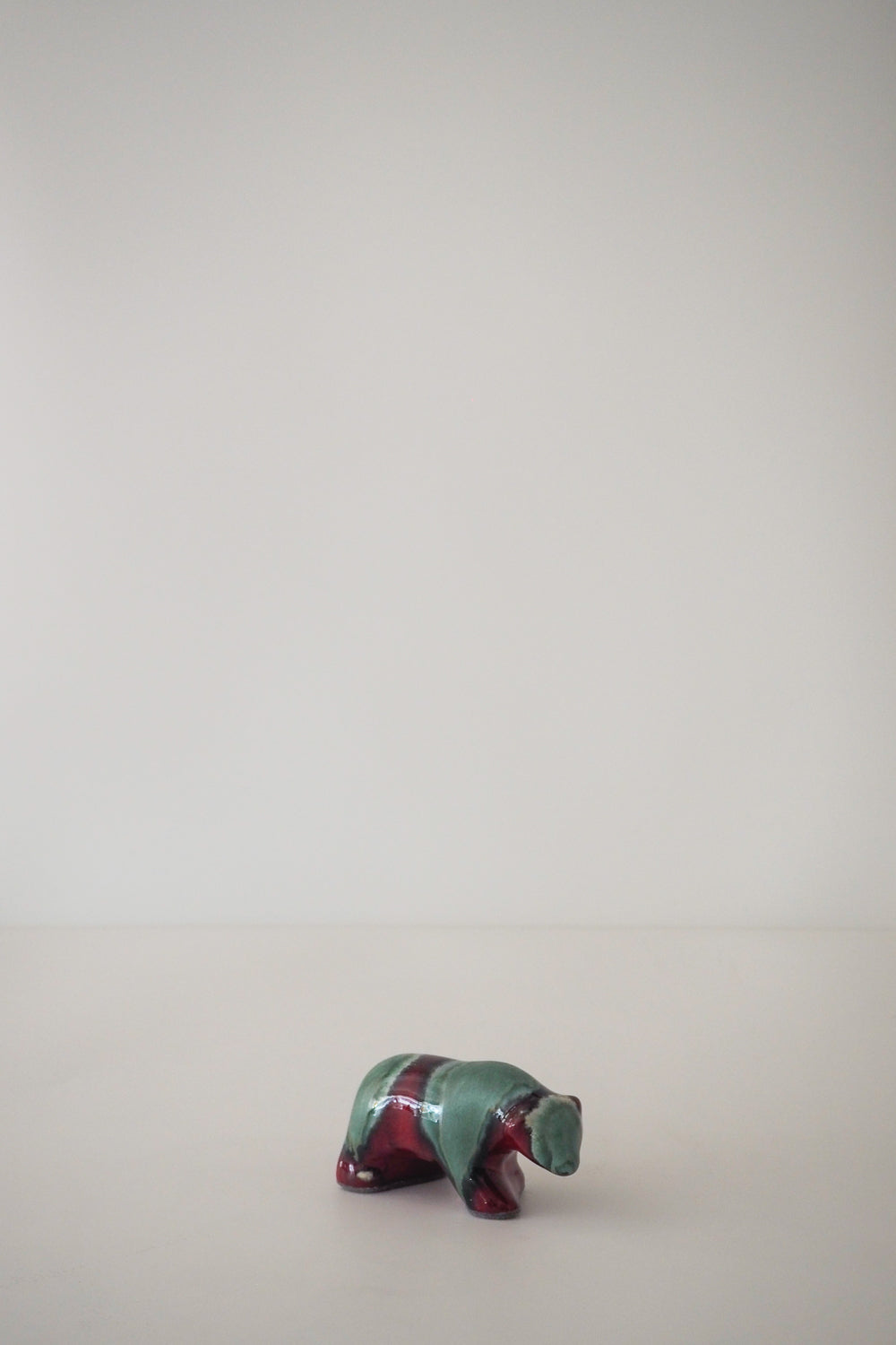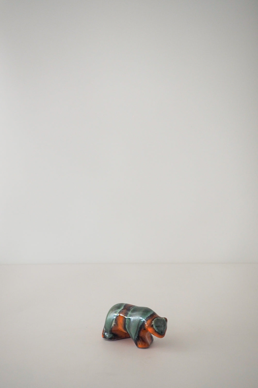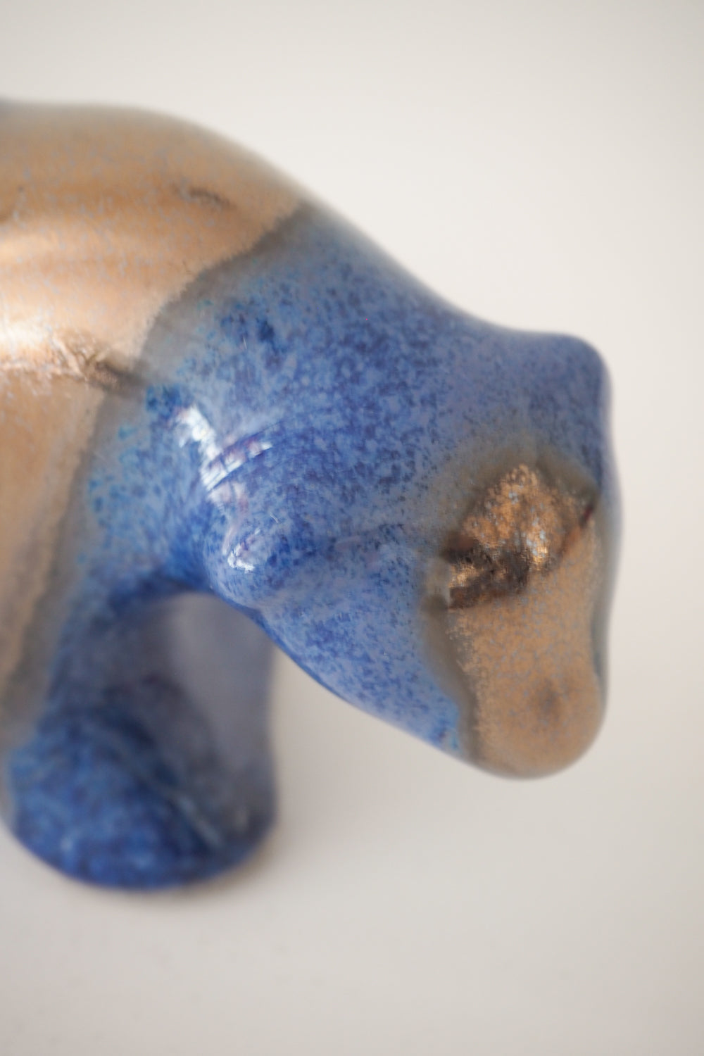 The flowing glaze creates a unique sense of depth. The image of a bear crawling powerfully on all fours is a simple yet dynamic design.