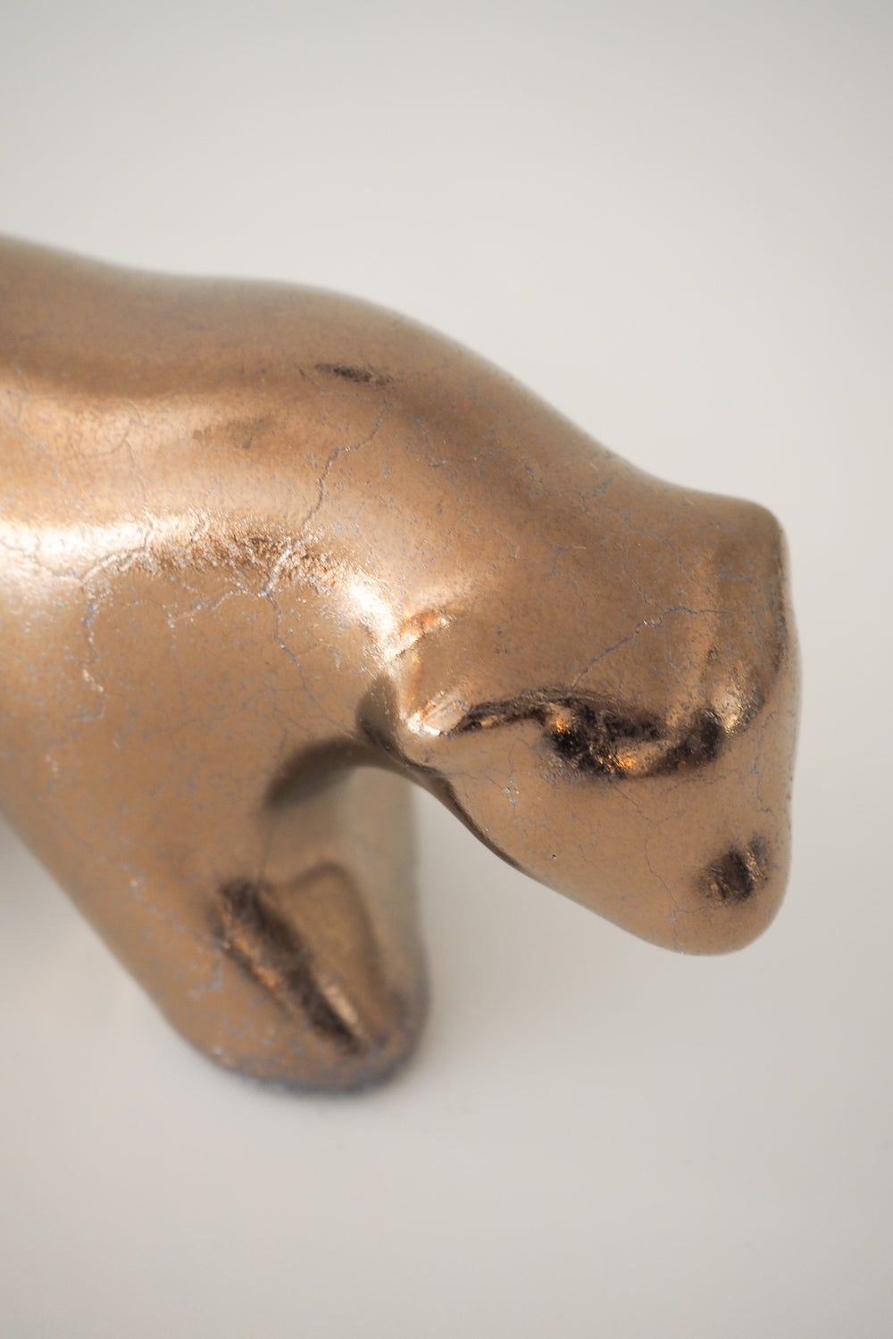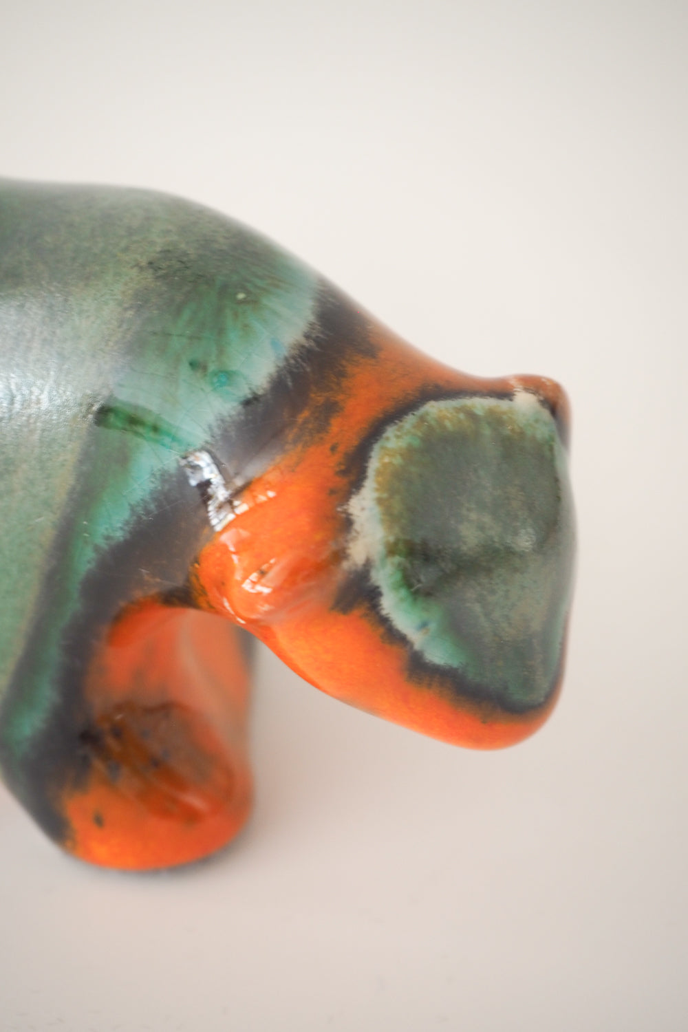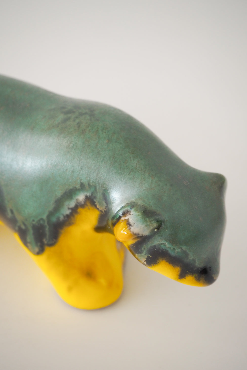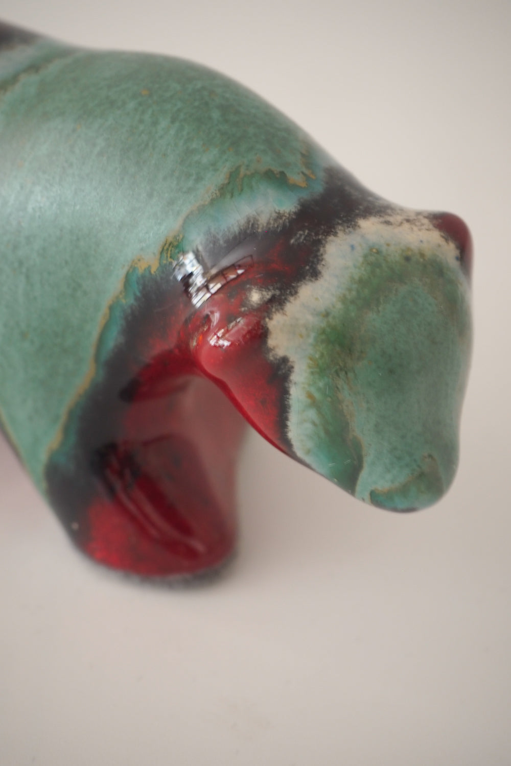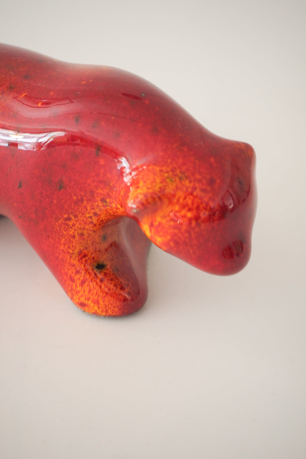The flowing glaze creates a unique sense of depth. The image of a bear crawling powerfully on all fours is a simple yet dynamic design.