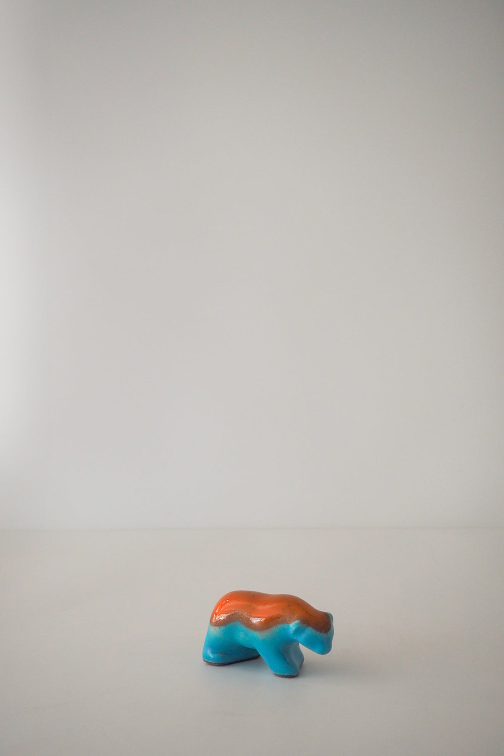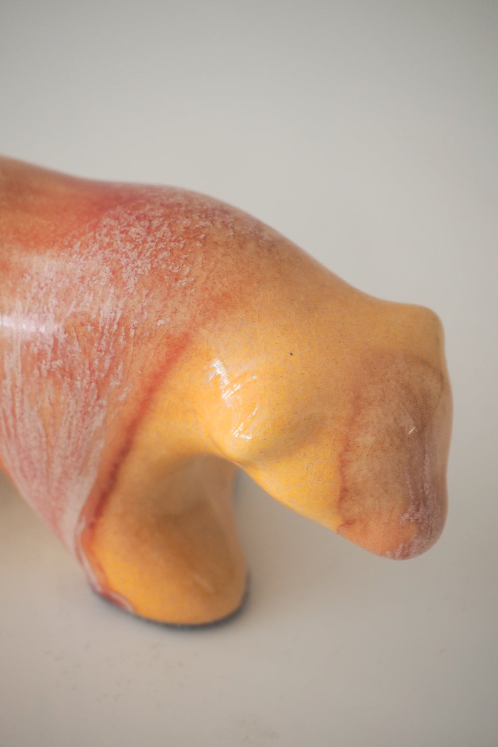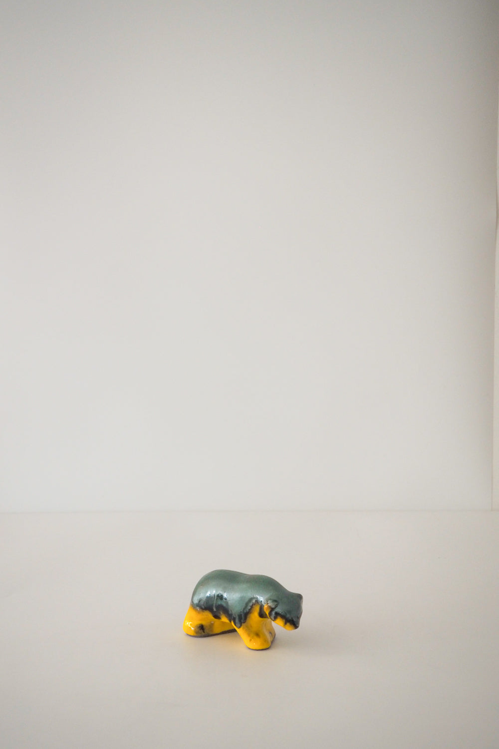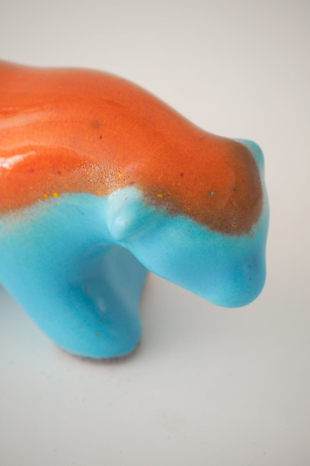 The flowing glaze creates a unique sense of depth. The image of a bear crawling powerfully on all fours is a simple yet dynamic design.