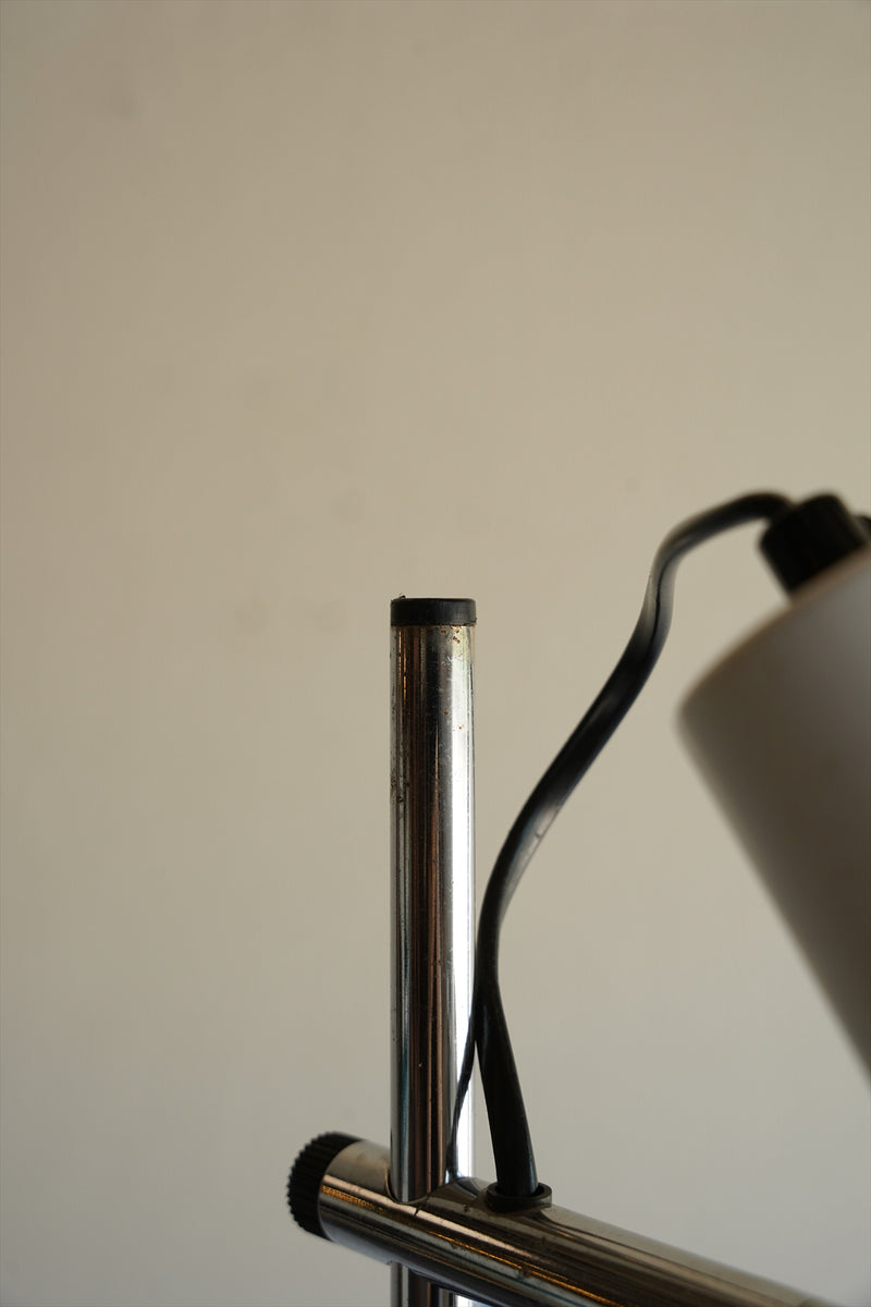 From EURO Material Aluminum, Chrome Size Width: 24cm Depth: 26cm Height: 146cm Bulb diameter: E26 Condition Vintage Our products are vintage and used, so they may show signs of wear, deterioration, minor scratches, etc. Please feel free to contact us with any questions or concerns you may have. Delivery Special delivery size (Rank B) We have tried to provide as detailed an explanation as possible in the product details section, but please understand that there may be minor scratches, stains, discoloration due to aging, etc. that cannot be fully explained.