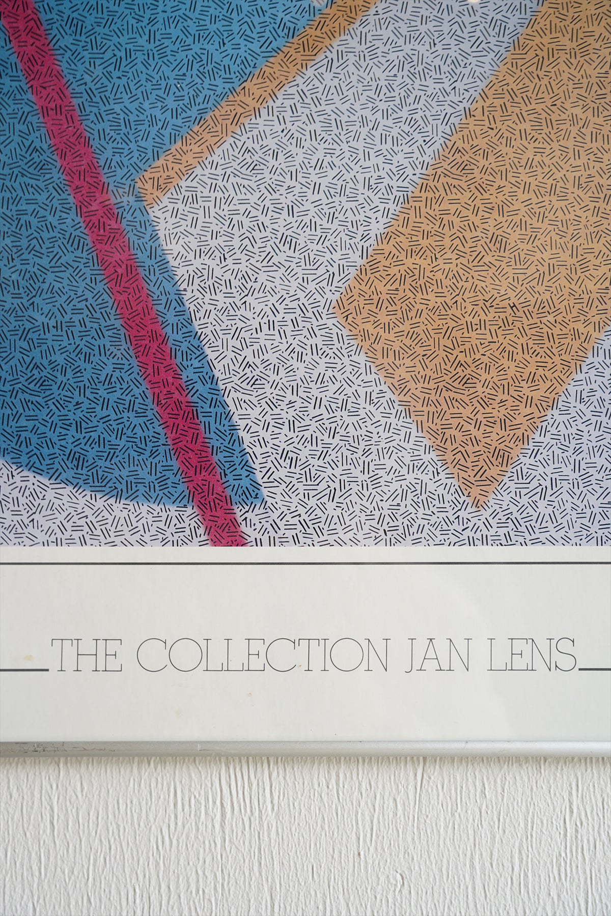 作品の下部には「THE COLLECTION JAN LENS」という文字が印刷されており、これはこのアートが「ヤン・レンズ・コレクション」に属していること、あるいはそのコレクションを紹介する展覧会のために制作されたポスターであることを示しています。ヤン・レンズ(Jan Lens)という人物については詳細な情報が限られていますが、この文脈から考えると、彼はコレクターまたはキュレーターとして現代抽象芸術、特に幾何学的抽象画を専門に扱っていた可能性が高いと考えられます。