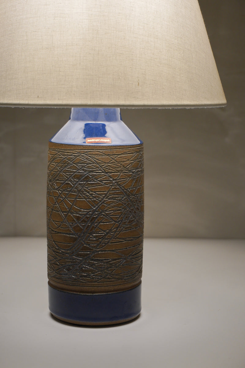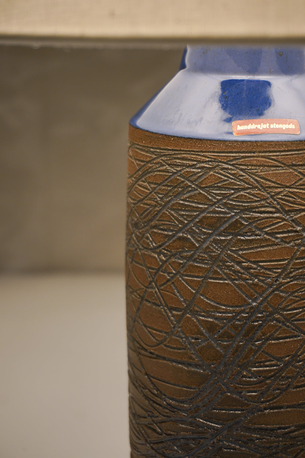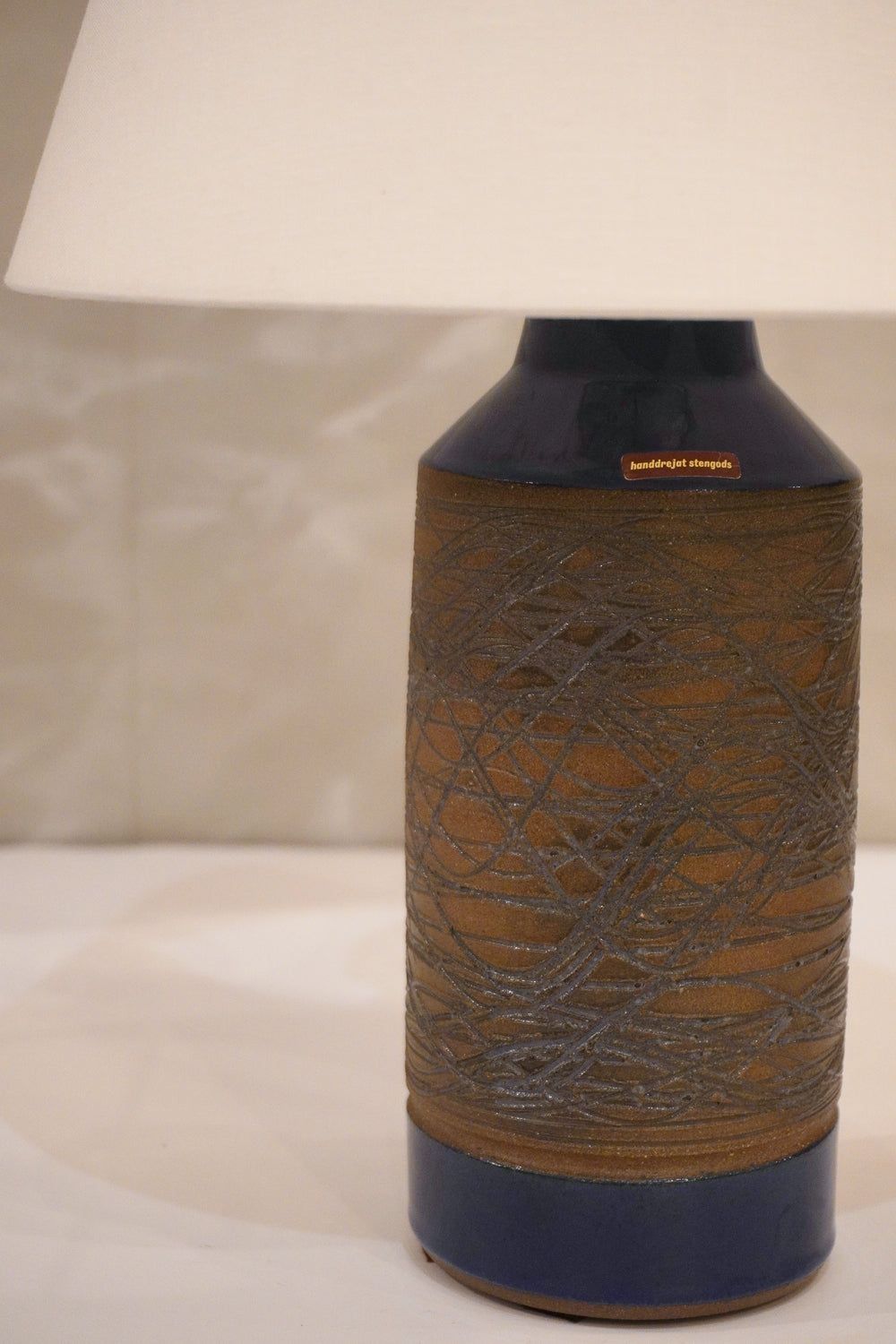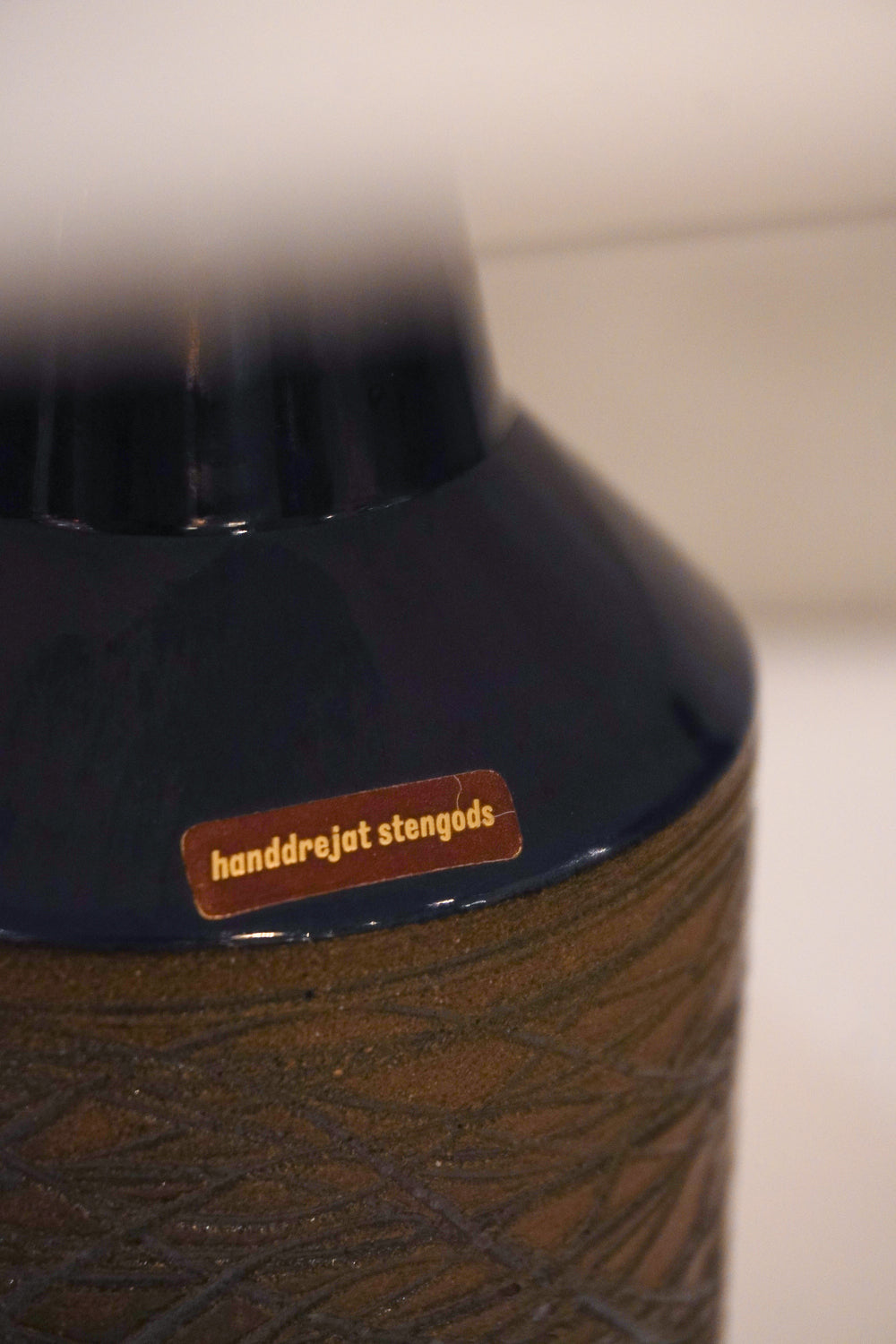 「handdrejat stengods」と書いたシールが付いていて、スウェーデン語で意味は「手作りの陶器。」スウェーデンのハンドメイドテーブルランプのようです。