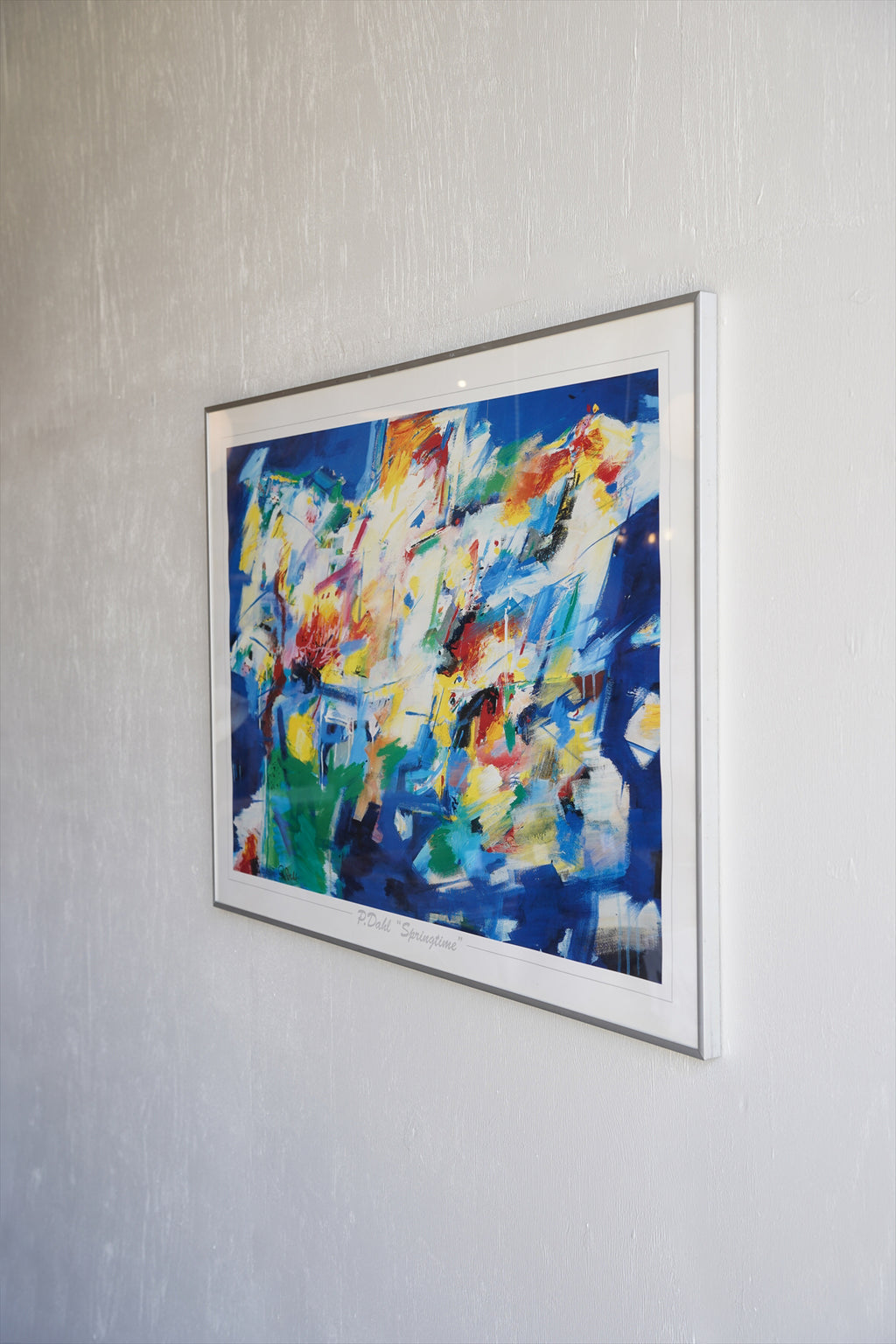 淡く優しい色調で構成された画面には、抽象的なフォルムの中にどこか有機的な要素が感じられ、まるで春の空気や光を視覚でとらえたような、穏やかな余韻を残します。