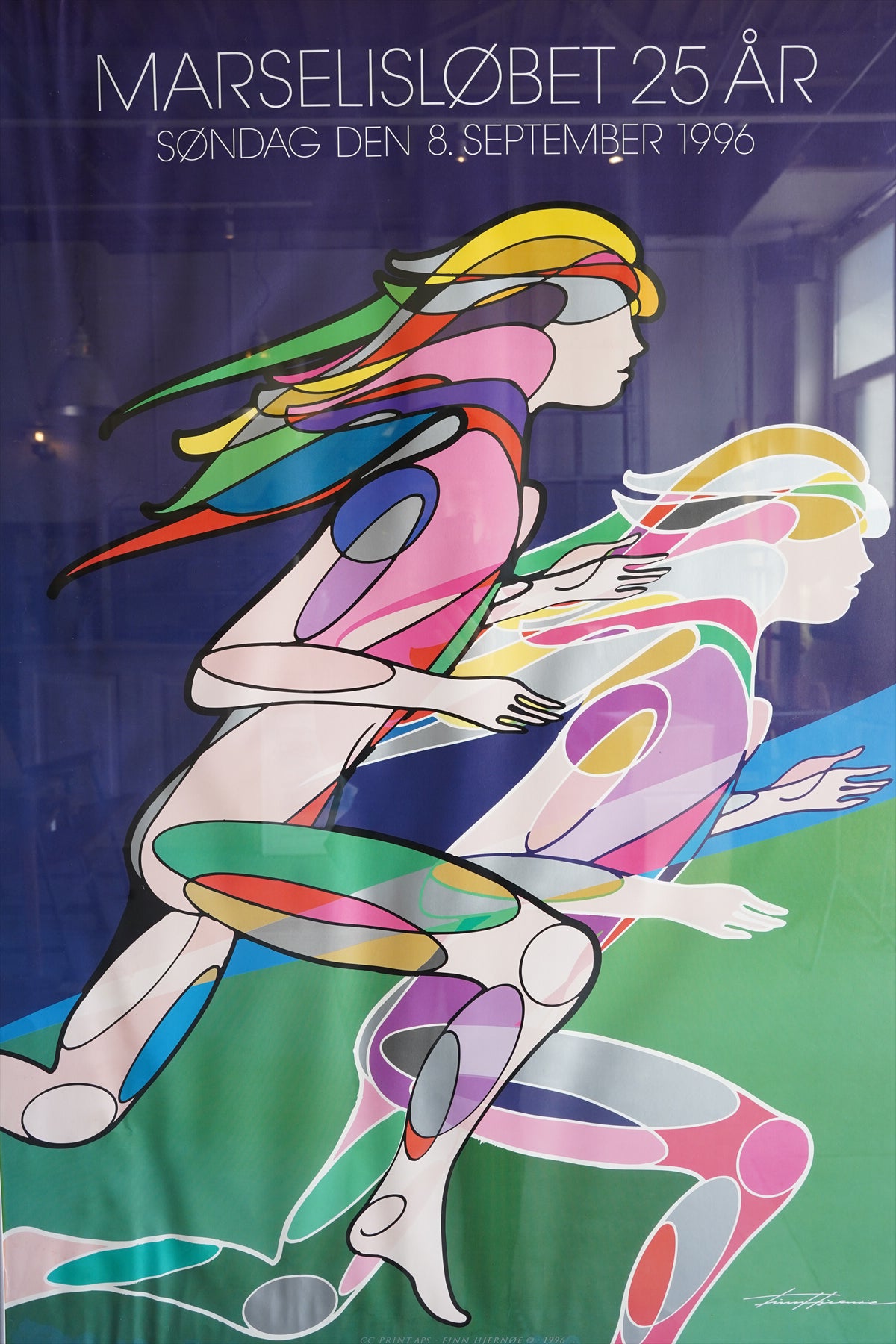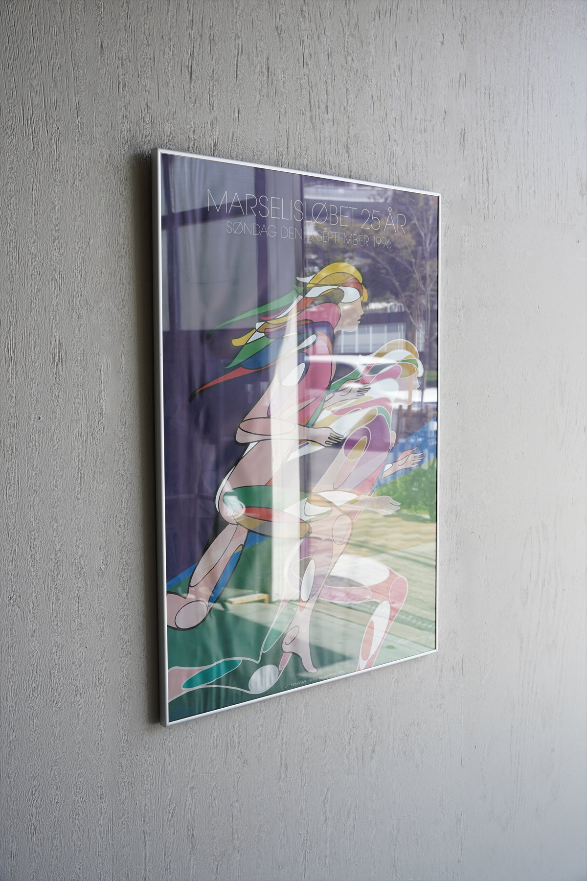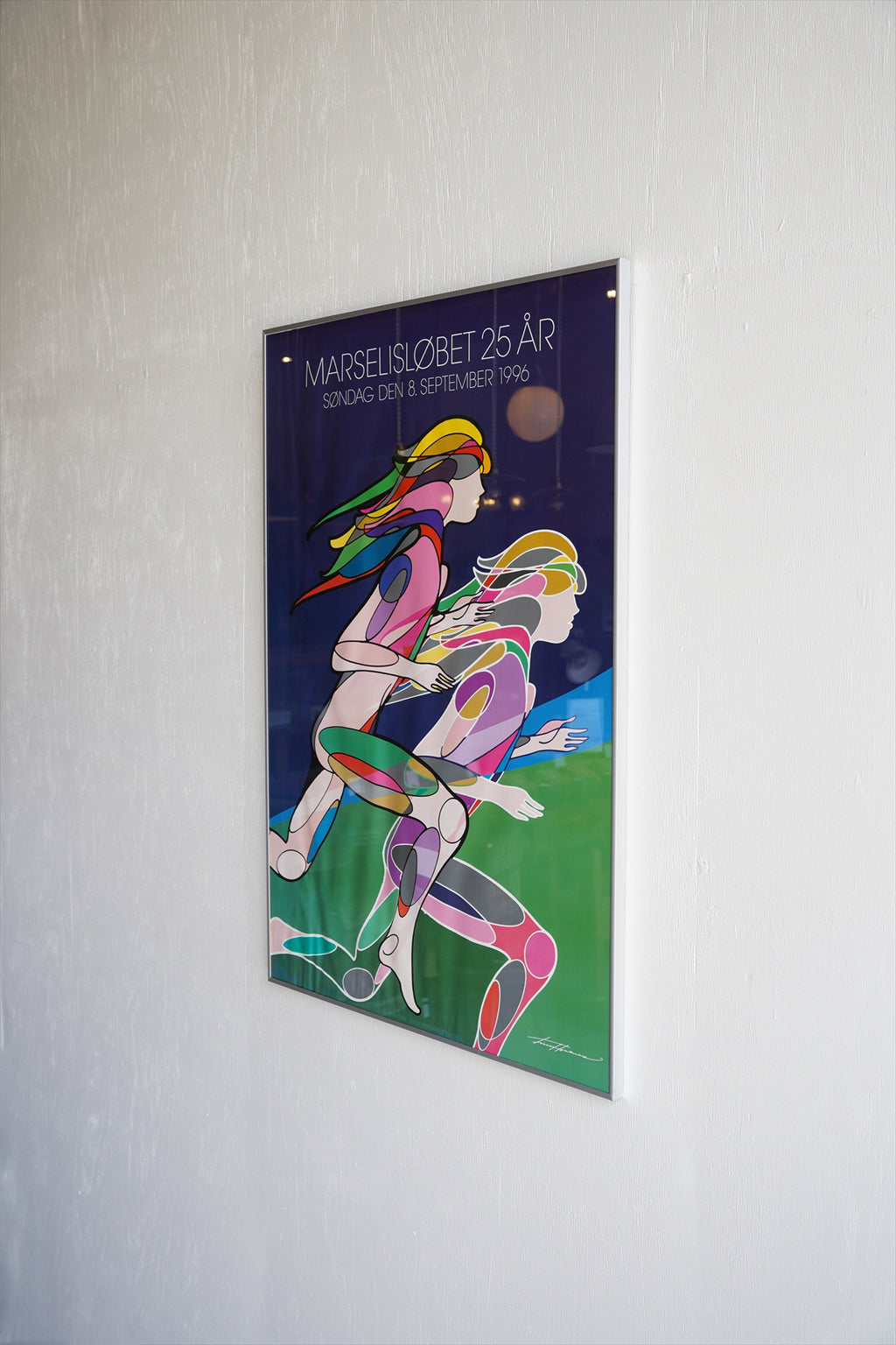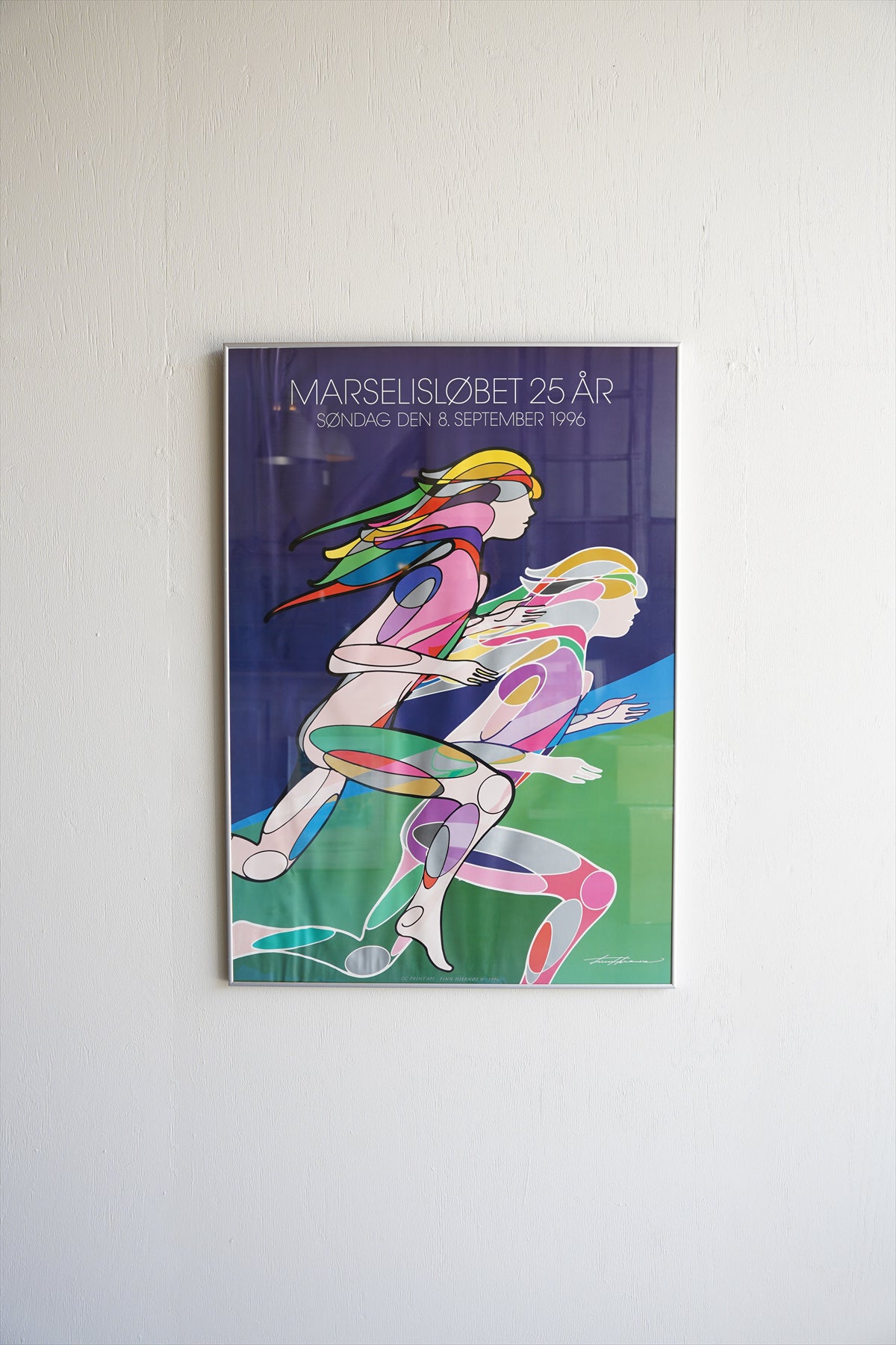 こちらは、「Marselisløbet 25 År」(マルセリスラン25周年)を記念して制作された、1996年9月8日開催のイベント公式ポスターです。デンマーク・オーフスで行われる家族参加型の市民マラソン「マルセリスラン」の節目を彩る、スポーツとデザインが融合した一枚となっています。