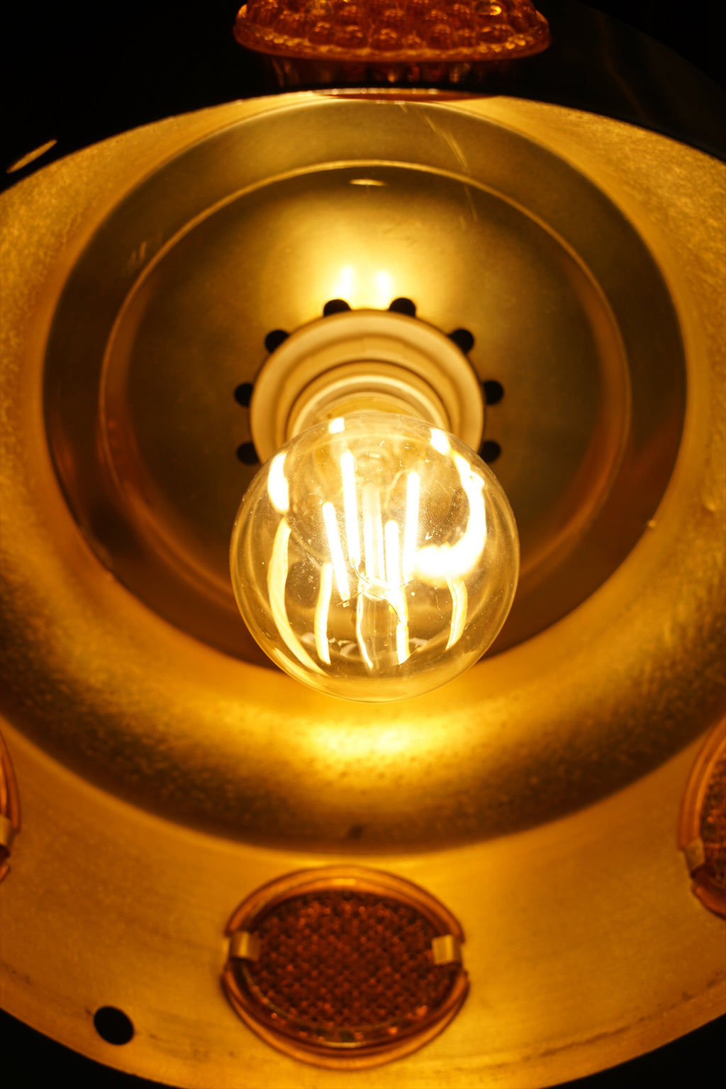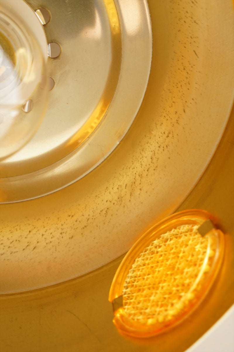 ランプが点灯すると、飴色のアクリルがオレンジ色に光って宝石のようにキラキラと輝き、小さ目のサイズですがとても存在感があります。
