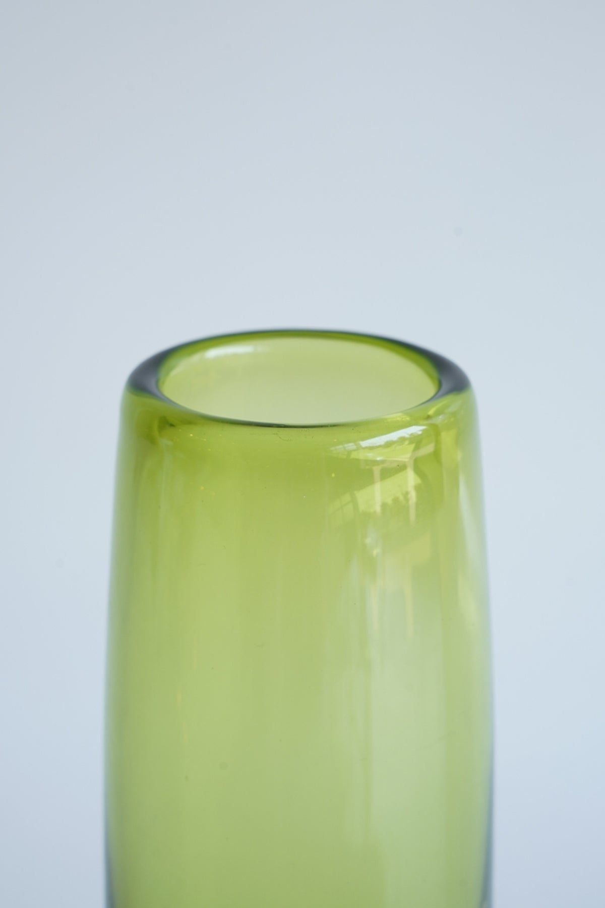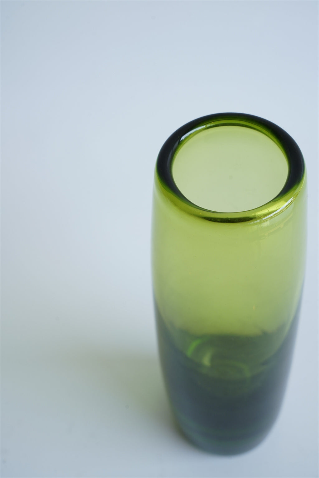 北欧ガラス工芸の巨匠、Per Lütken(ペル・リュッケン)が手がけた、デンマークHolmegaard(ホルムガード)社製のガラスフラワーベースです。1960年代頃制作されたとされ、グリーンのガラスが魅力の逸品です。