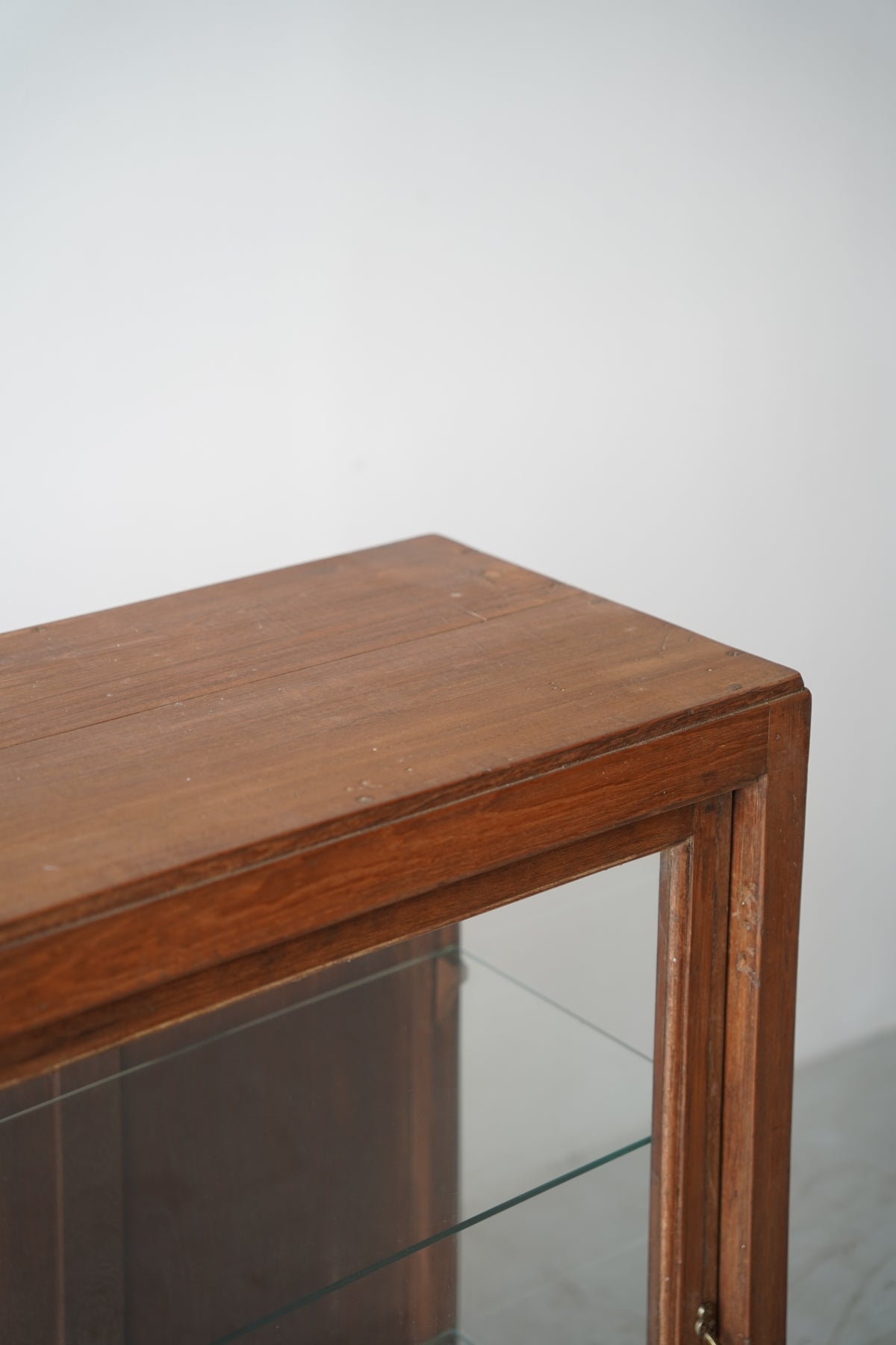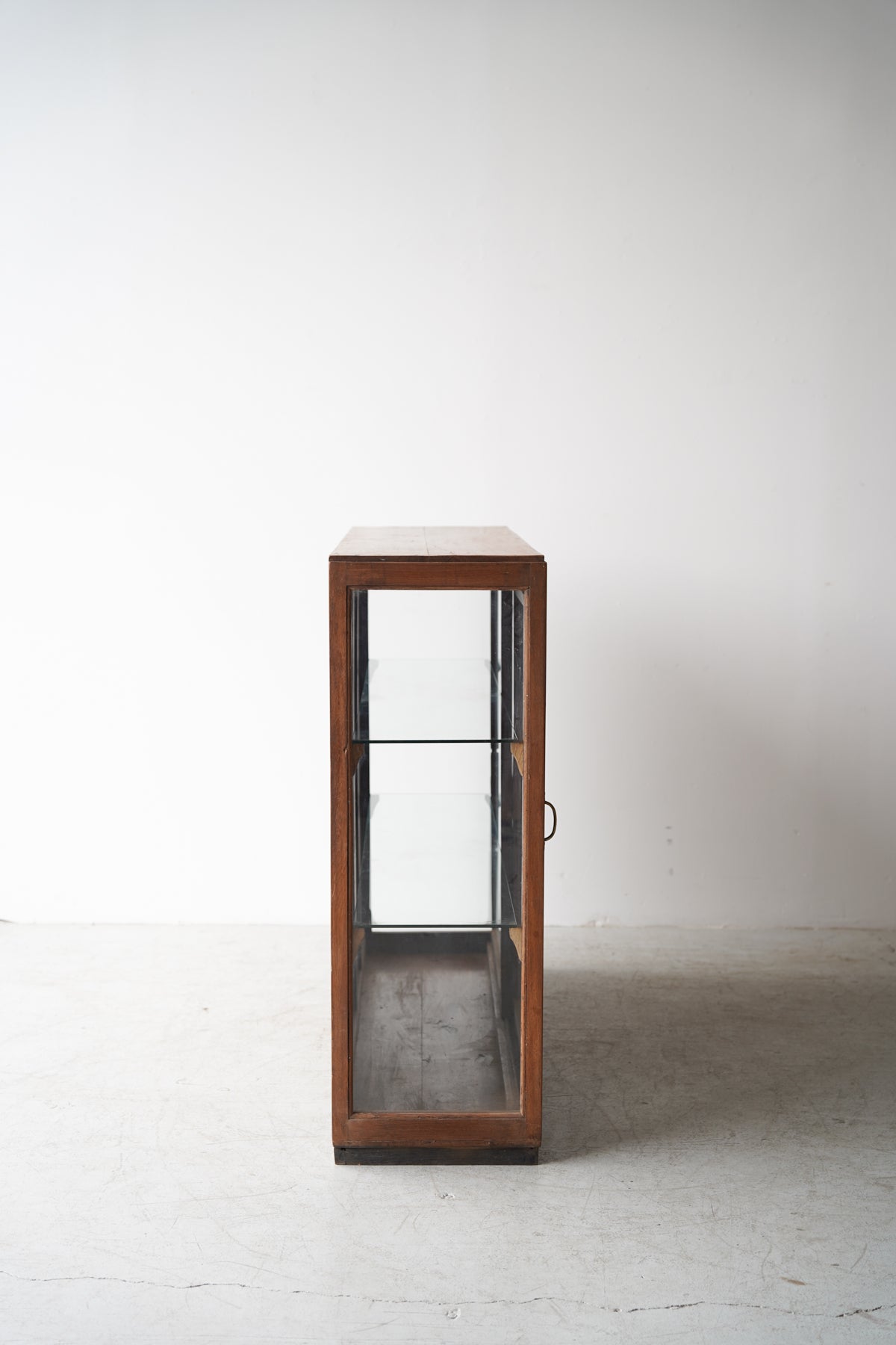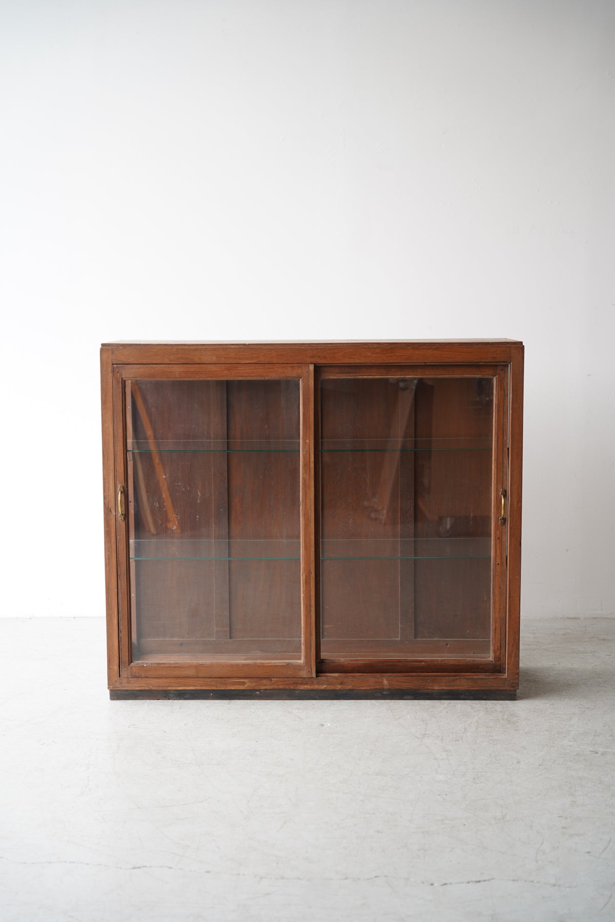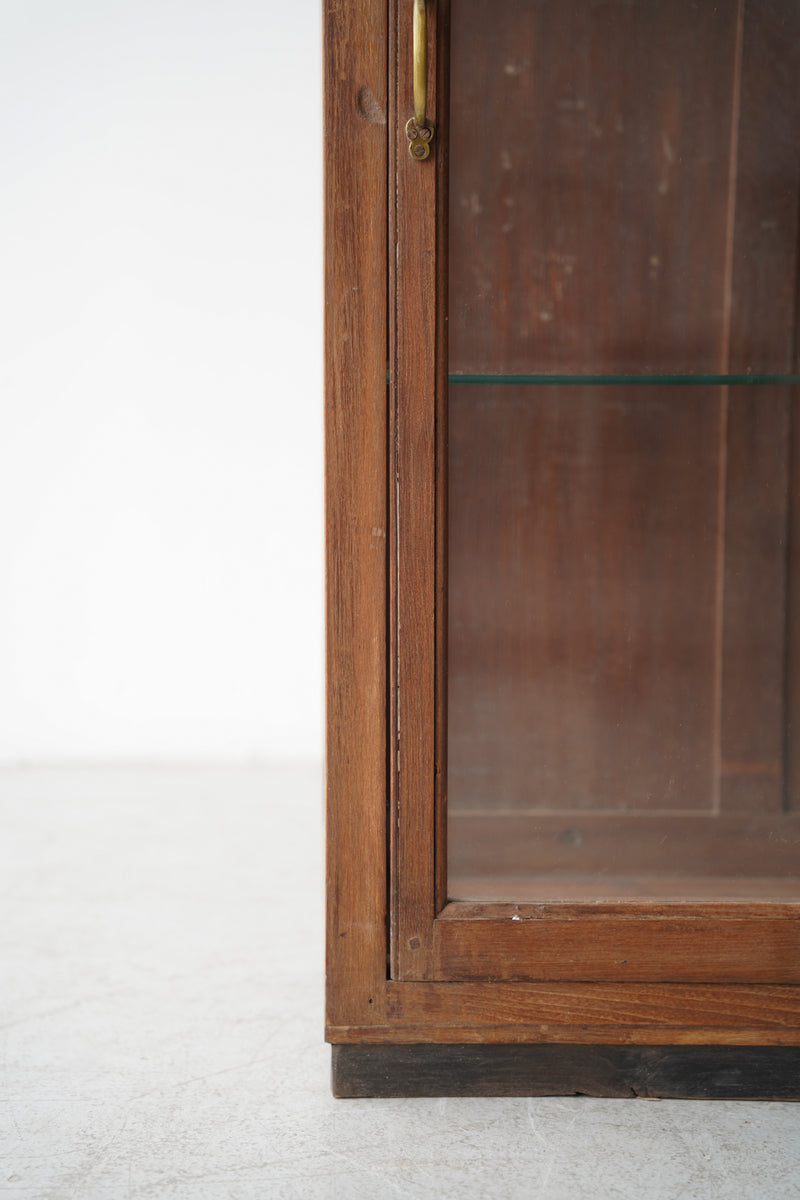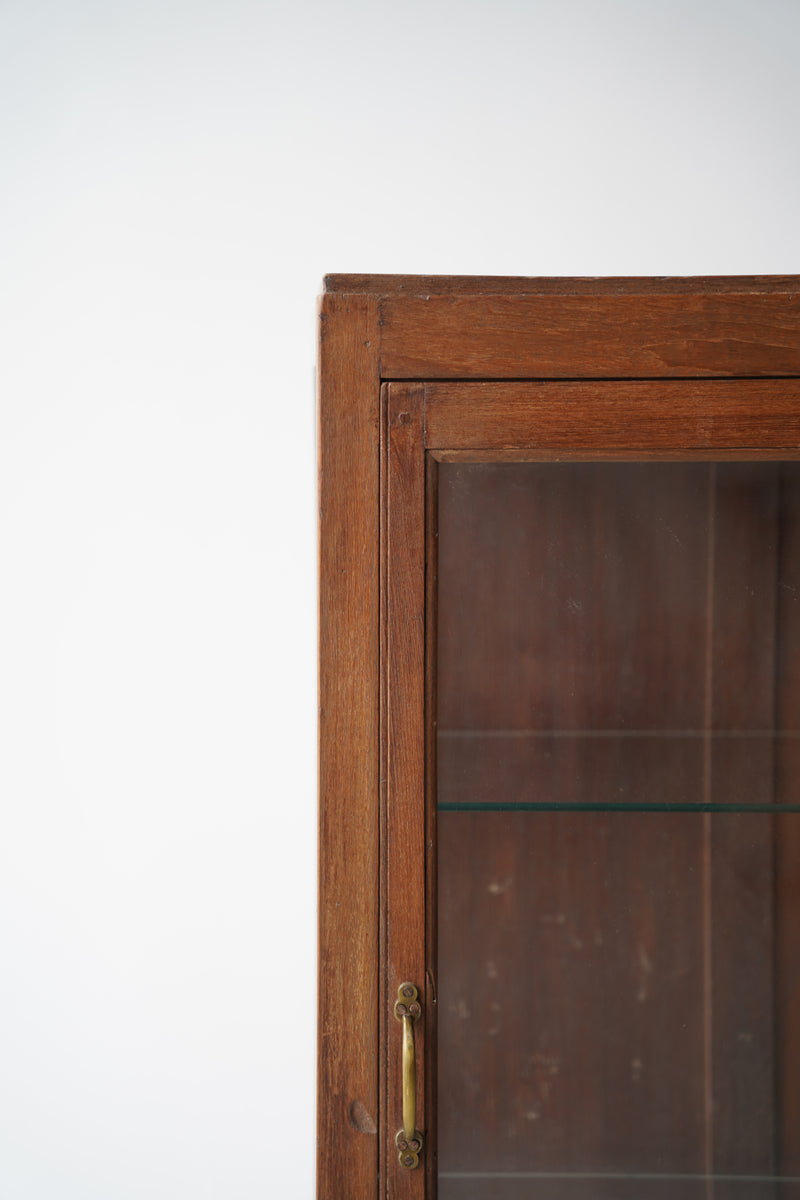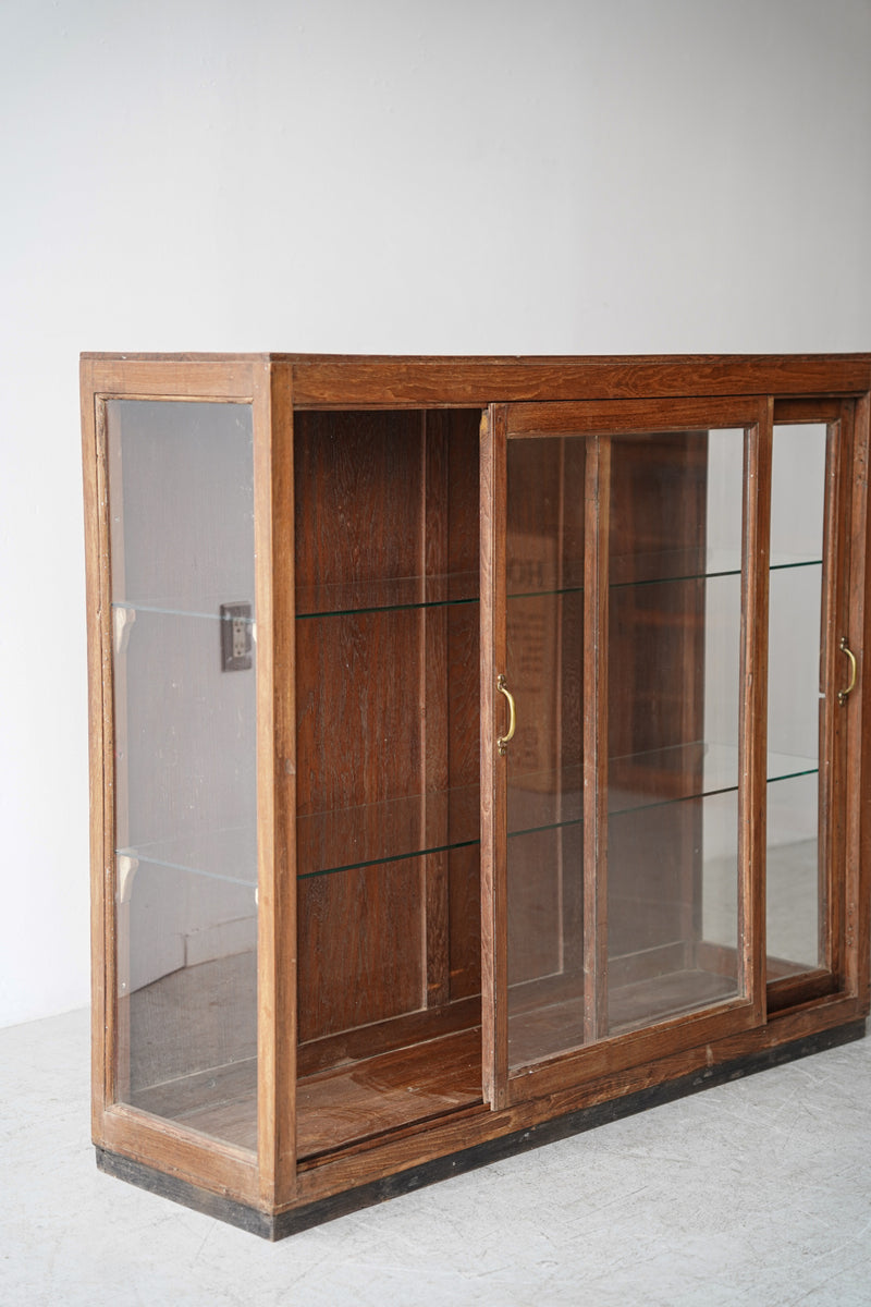 ワンポイントの真鍮製のゴールドの取手をスライドさせると、中には幅広なガラス天板が2枚ついており扉内を仕切りつつも圧迫感を感じさせず空間広くみせてくれます。
