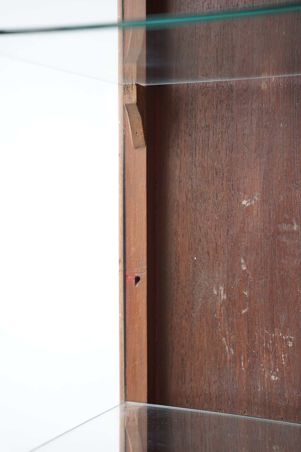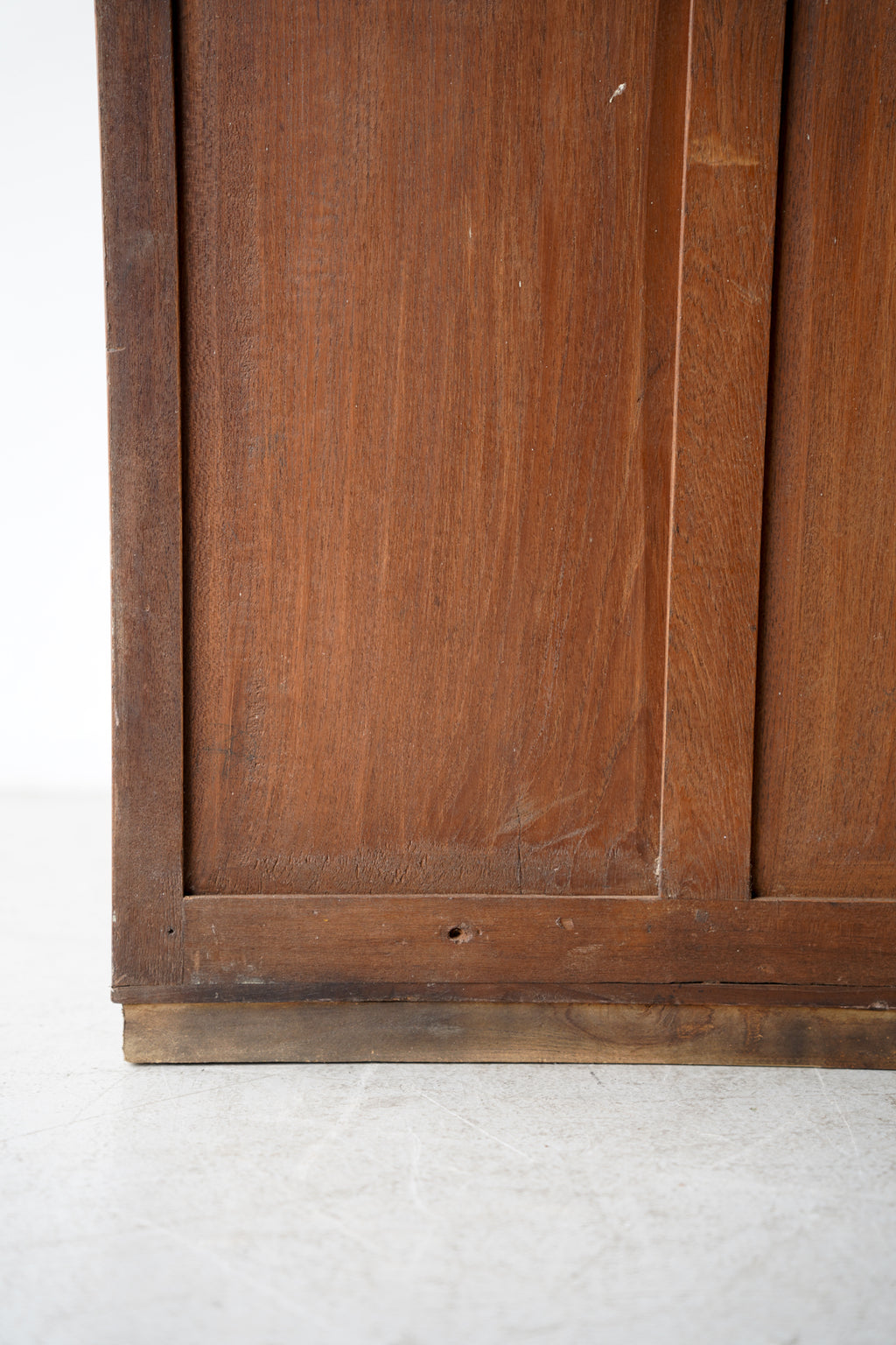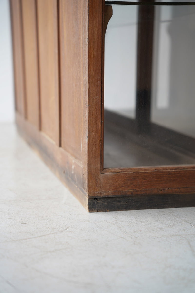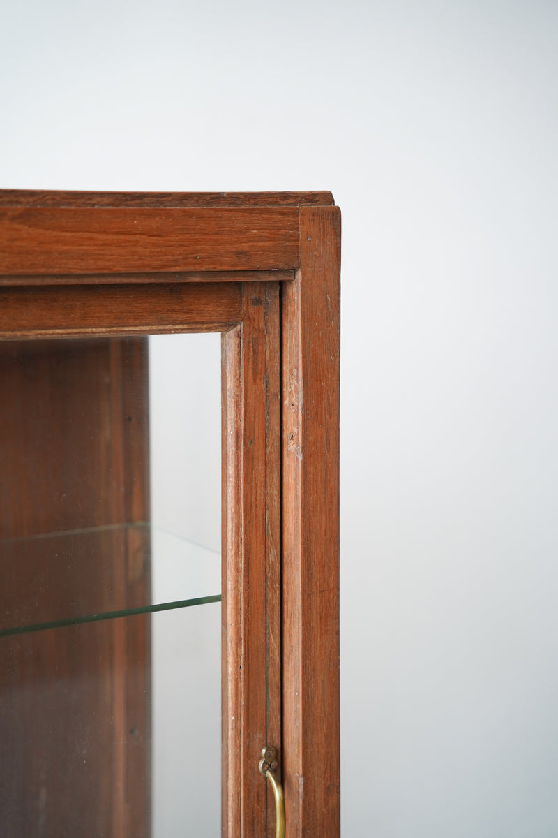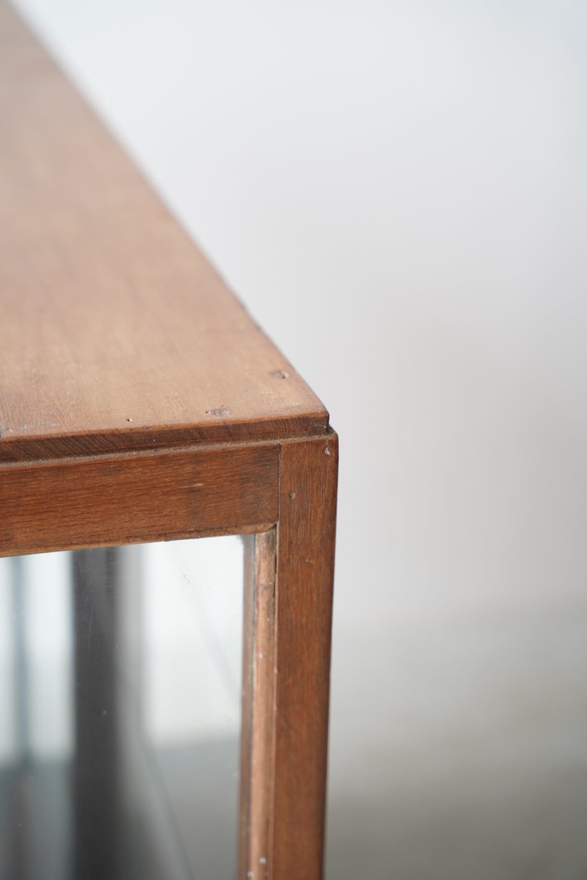 ワンポイントの真鍮製のゴールドの取手をスライドさせると、中には幅広なガラス天板が2枚ついており扉内を仕切りつつも圧迫感を感じさせず空間広くみせてくれます。