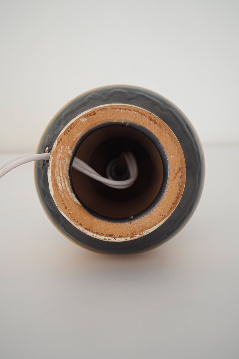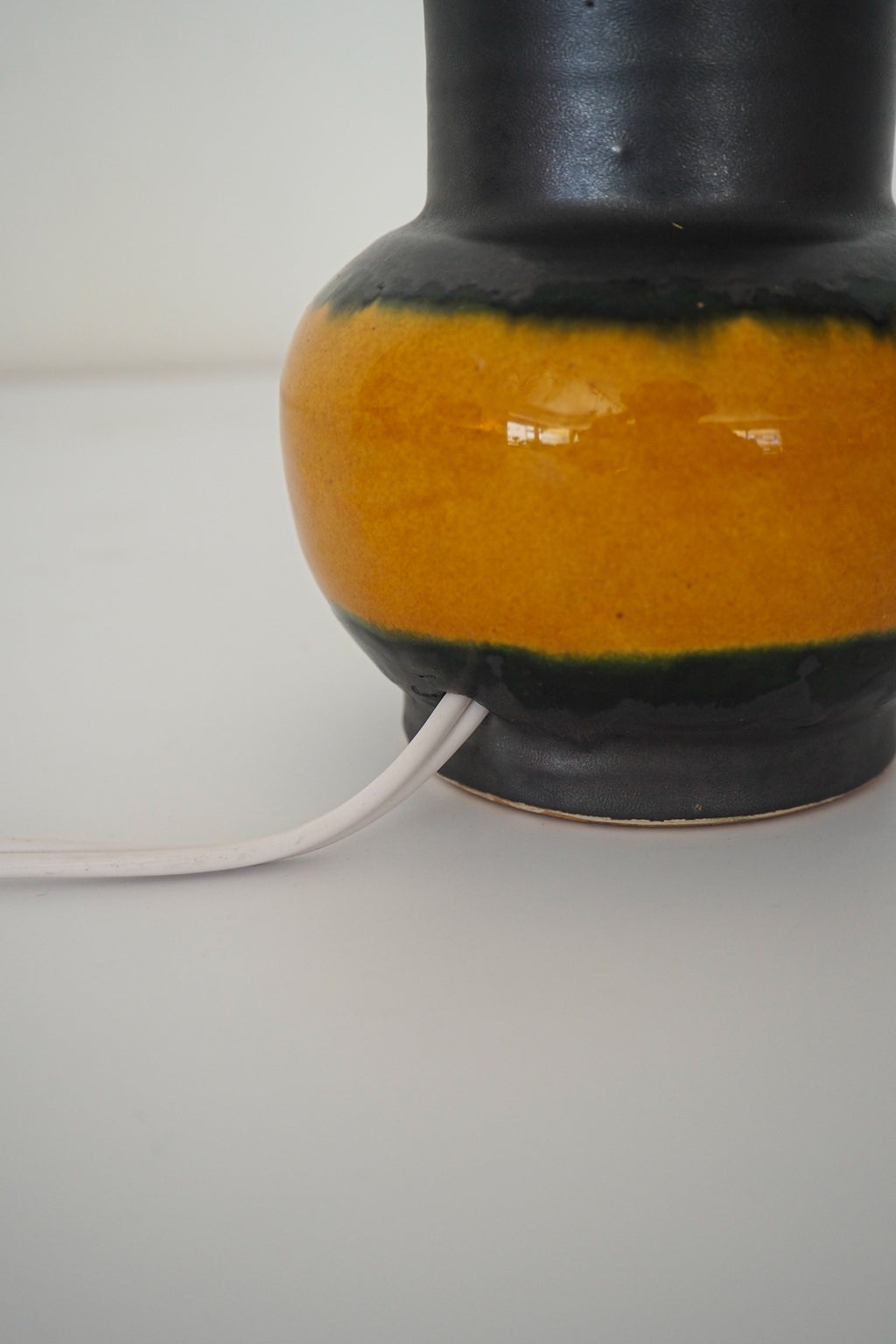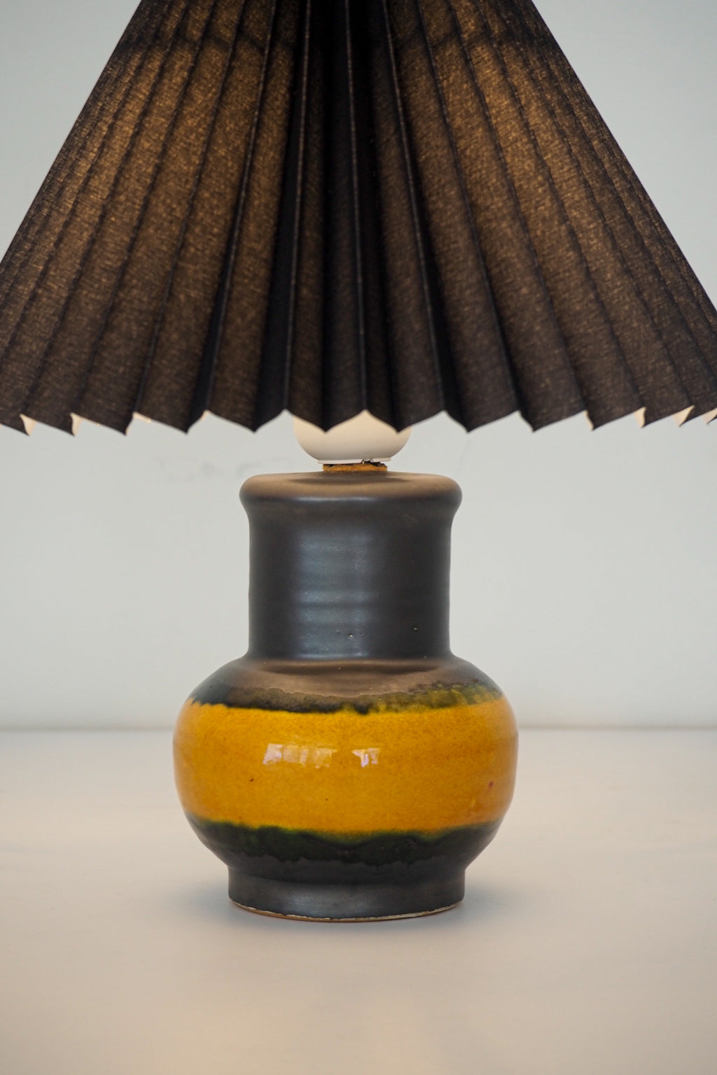 ブラックのプリーツシェードとイエローの組み合わせが目を引くテーブルランプ。