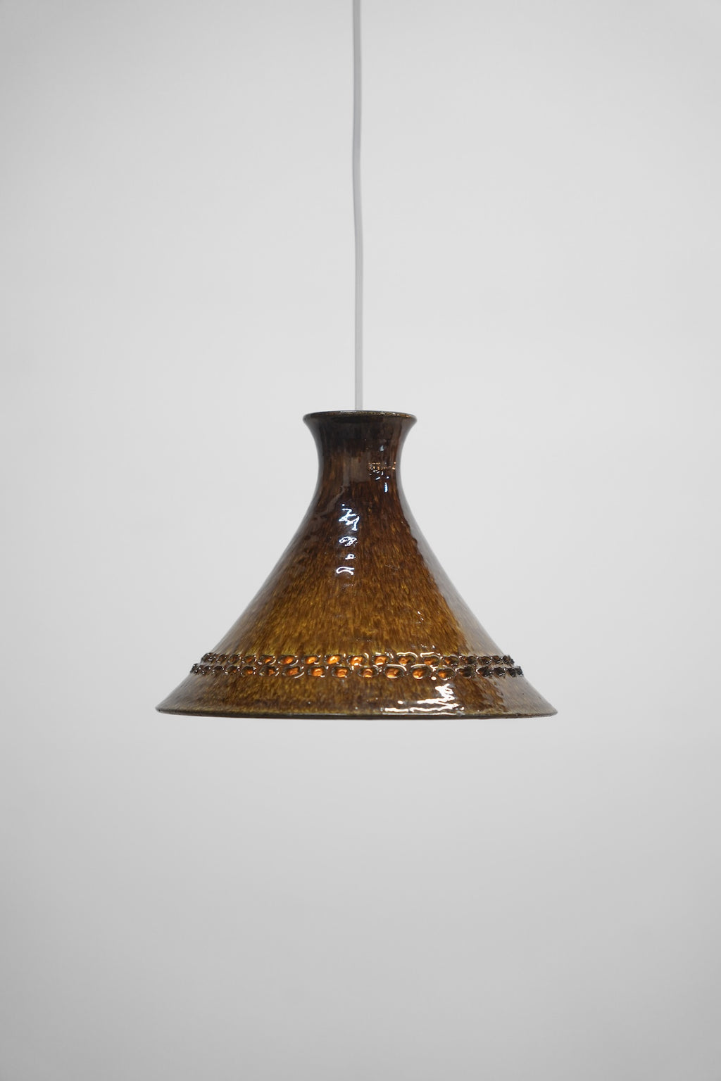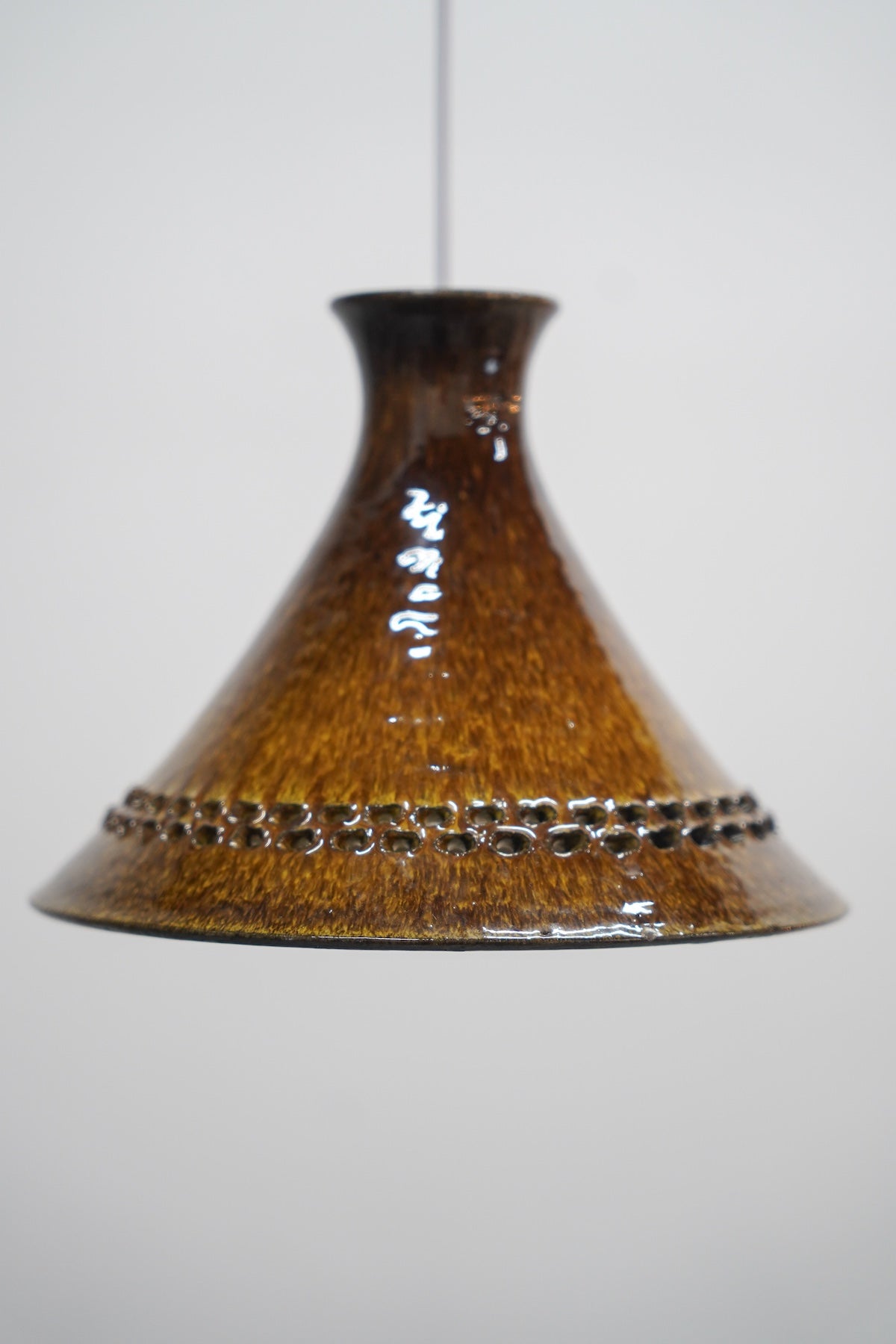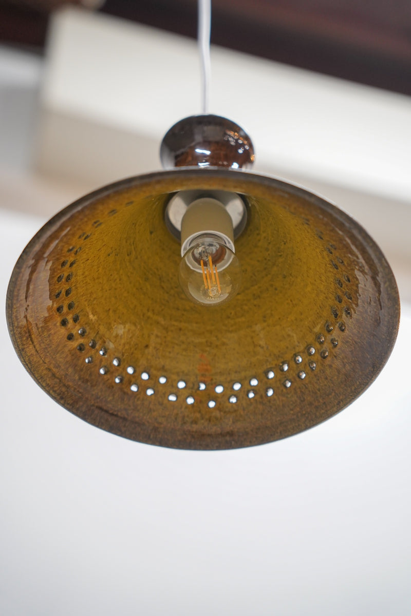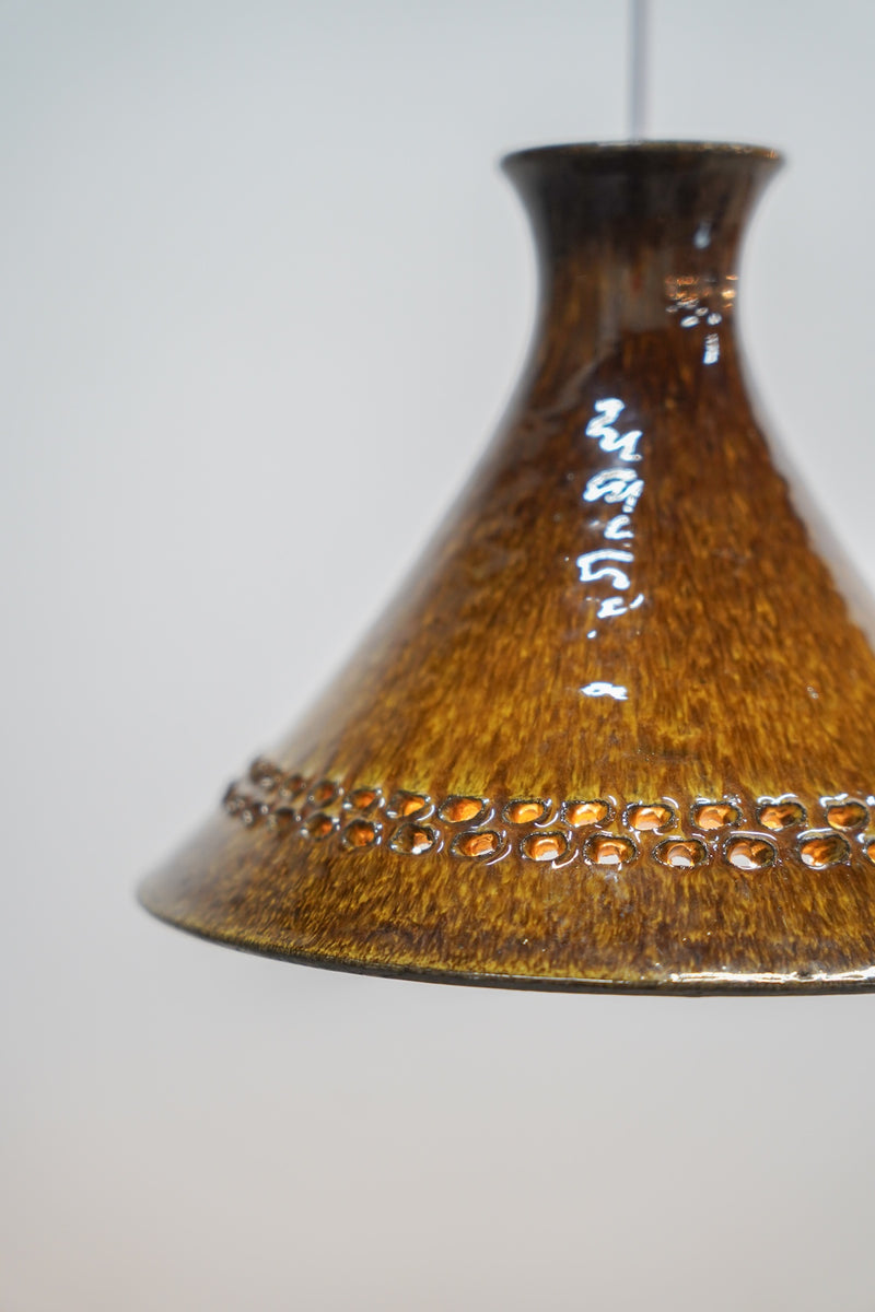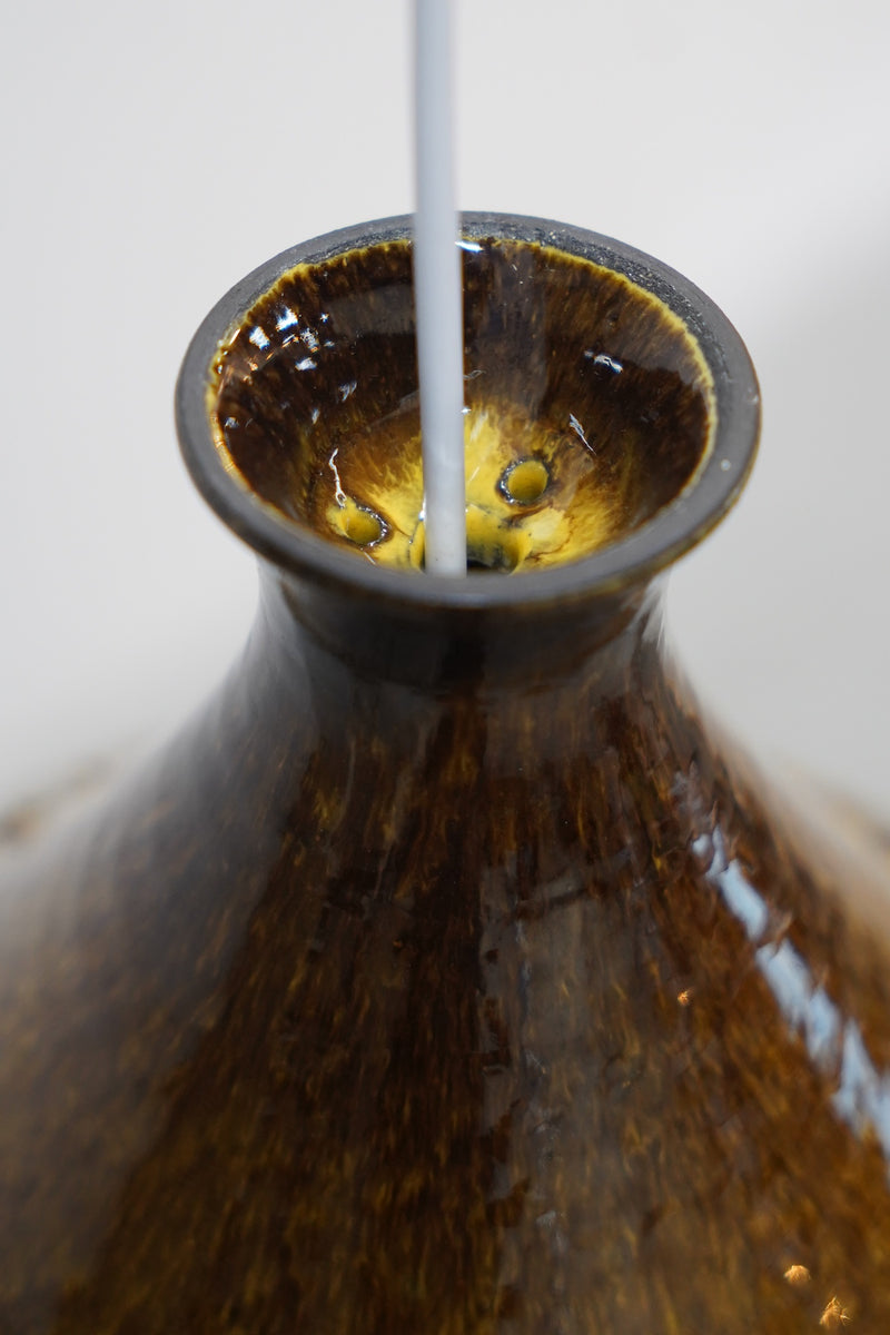 洗練されたフォルムと、深みのあるブラウンの釉薬が美しいセラミック製ペンダントランプです。