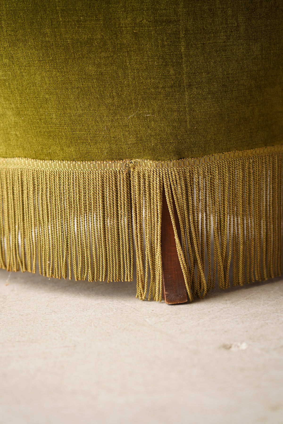 そして、この椅子の個性を際立たせているのが、本体の裾をぐるりと囲むようにあしらわれた長いフリンジ(房飾り)です。