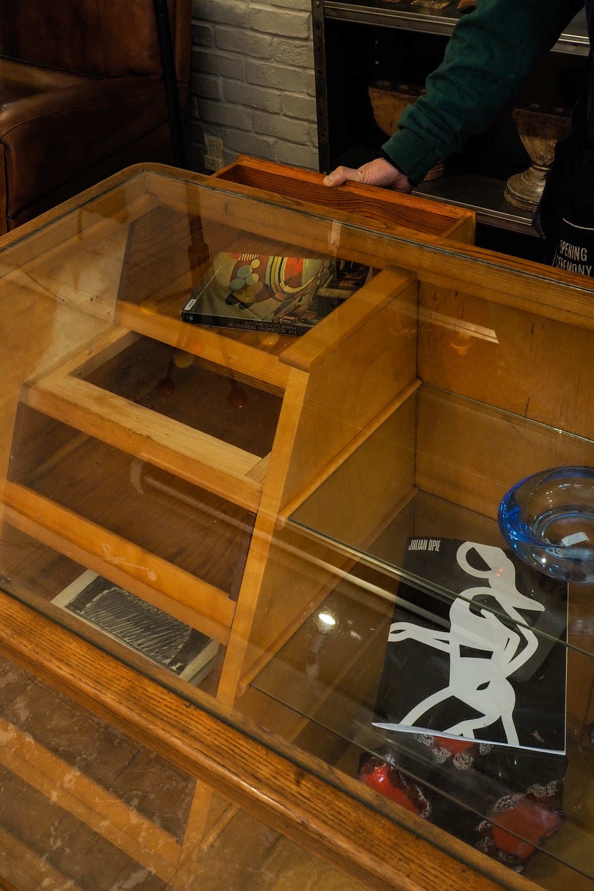 天板には厚みのあるガラスを使用し、ディスプレイ性と実用性を兼ね備えた一台です。