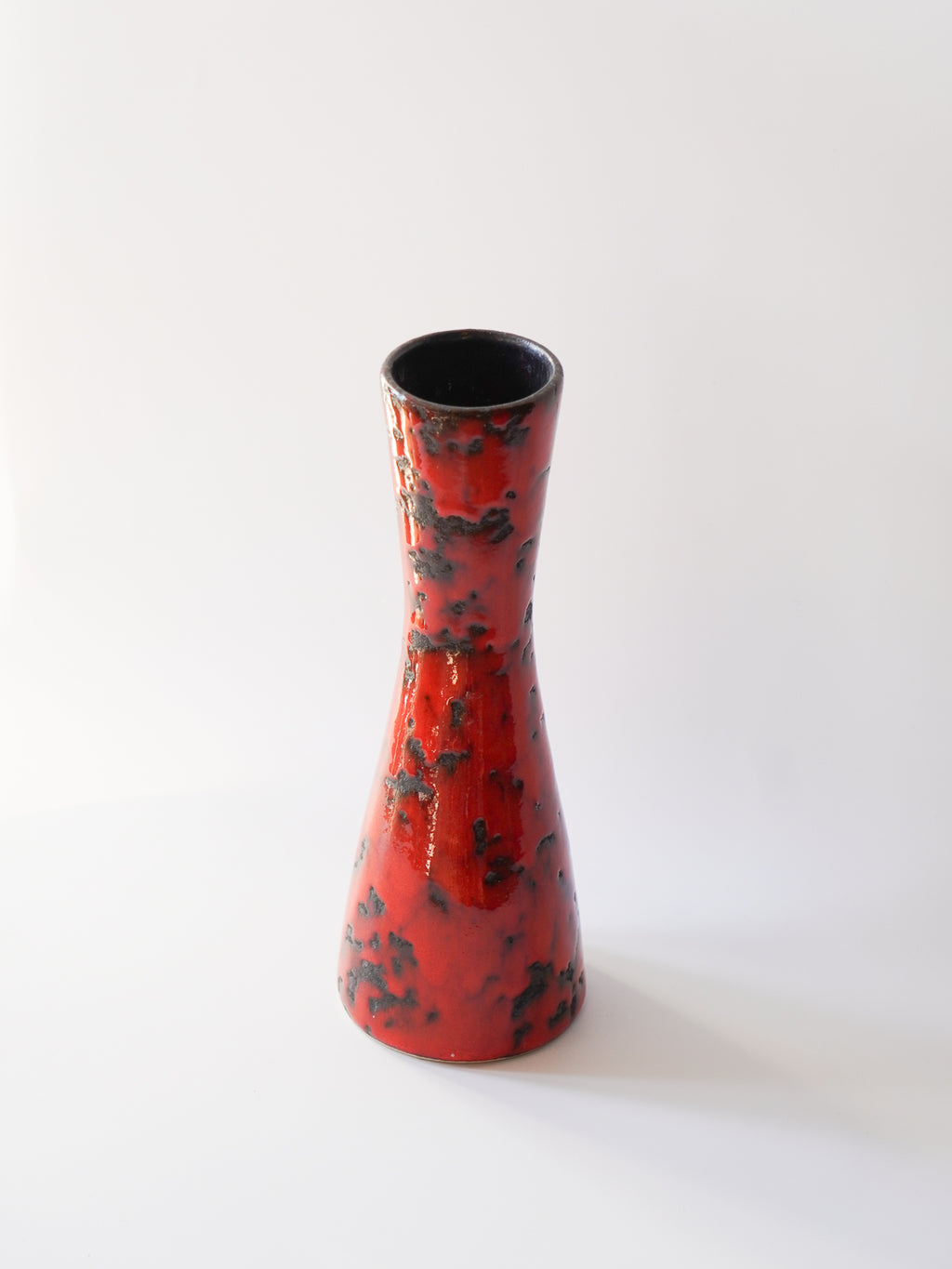 砂時計のようにくびれた、優雅でモダンなフォルムが目を引くヴィンテージフラワーベースです。