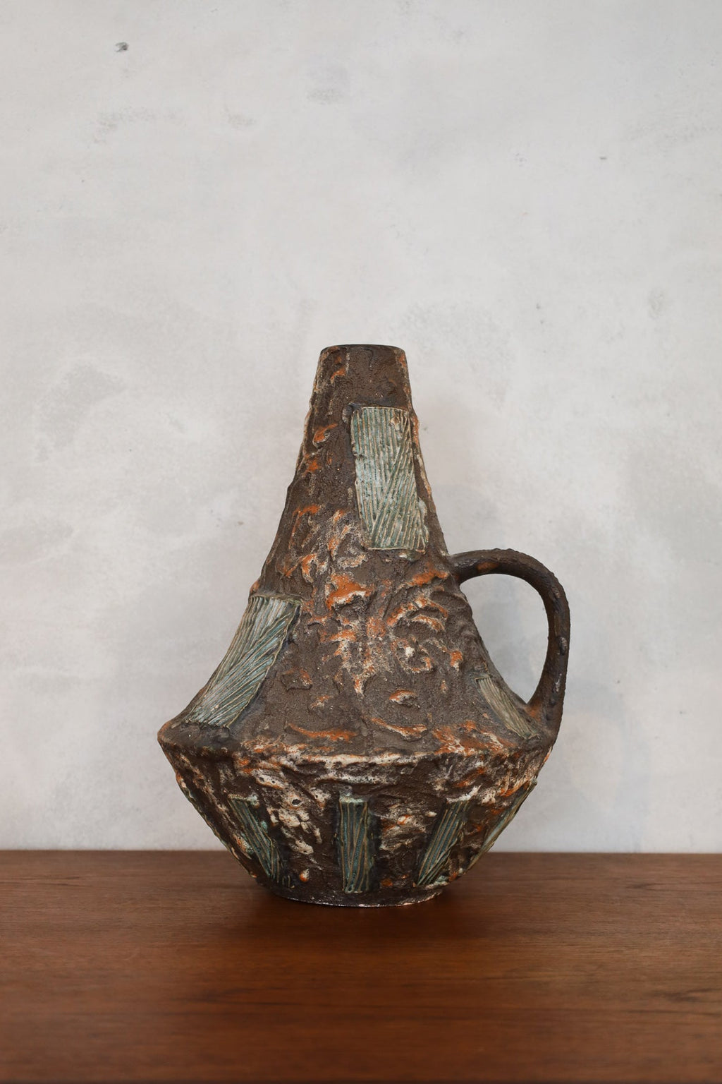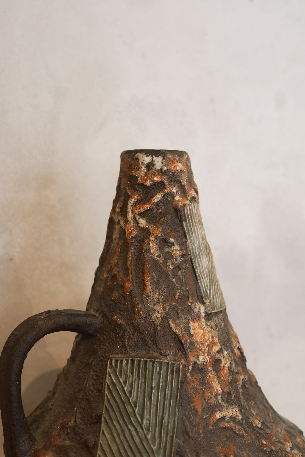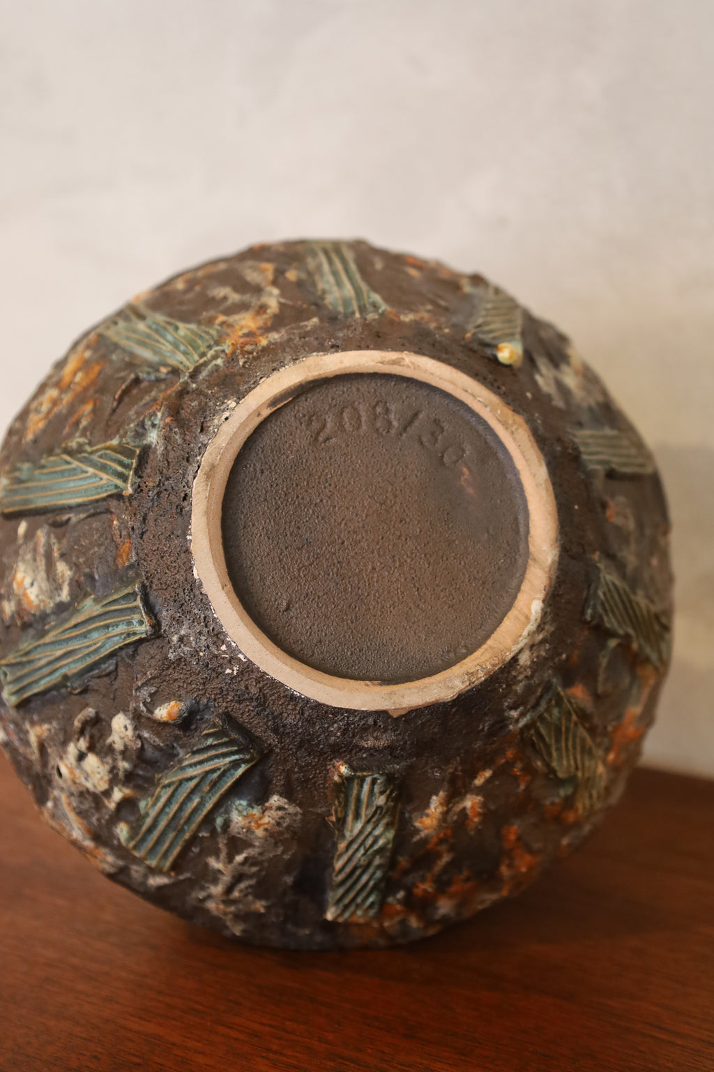 1960年代から1970年代にかけて西ドイツで栄えたヴィンテージ陶器メーカーの一つです。鮮やかな色とざらざらした質感を持つFat Lava様式の製品で知られています。同社の製品は、特に大胆なフォルムや、溶岩のようなテクスチャと光沢のある釉薬を組み合わせたアバンギャルドなデザインが特徴です。現在はコレクターズアイテムとして人気があります。