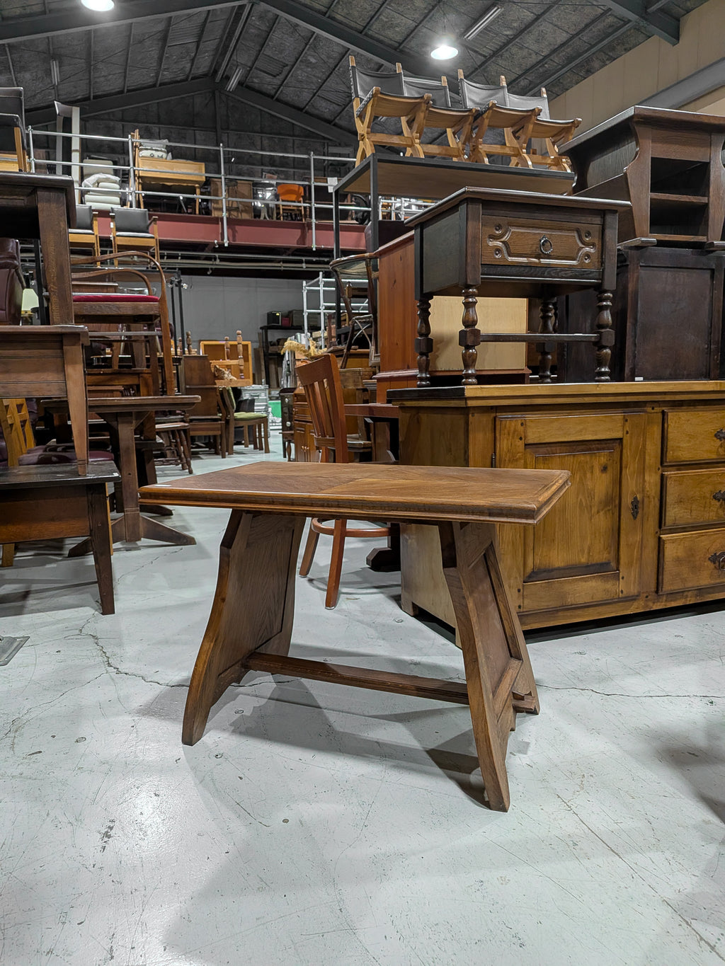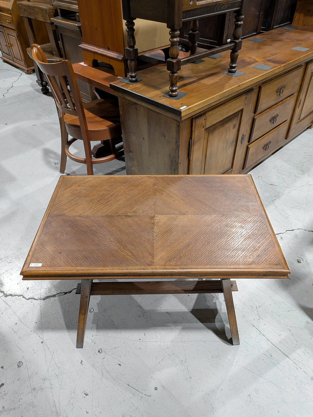 天板の幾何学的な木目の意匠が、ひときわ目を引くヴィンテージテーブルです。