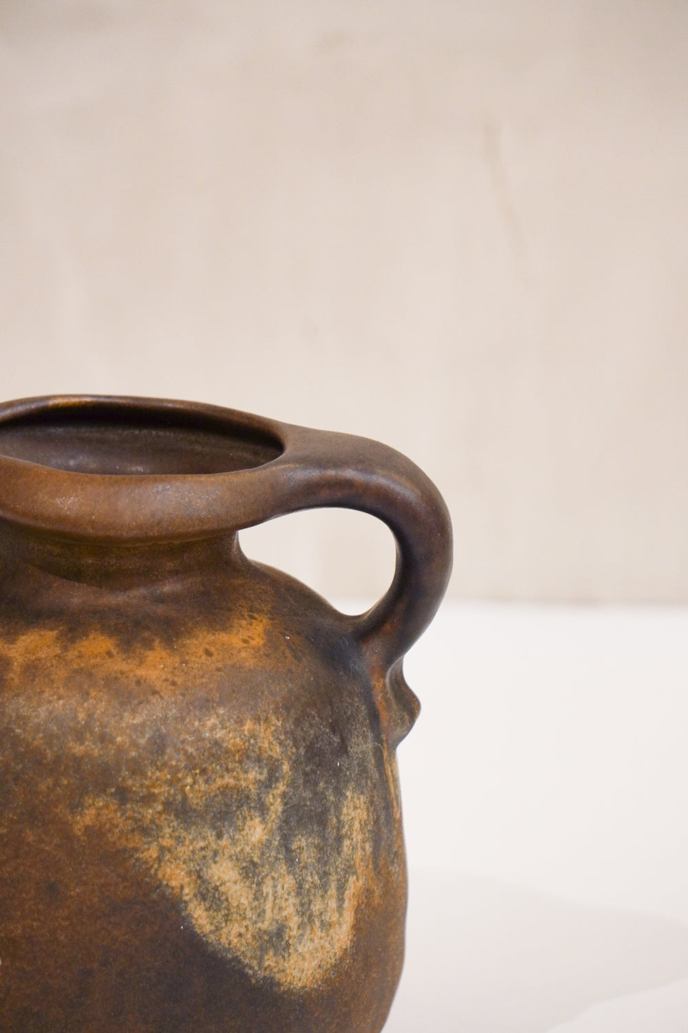 厚みのある土肌に、マットなダークブラウンの釉薬を施したヴィンテージジャグ。