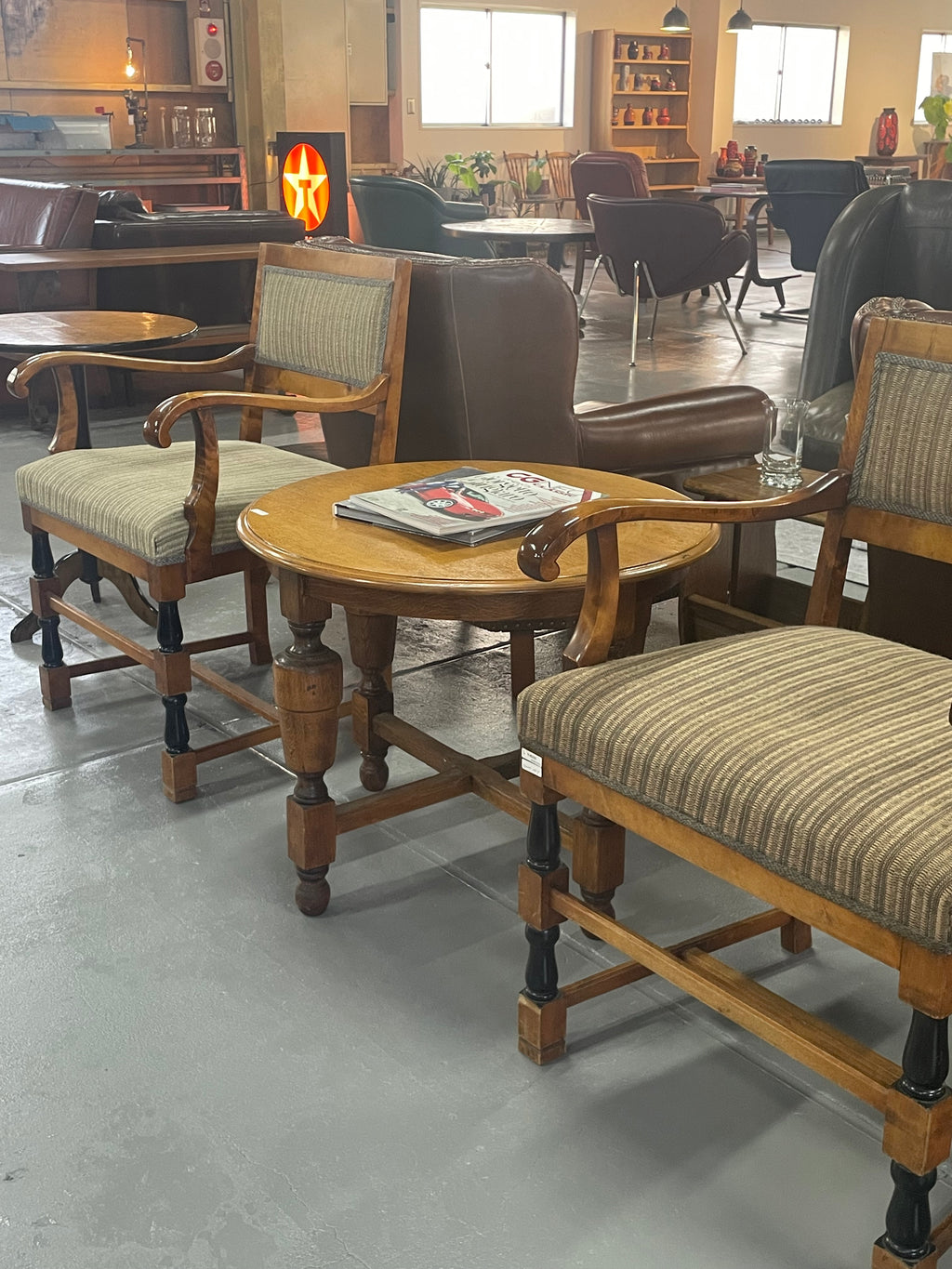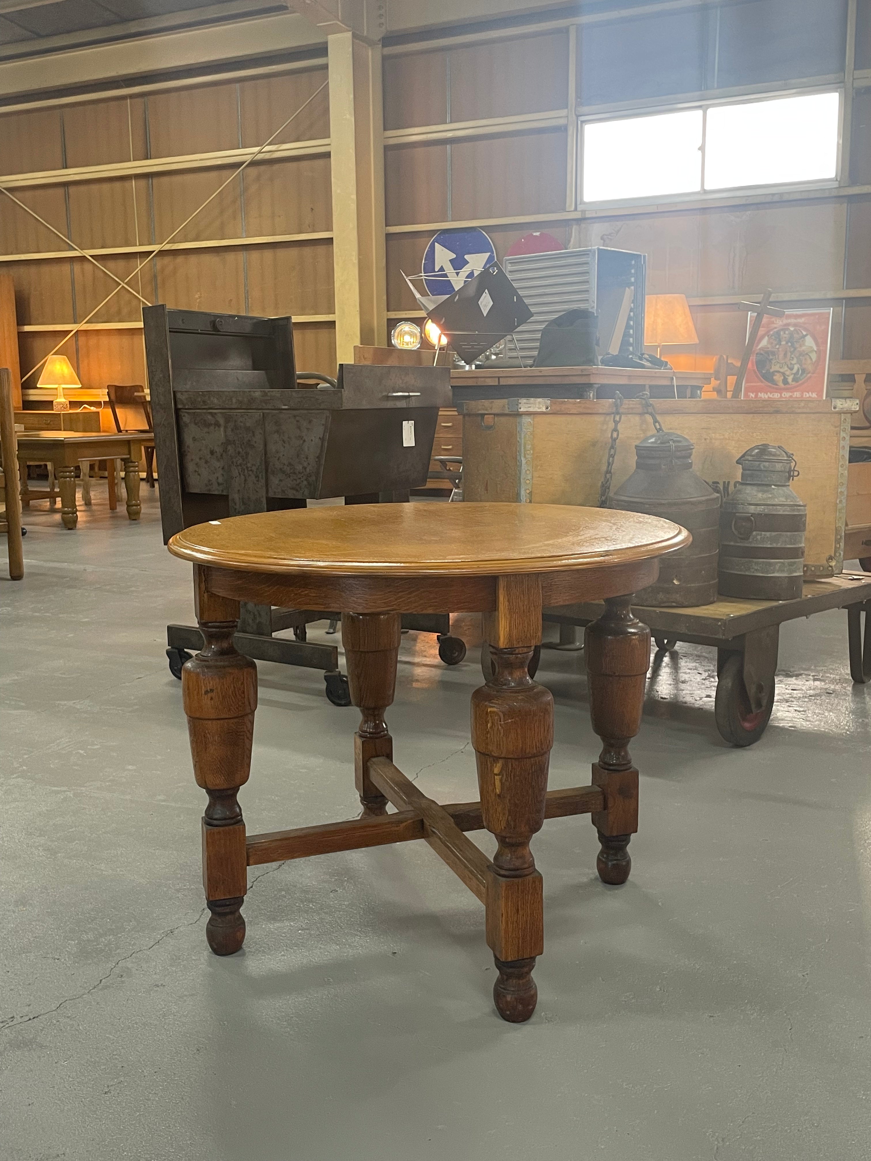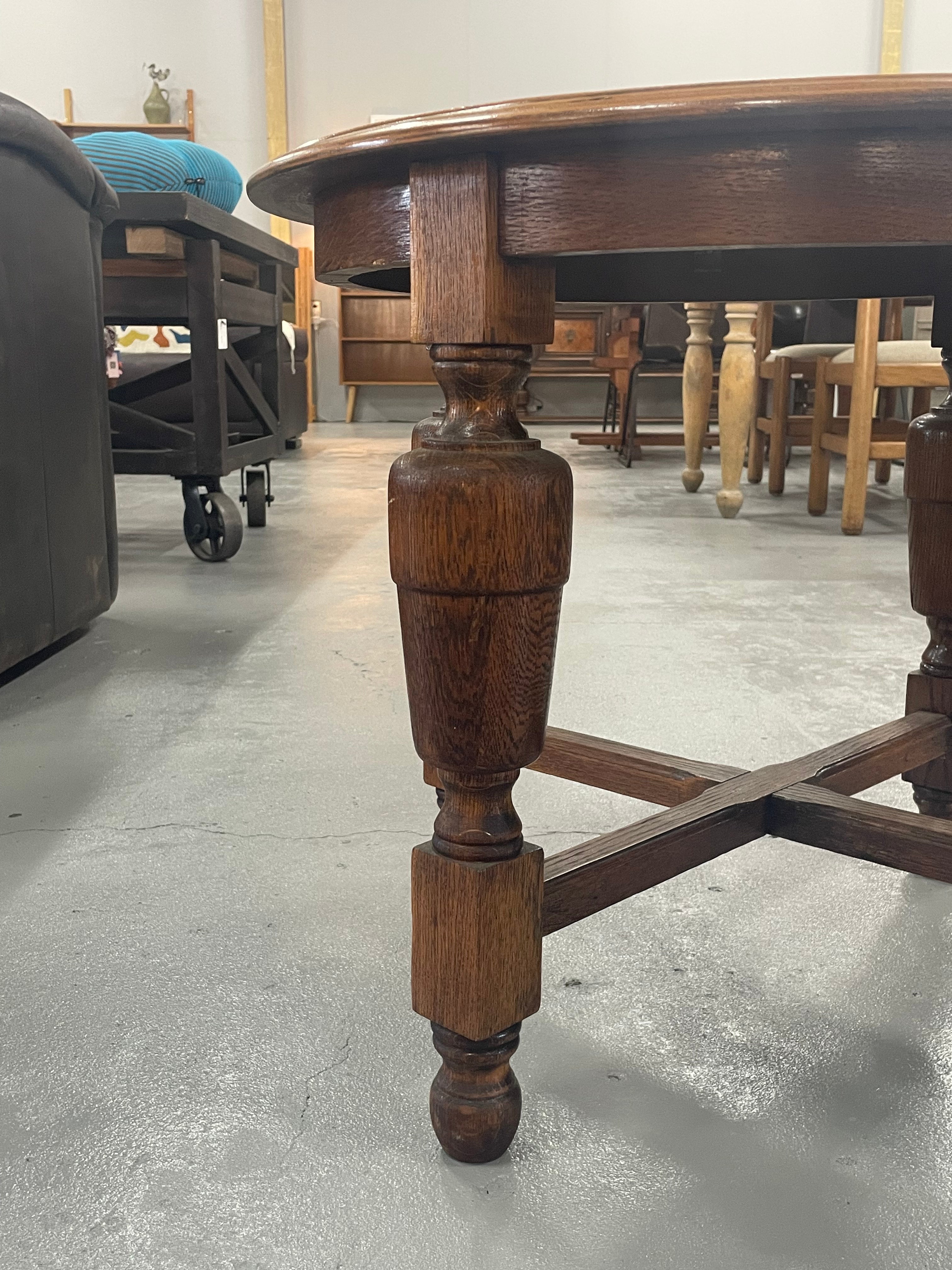 クラシカルで重厚なデザインが魅力のヴィンテージラウンドテーブル。