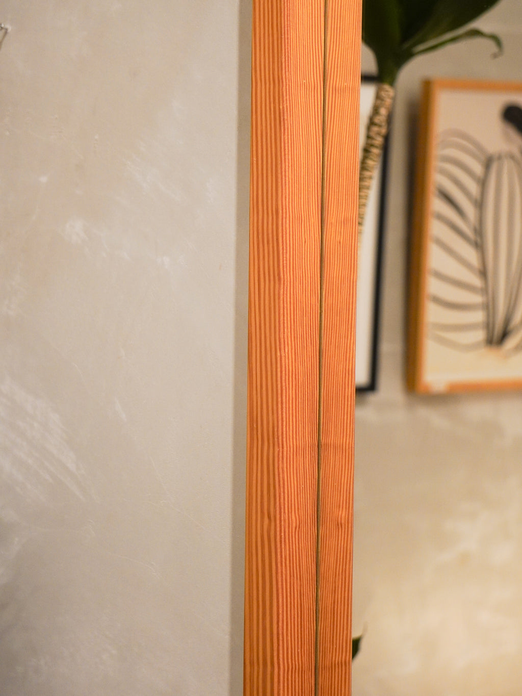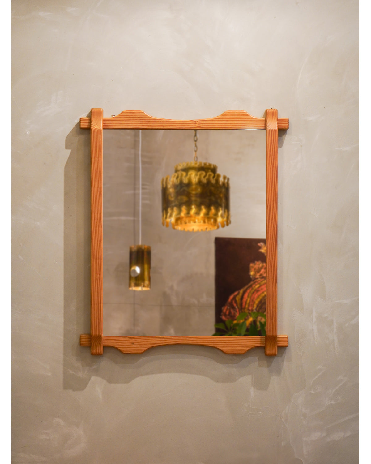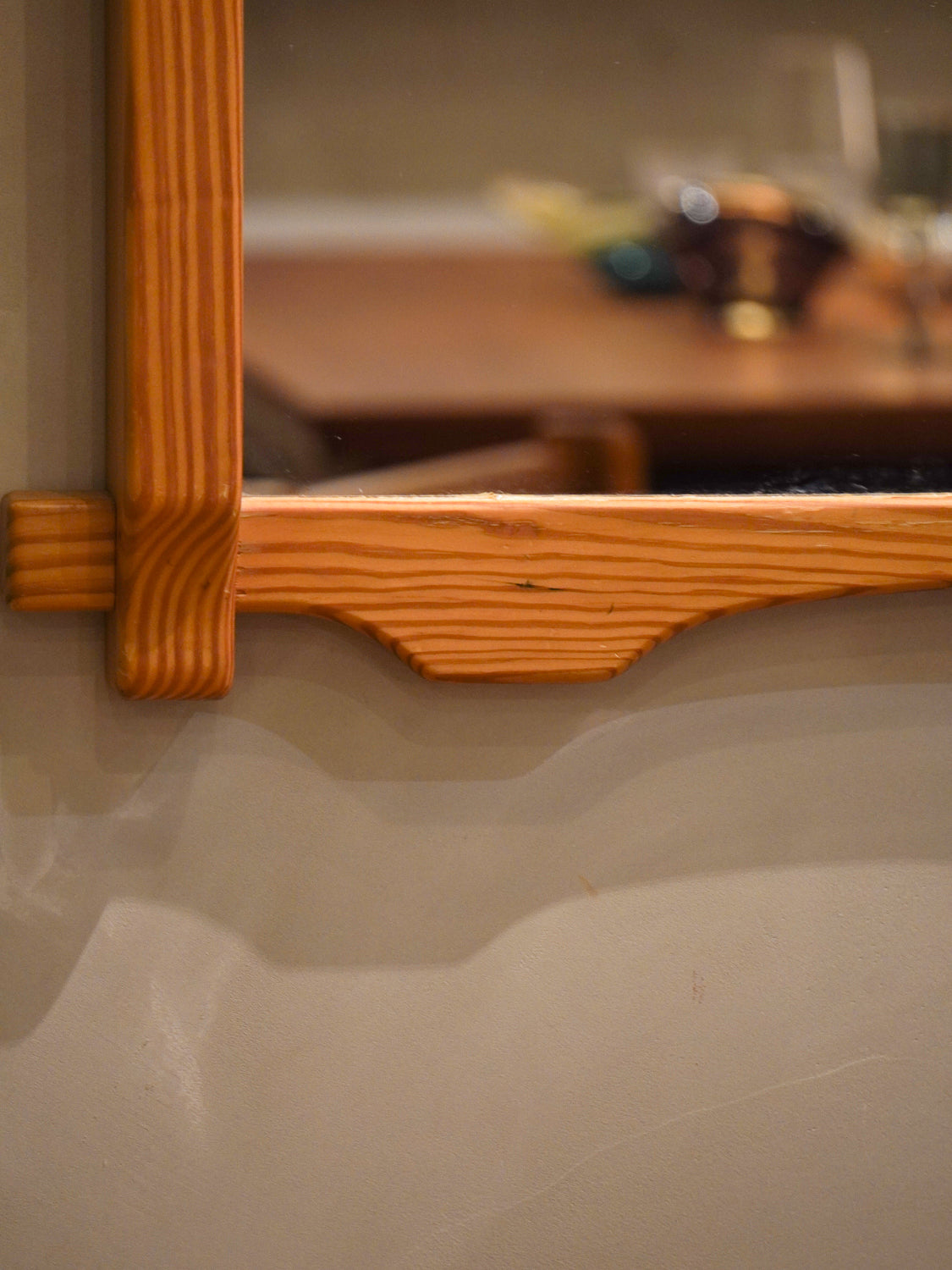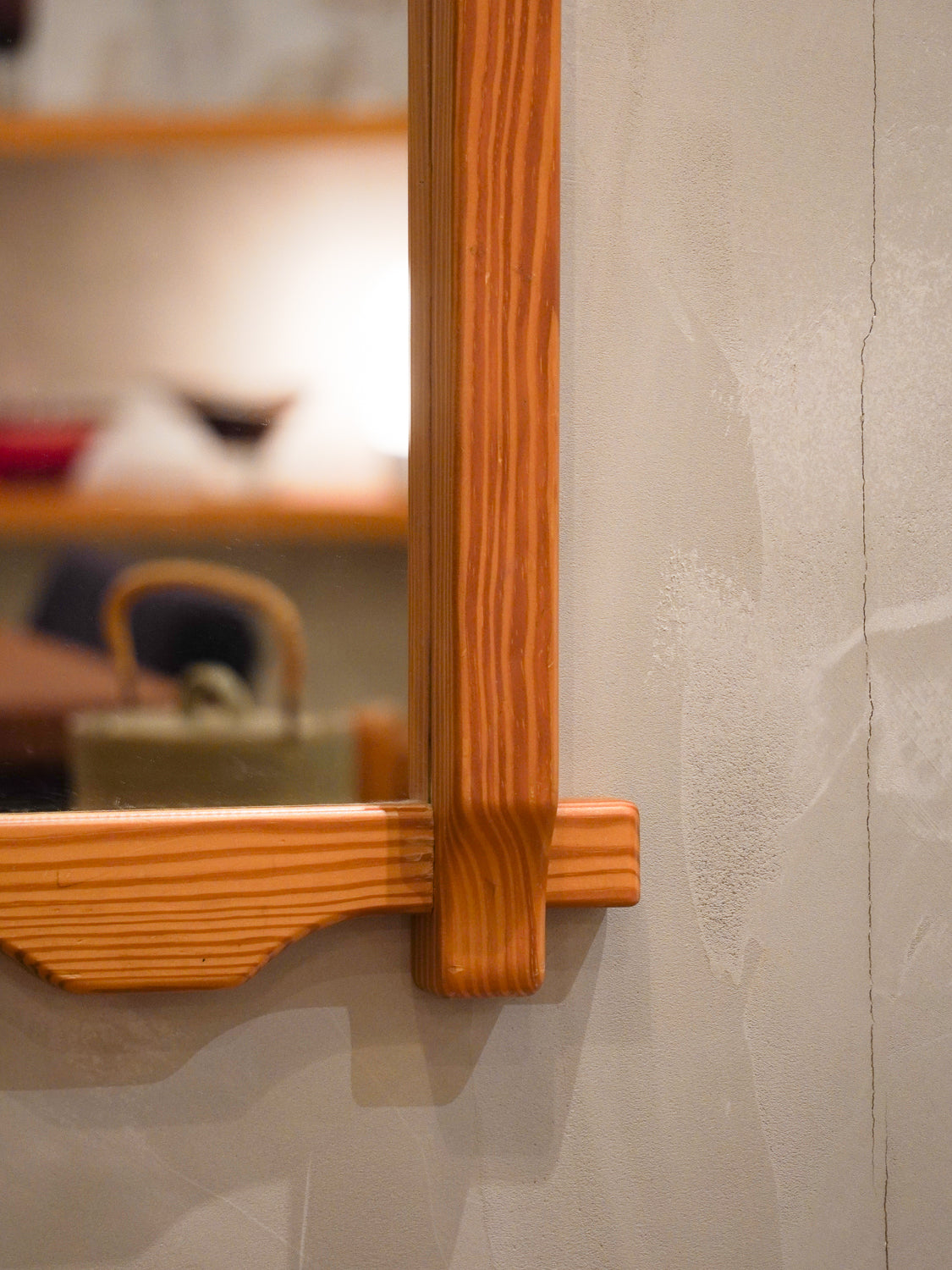 鮮やかで明るい木目が特徴のパインウッドを贅沢に使用した、個性的なデザインの木製フレームミラーです。パイン材特有の温かい色合いと柔らかな質感が、空間に明るく心地よい雰囲気をもたらします。