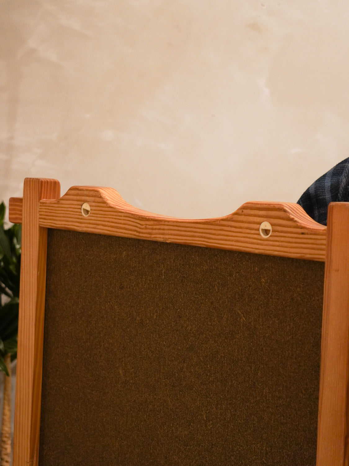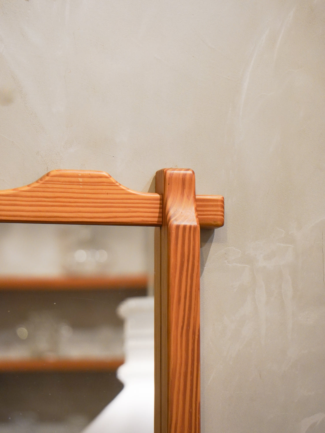 サイズは縦長で、ドレッサーの上や玄関の壁面に掛けるのに適しています。パイン材の家具や、ホワイトペイントの家具と非常に相性が良く、ナチュラルで素朴なカントリースタイルはもちろん、素朴なヴィンテージミックスのインテリアにも温かみのあるアクセントとして活躍します。