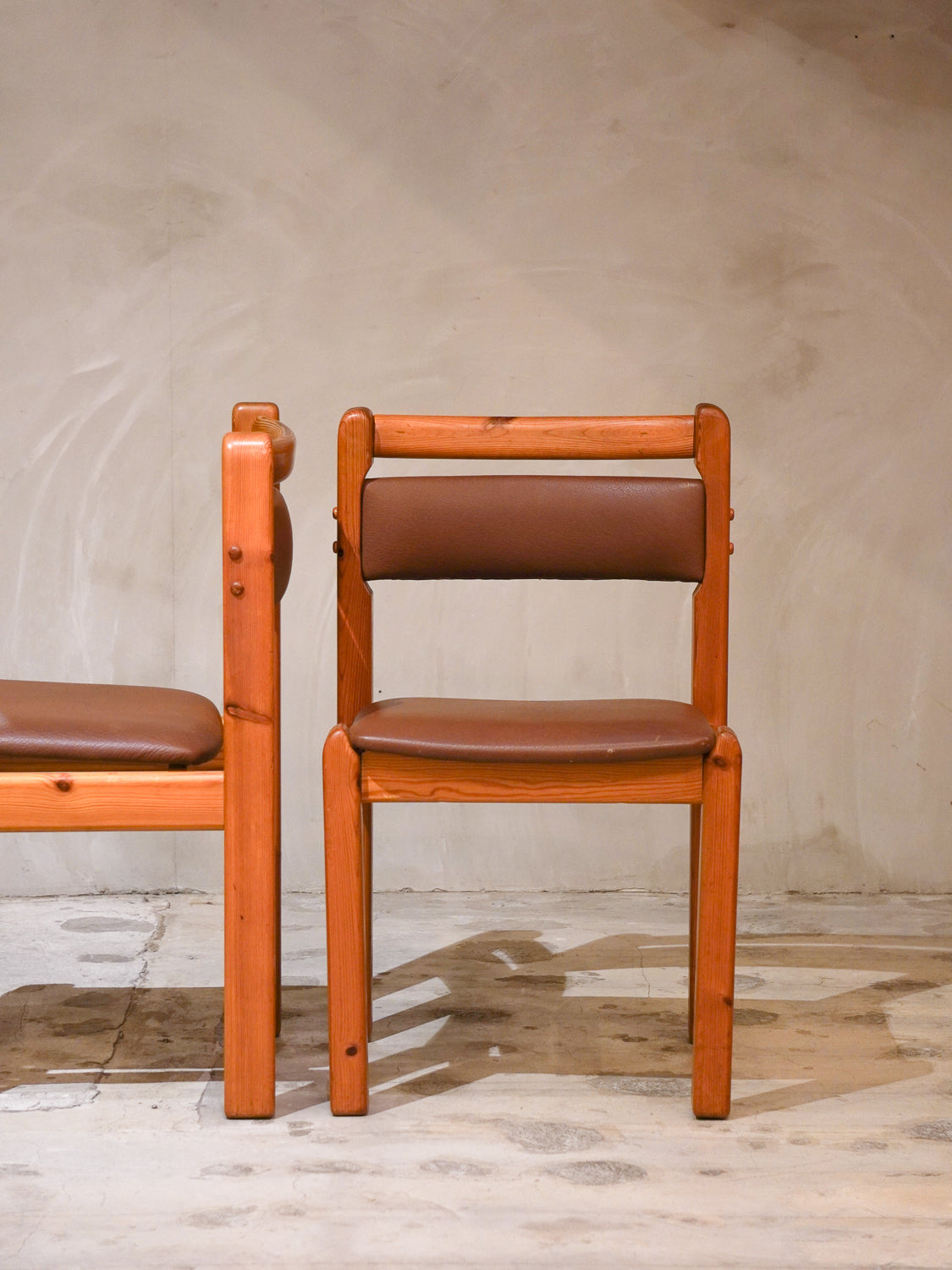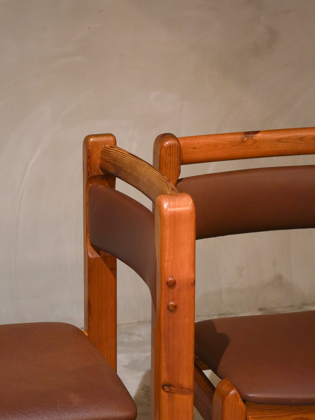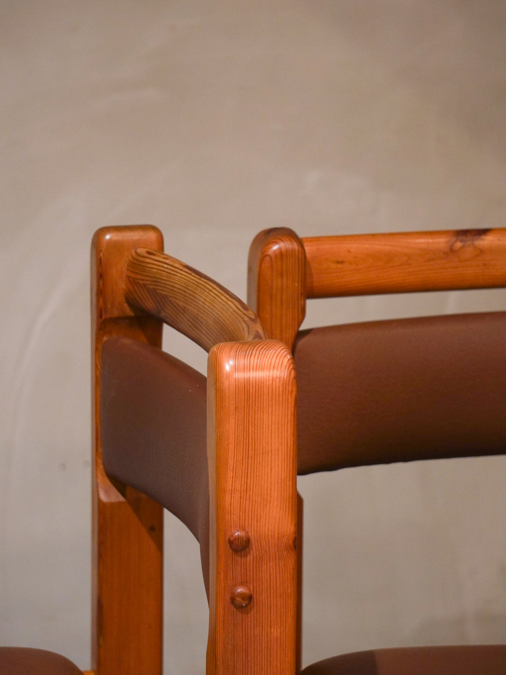 明亮的木质颜色与别致的条纹面料形成鲜明对比的餐椅。