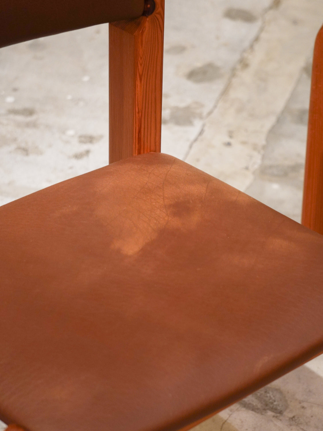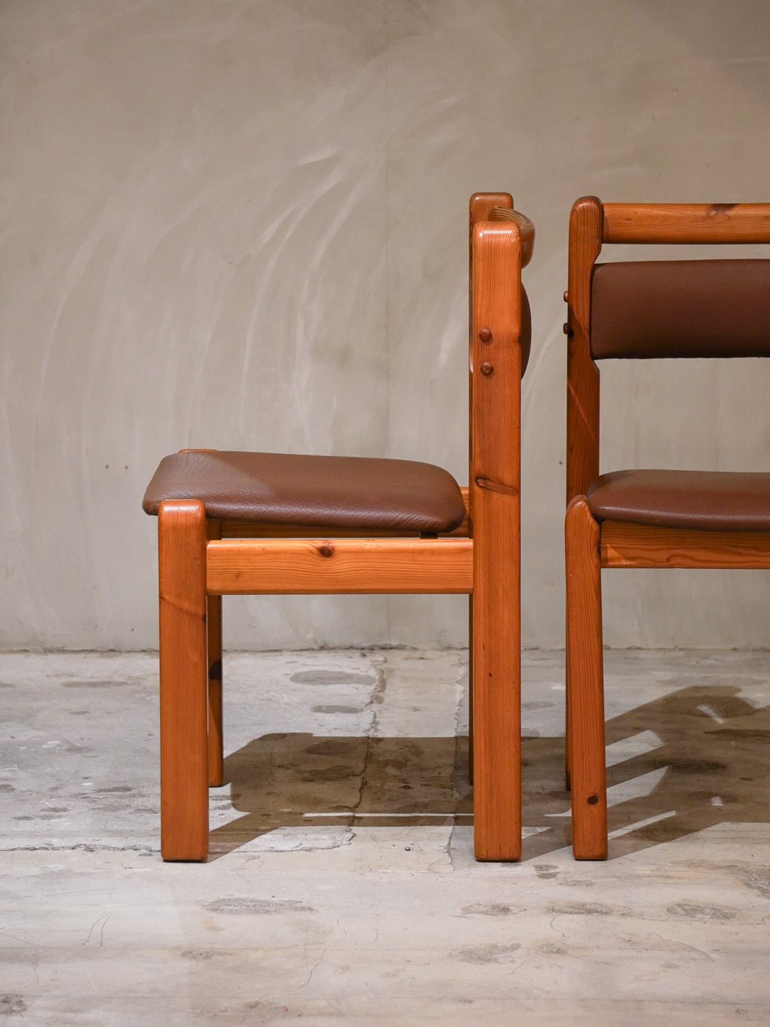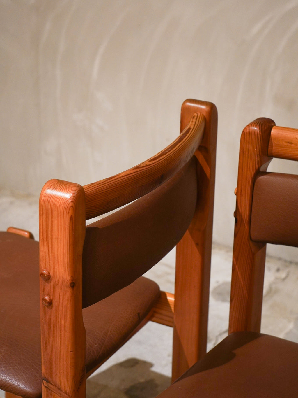 明亮的木质颜色与别致的条纹面料形成鲜明对比的餐椅。