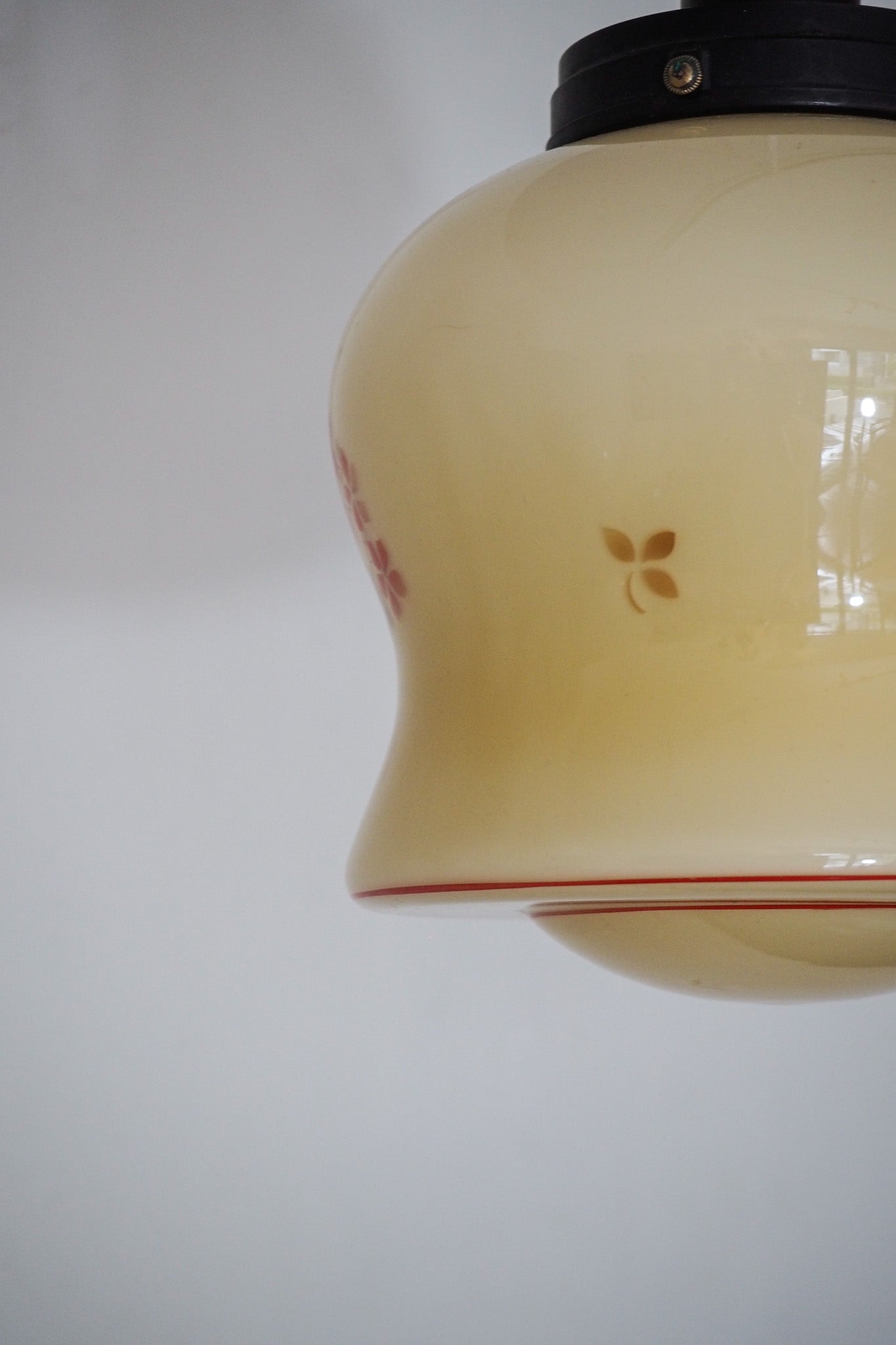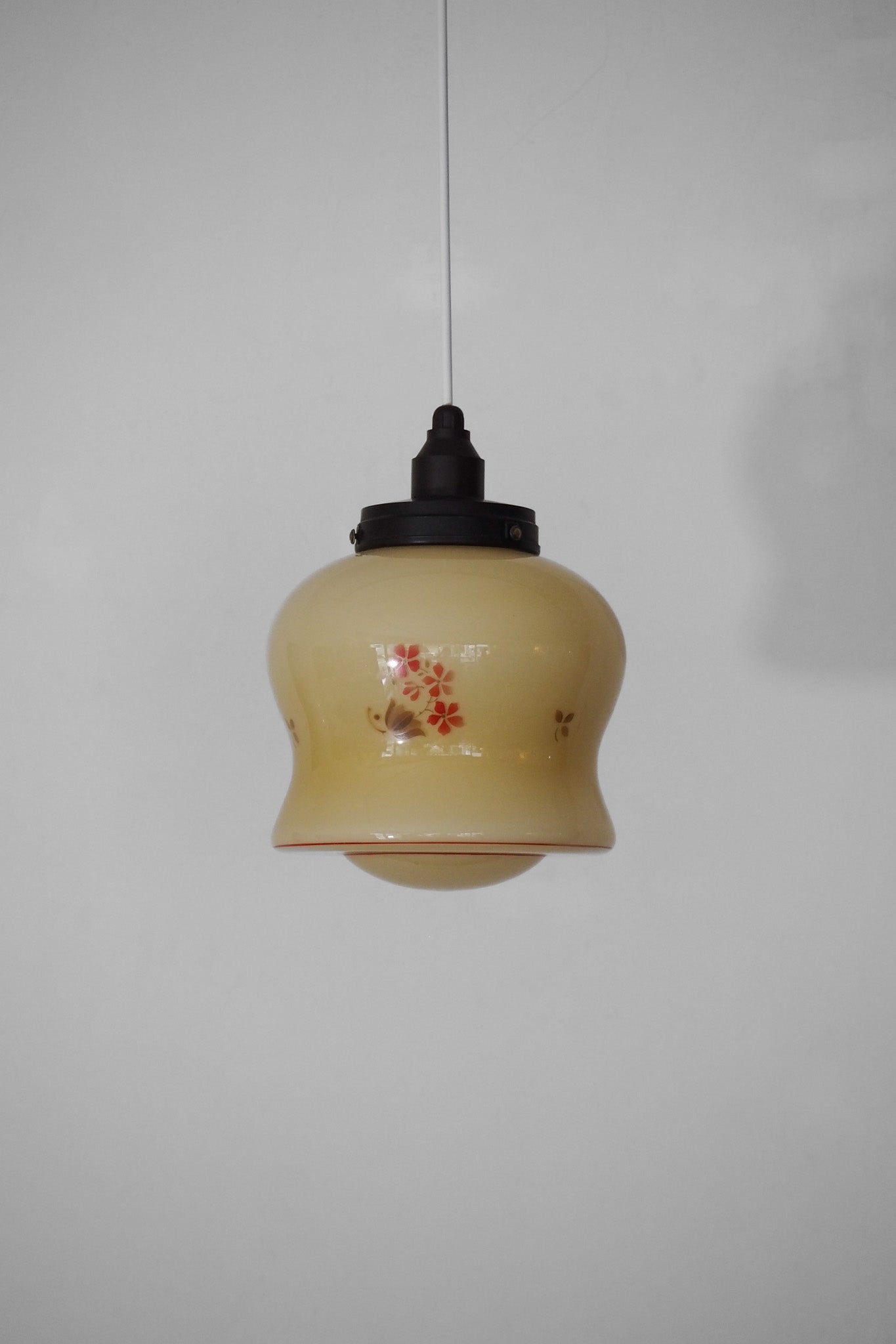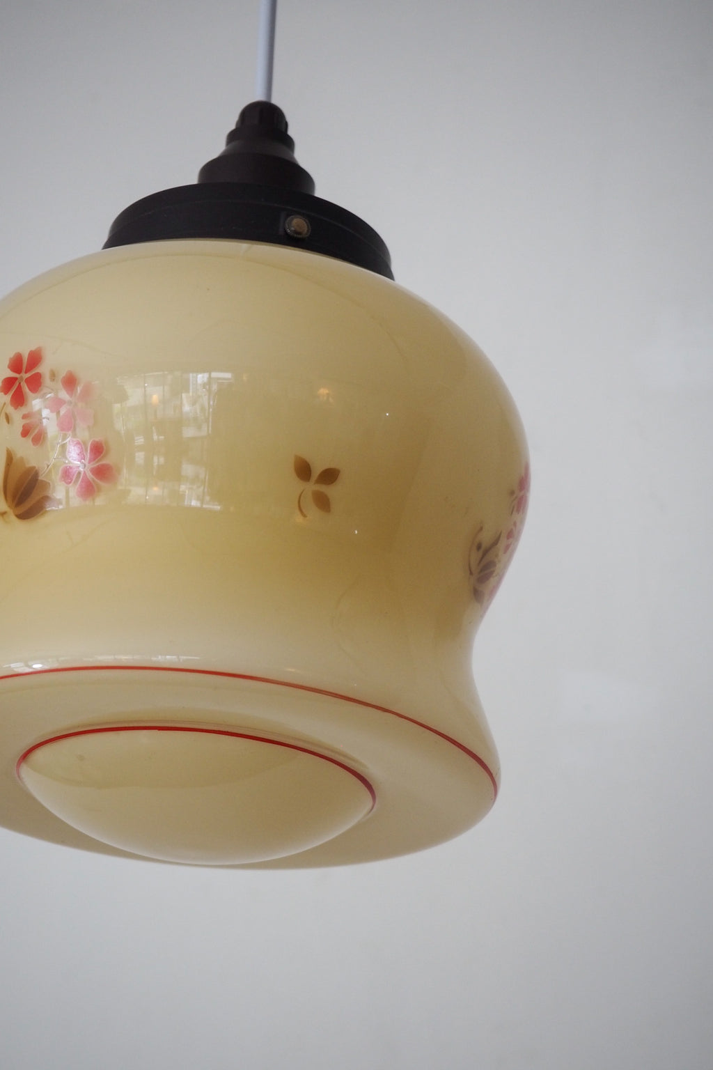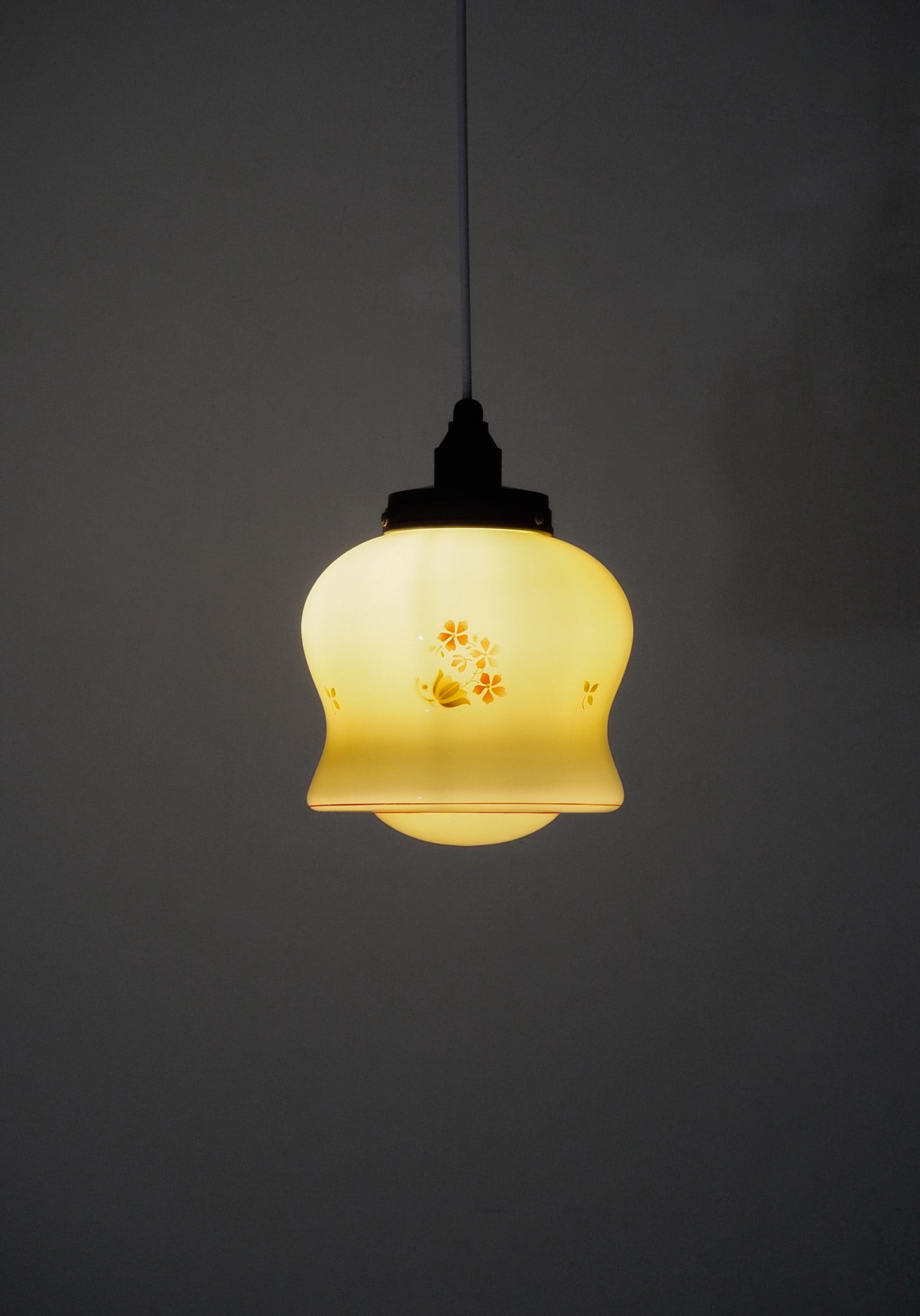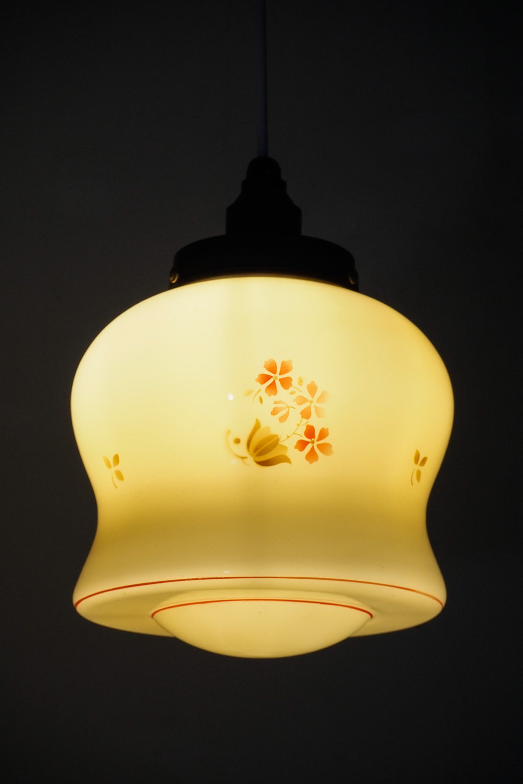 アイボリーがかったミルクガラスに、小花柄が愛らしく、温かみのある表情を見せてくれます。