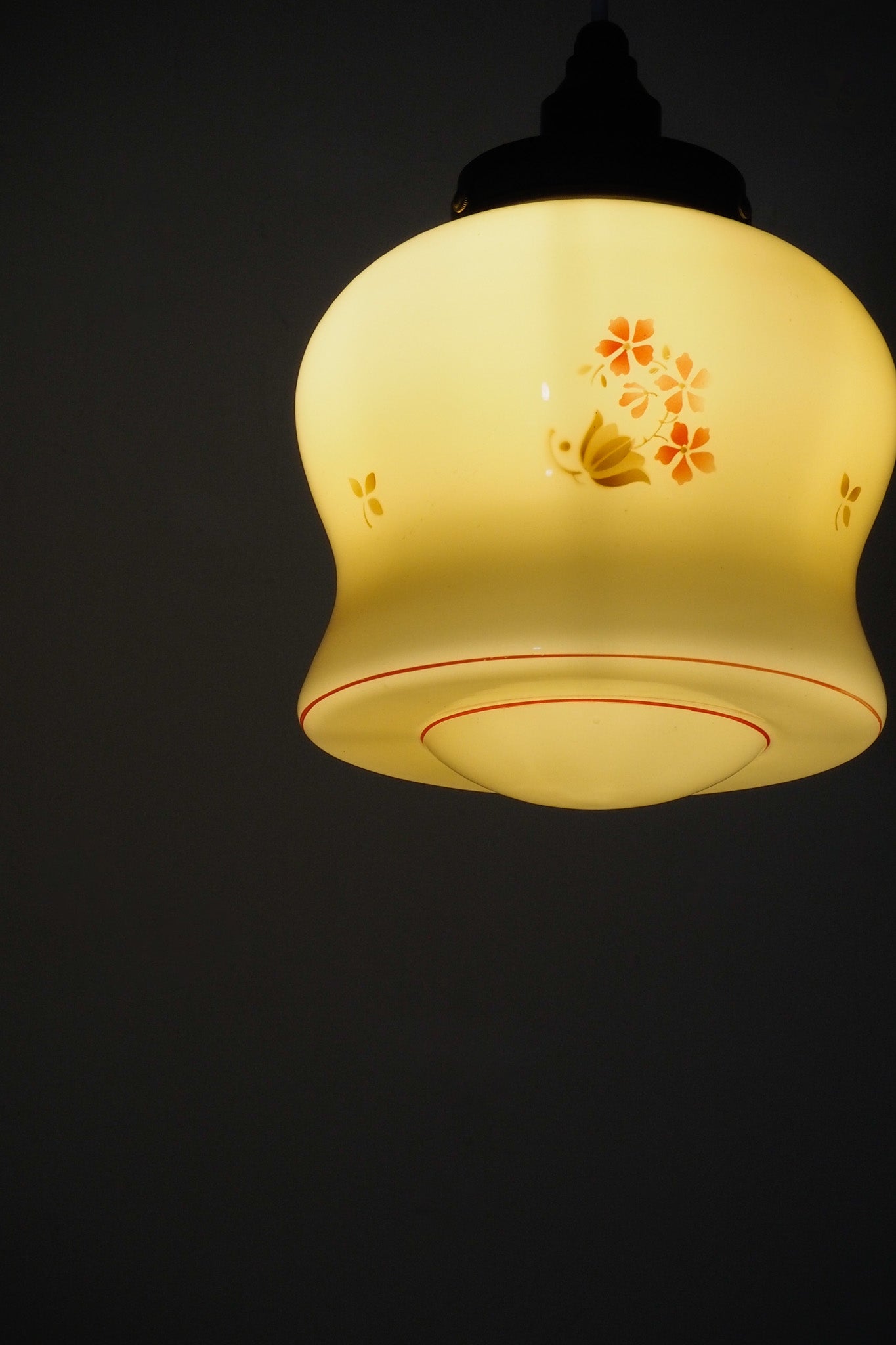 灯りを点けると、柔らかく優しい光がシェード全体を包み込み、空間にノスタルジックな雰囲気をもたらします。