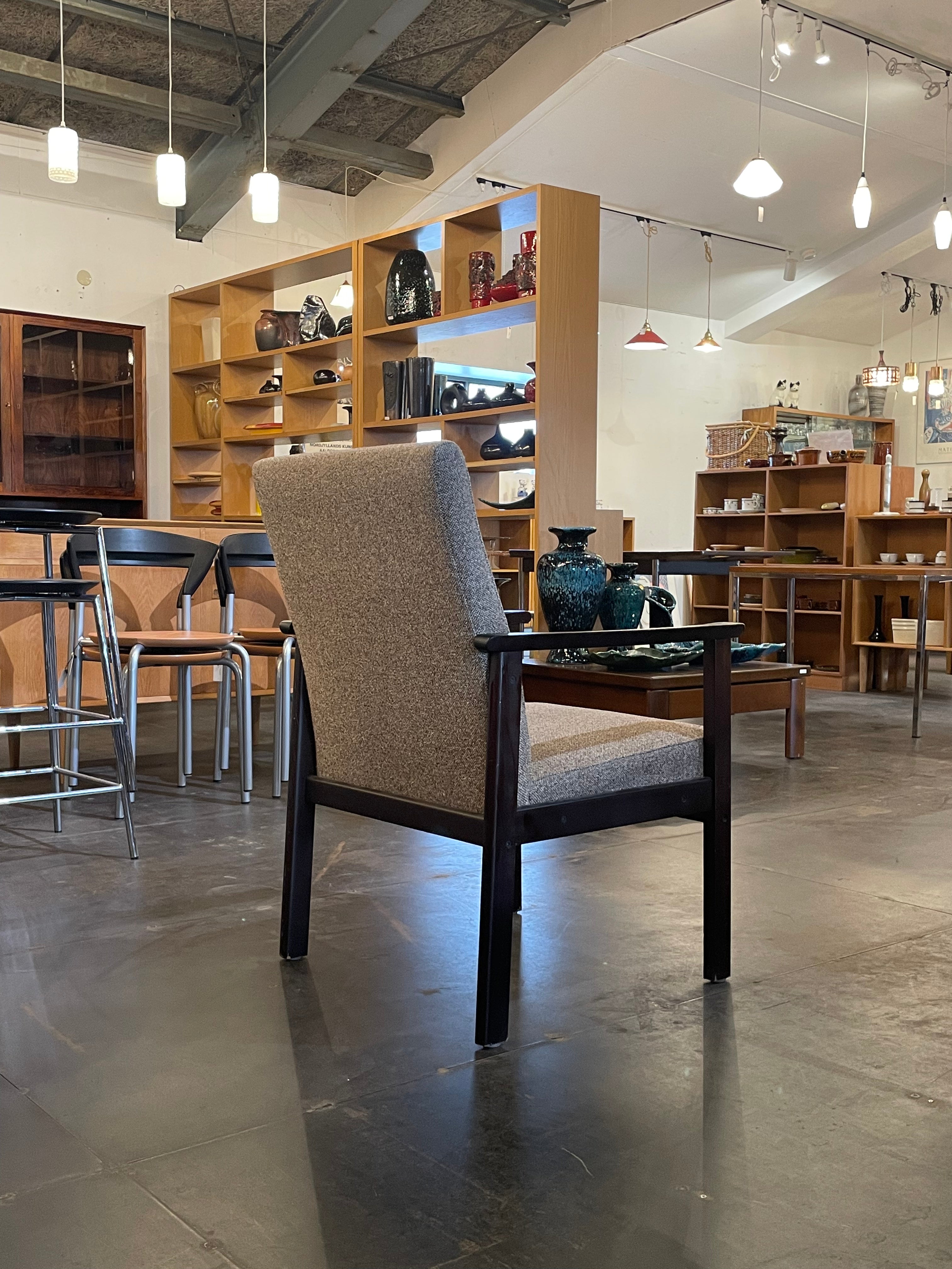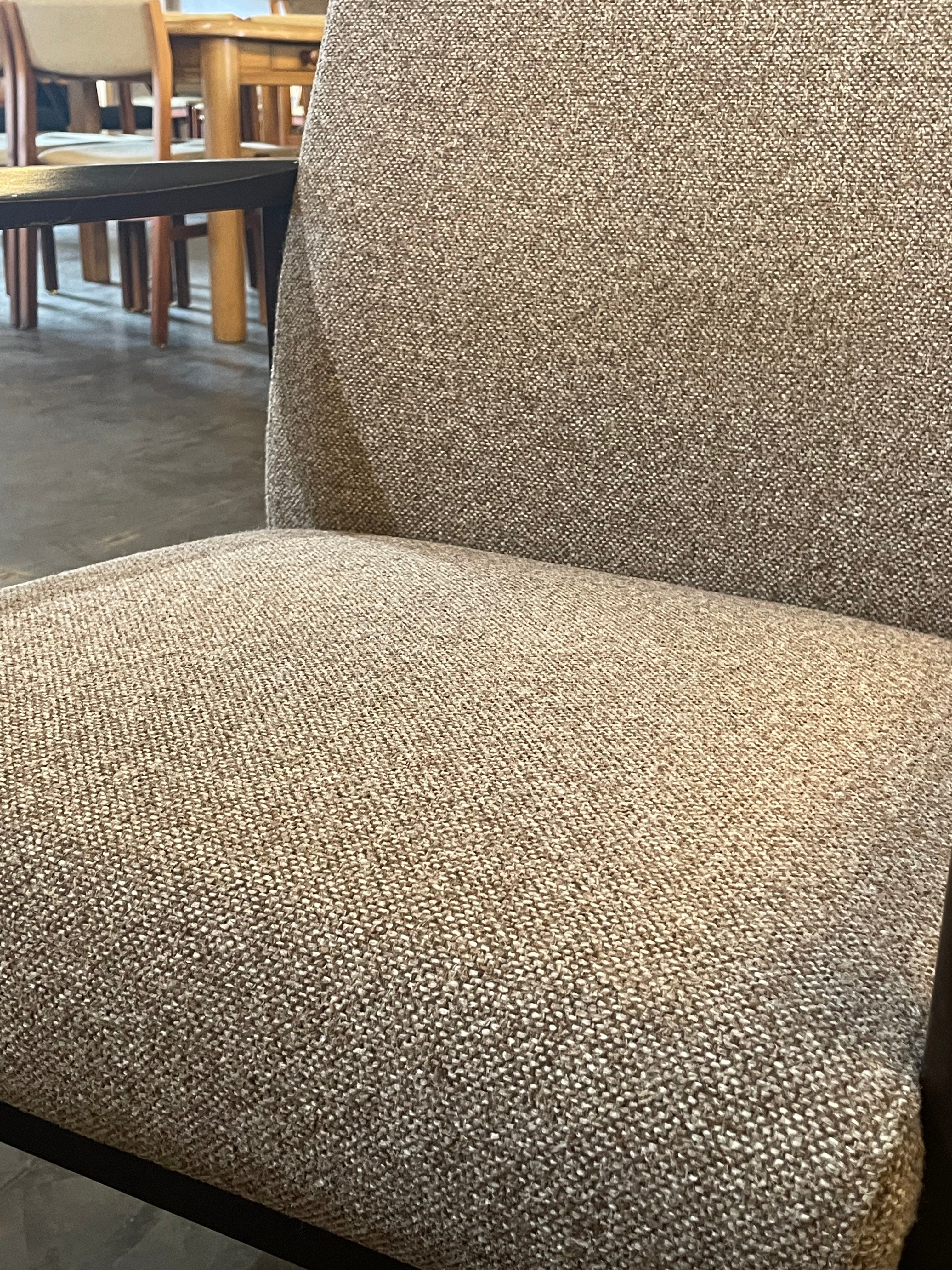 端正な直線美と機能性が調和したファブリックラウンジチェア