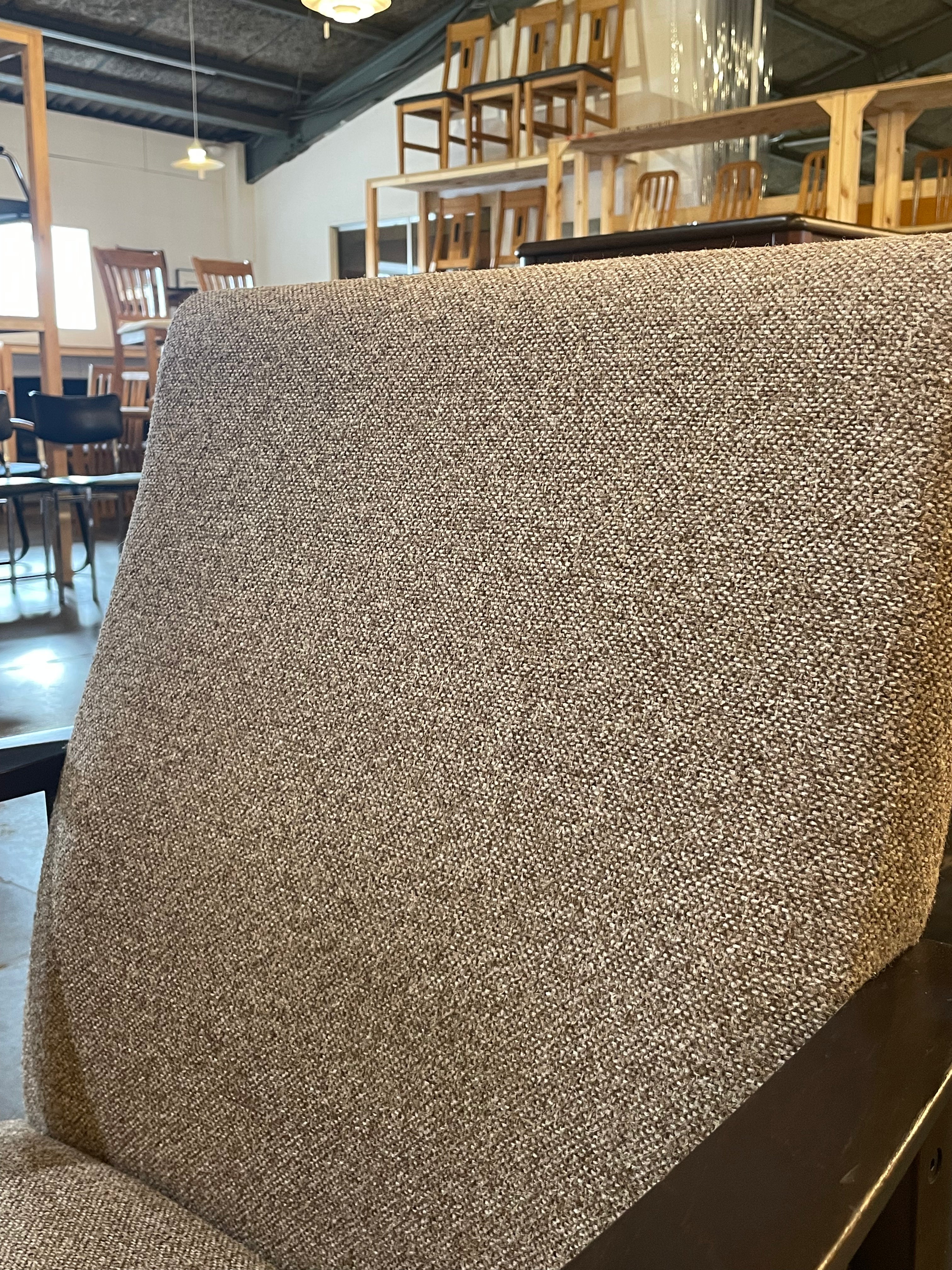 ファブリックは落ち着いたグレー系のテクスチャーが、引き締まったウッドカラーと見事なコントラストを描いています。