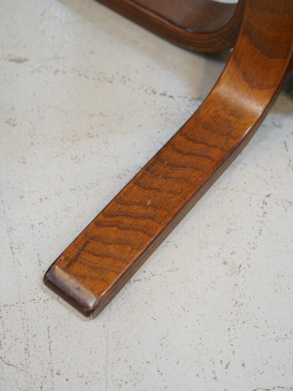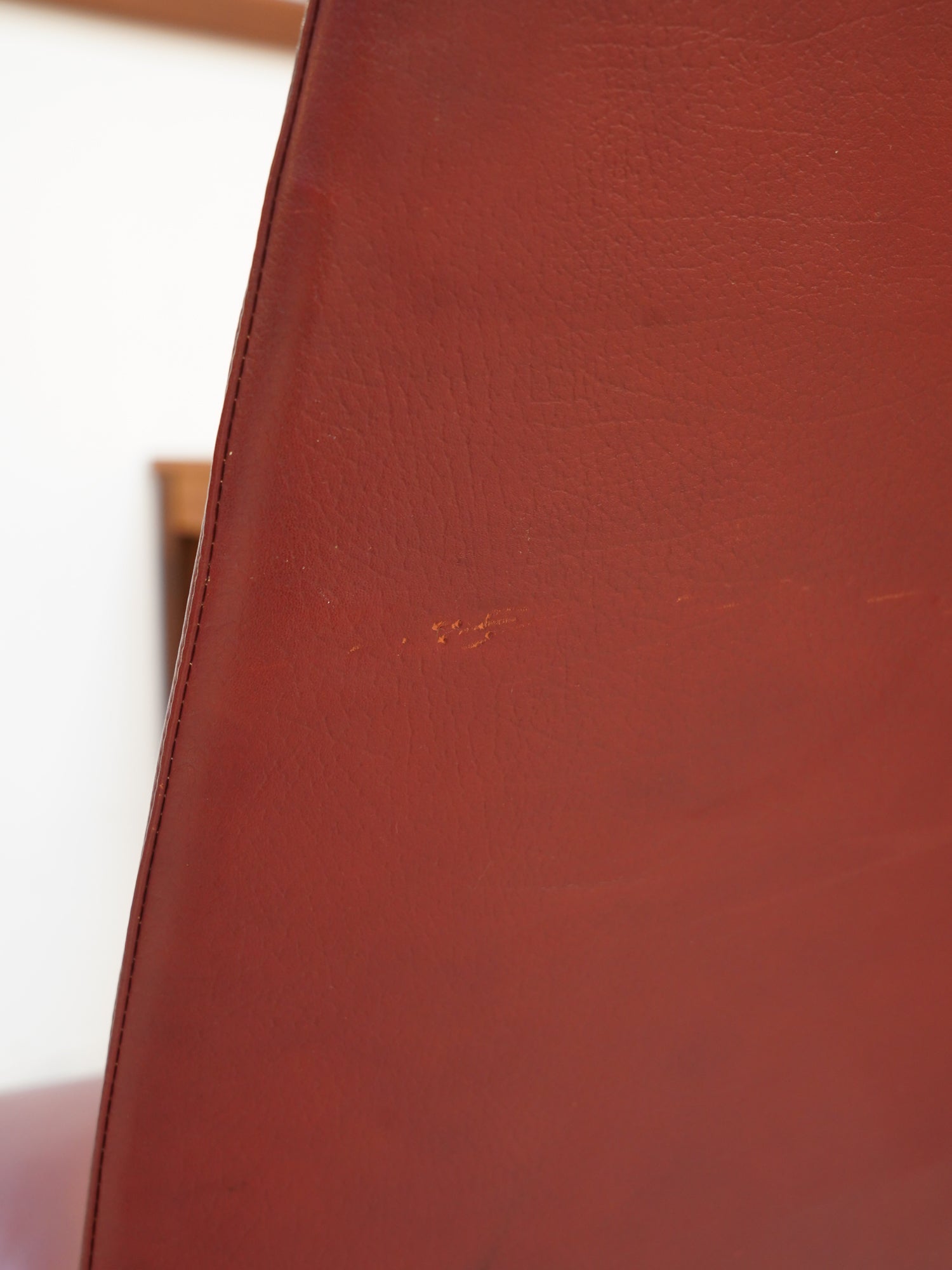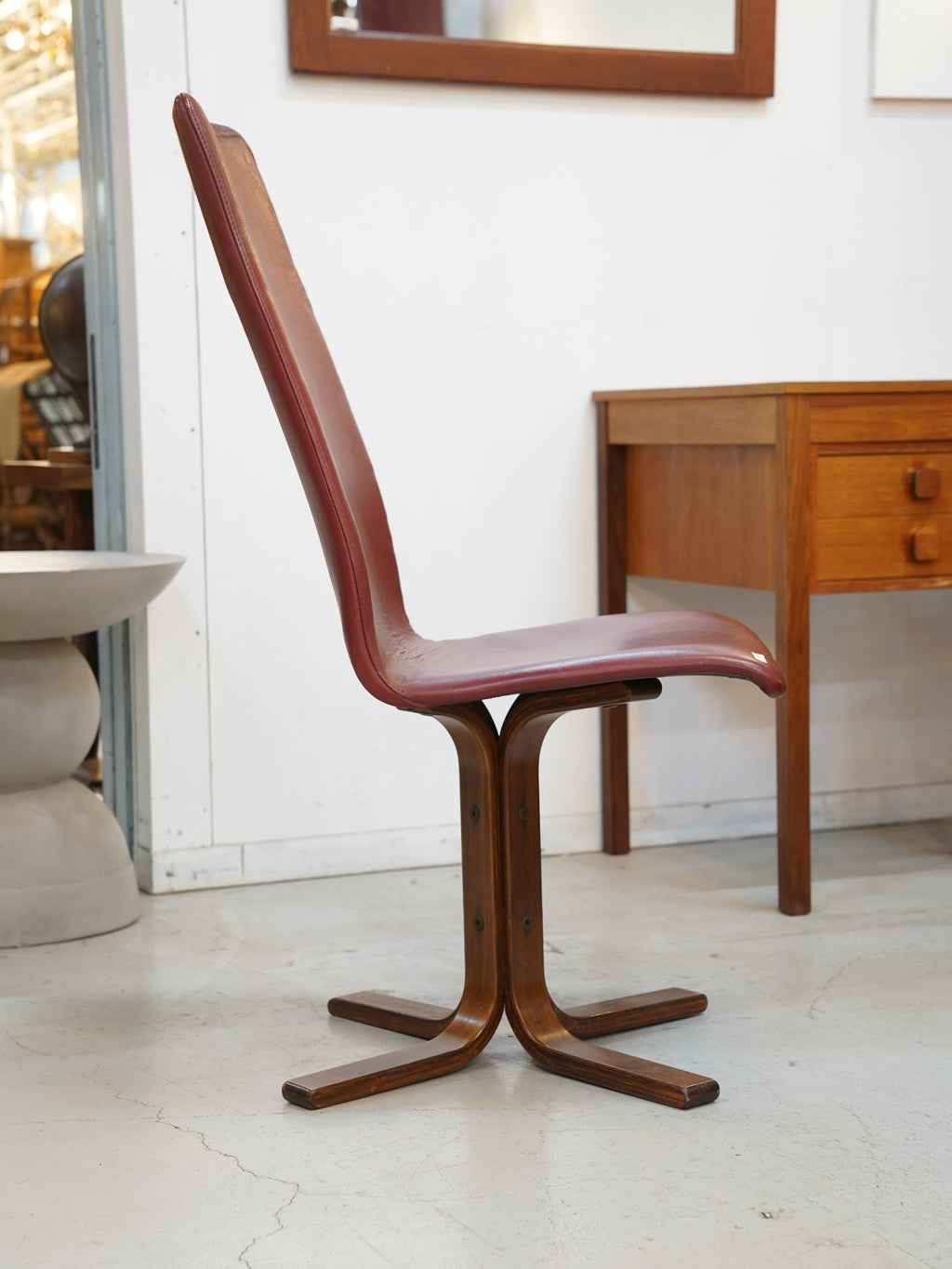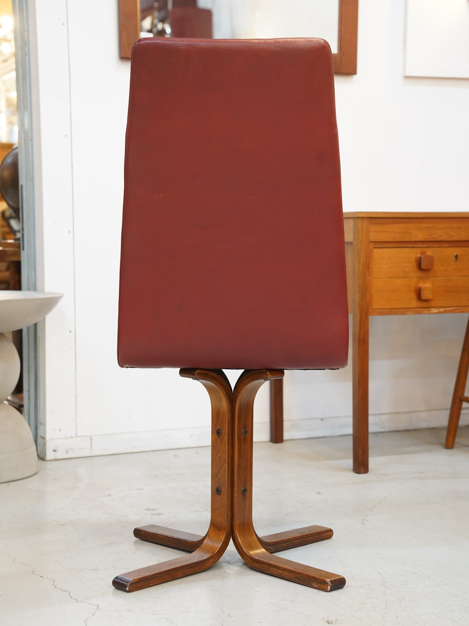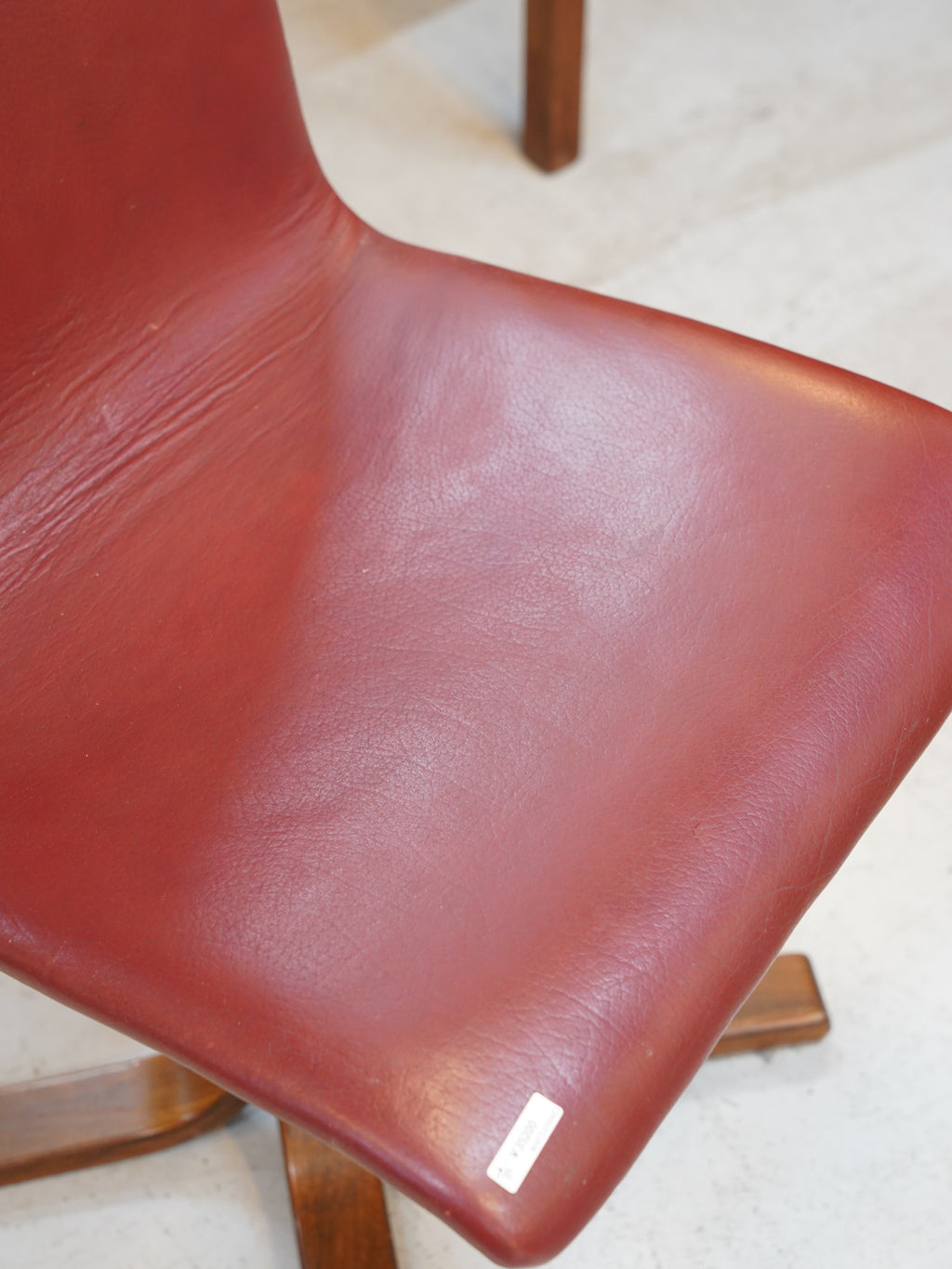 美しい曲線を描くプライウッドのベースに、深みのあるボルドーカラーのレザーを合わせた、洗練された佇まいのラウンジチェアです。