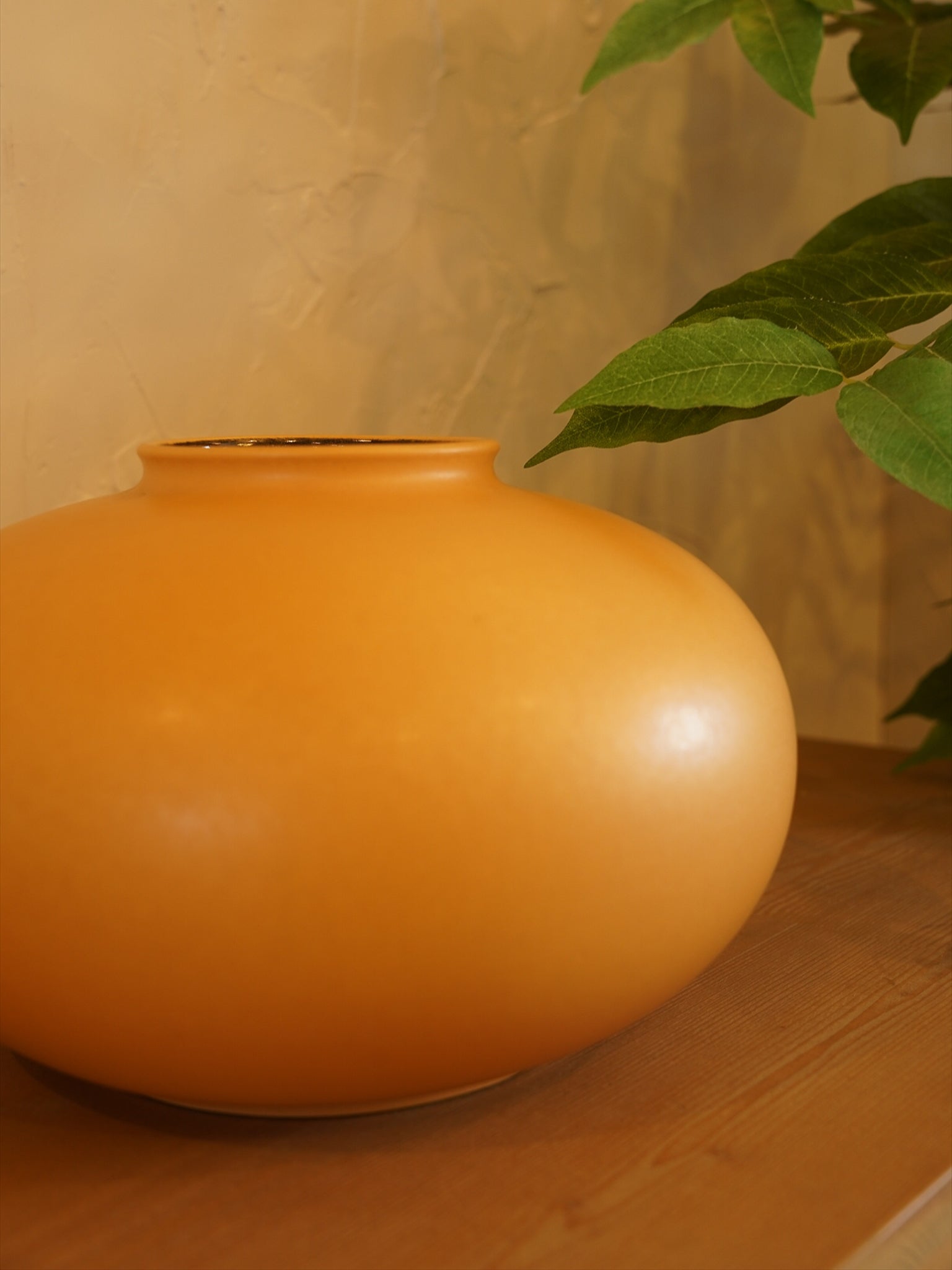 最大の特徴は、扁平で丸みを帯びた宇宙的な円盤型のフォルム。口が小さいため、そのままオブジェとして飾るだけでも空間にモダンな雰囲気を醸し出します。